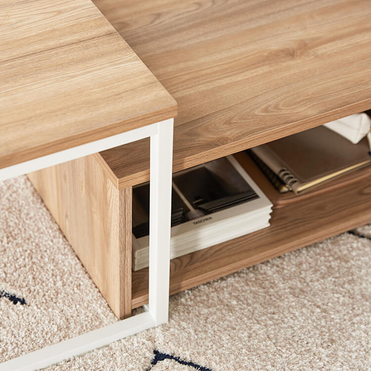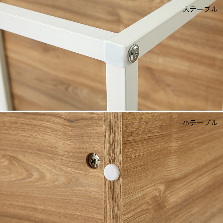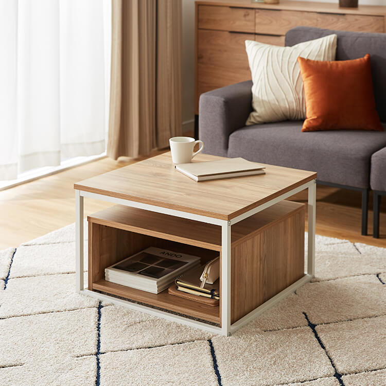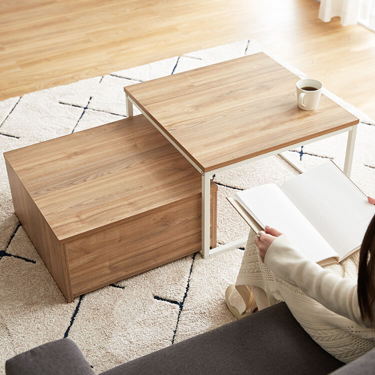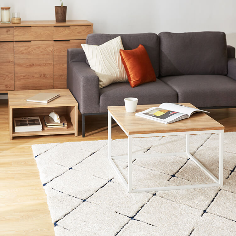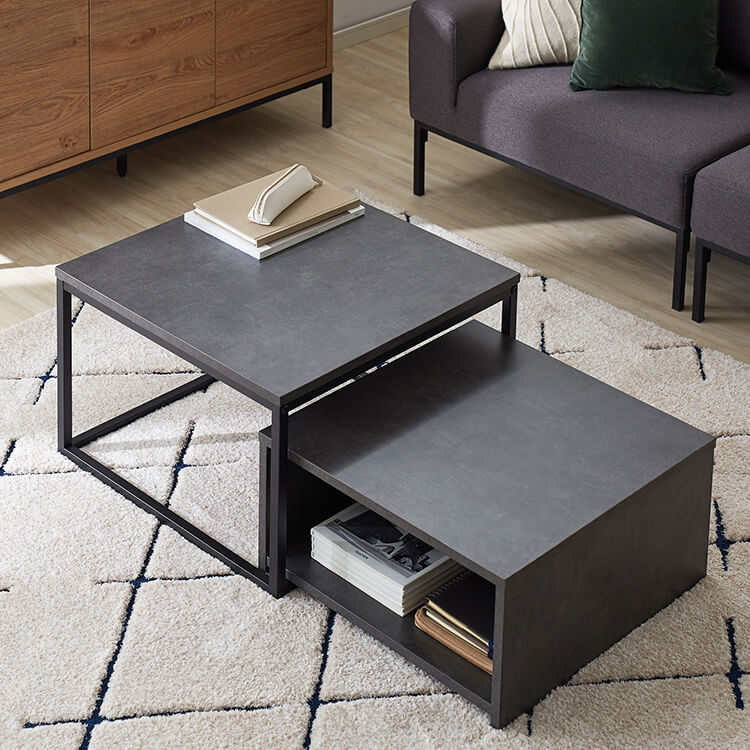 自由なスタイルが叶う機能性と、シンプルで美しいデザイン。両方を兼ね備えた収納付きのネストテーブルです。お部屋のアクセントになり、こなれた空間を演出します。あたたかみを感じる木目調のナチュラルと、スタイリッシュでモダンなダークグレー。お部屋に合わせて2カラーからお選びください。入れ子にすると、ワンルームや一人暮らしにピッタリな幅60cmのコンパクトサイズ。圧迫感を与えにくく省スペースに置けるので、リビング使いや寝室にもおすすめです。ネストテーブルとは、同じデザインのサイズが違うテーブルを「入れ子」のように組み合わせて収納できるテーブルのこと。用途に合わせてスペースを広くしたり、縮めたりと機能的で美しいデザインが魅力です。