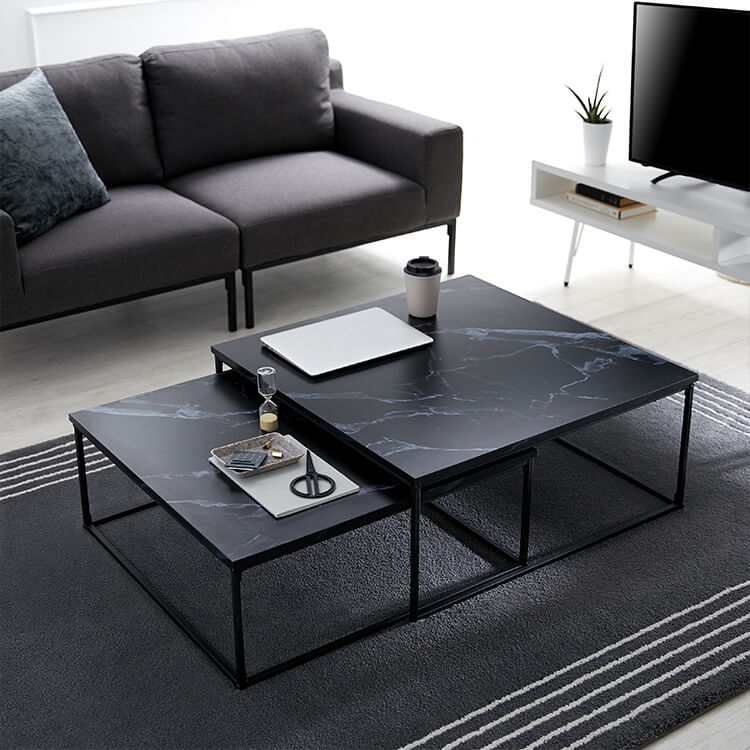 リビングテーブル ネストテーブル スチール 大理石柄