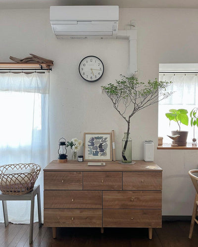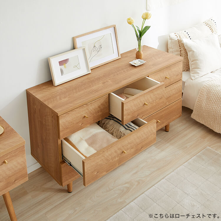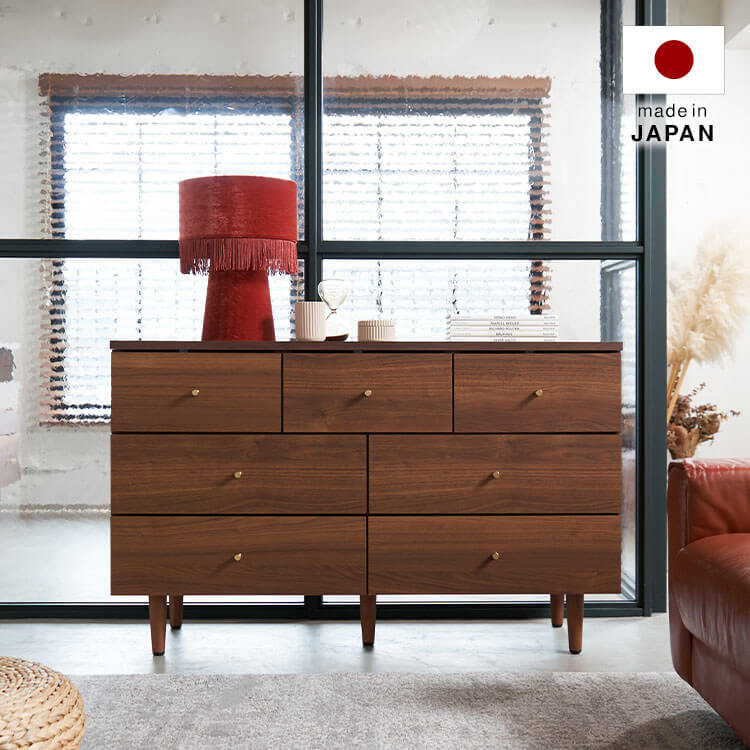 海外インテリアのような素敵なリビング空間を、あなたのおうちにも。置くだけで誰もがおしゃれになれる日本製チェストです。衣類はもちろん、小物やアクセサリーまでまるっと収納できる大容量の引き出しで、お部屋をすっきりと見せます。熟練の家具職人が一つ一つ丁寧に真心込めて作り上げた当商品。安価な輸入品とは違い、シンプルなデザインの中に精巧な美しさが光ります。お部屋を広く見せてくれるローチェストタイプです。
