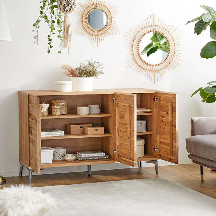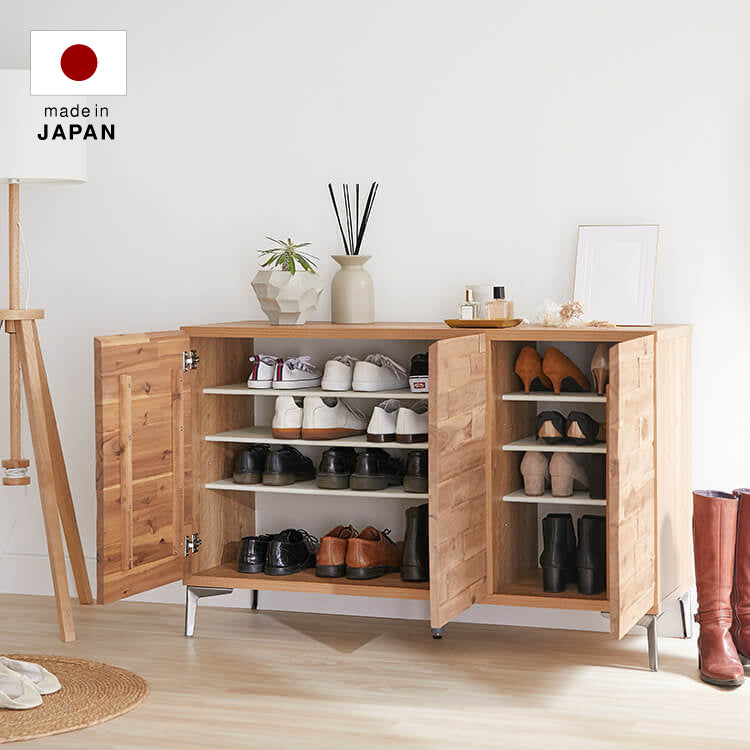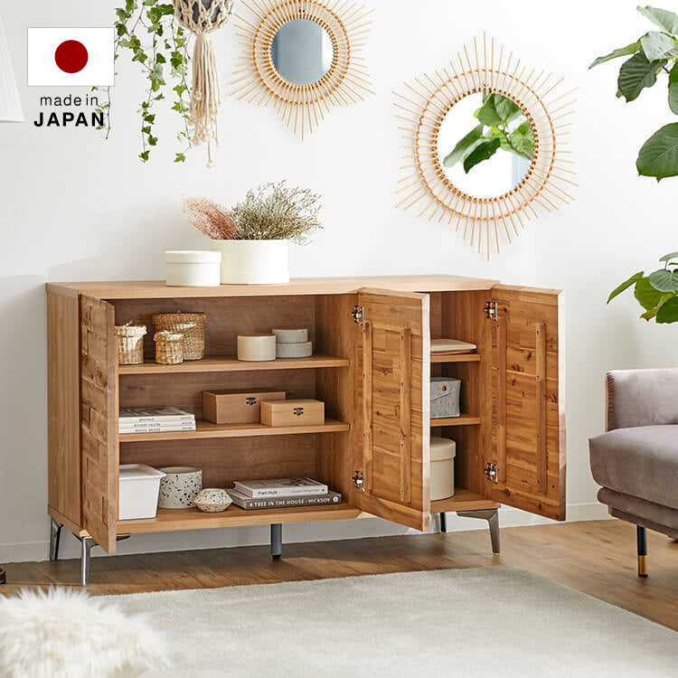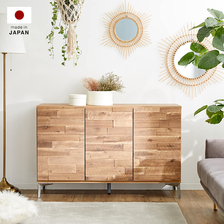 サイドボード チェスト シューズラック キャビネット リビングボード 日本製 収納 脚付 無垢材 スチール