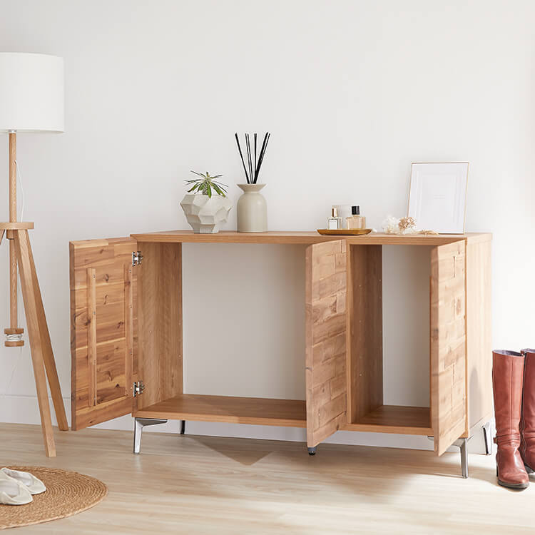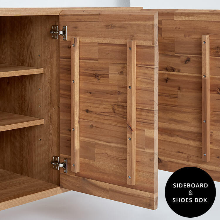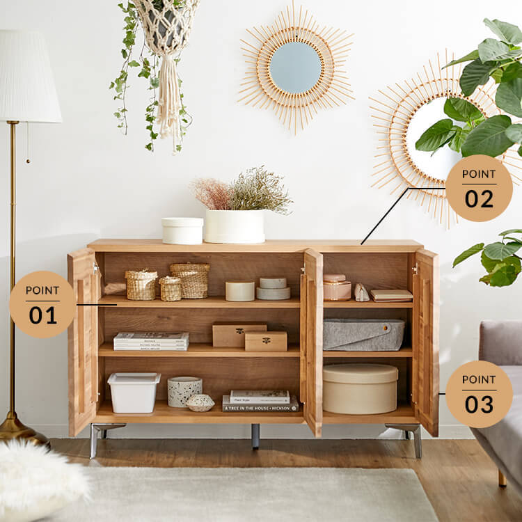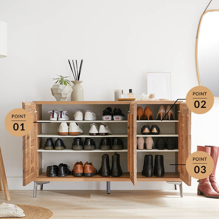シンプルだけど人とは違う、随所にこだわりが見えるモノを。存在感のある無垢材に、人気の高いインダストリアルデザインのスチール脚を組み合わせた国産シリーズです。お好みに合わせて3タイプからお選びいただけます。サイドボード、チェスト、シューズボックスの3タイプお部屋に合わせやすく、人とは違うおしゃれなモノを。定番の木製に異素材の脚を組み合わせることで、こなれた雰囲気に仕上げました。置くだけでセンスのいい空間が完成します。熟練の家具職人が一つ一つ丁寧に真心こめて作り上げました。安価な輸入品とは違い、日本製ならではの匠のプライドと情熱を詰め込んだ完成度の高い一品です。