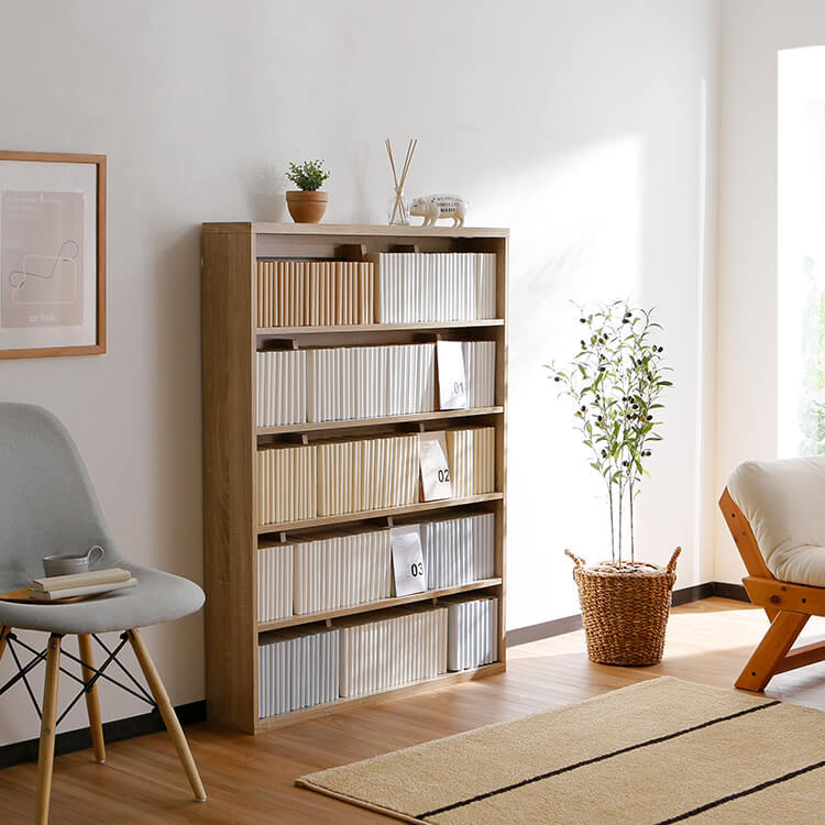 「文庫版」「新書版」「B6版」「完全版」全てOK!まるで図書室のように見やすくキレイに陳列できるマンガに特化したおしゃれなコミック収納が登場です。当社のマンガ好きが集まって企画した、コミック収納の理想型です。コミック専用収納ラック目指したのは図書室や本屋さんの棚。文庫版~完全版までがピッタリ入るよう奥行と高さを設計しました。 ムダなスペースを使わず美しく陳列。出し入れも簡単で使いやすいポイントです。
