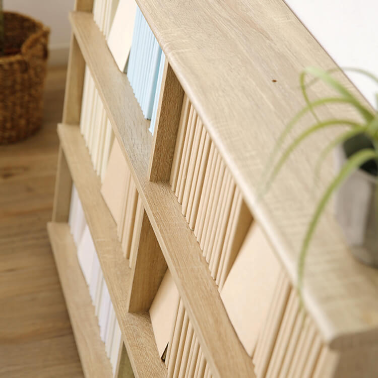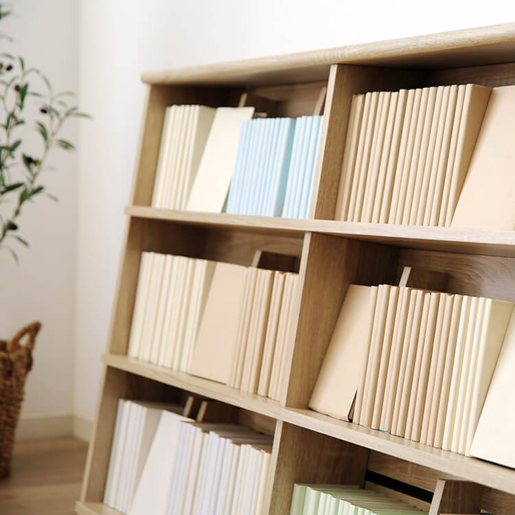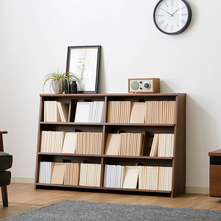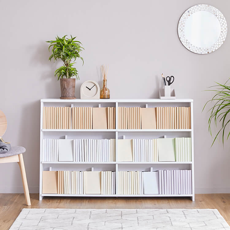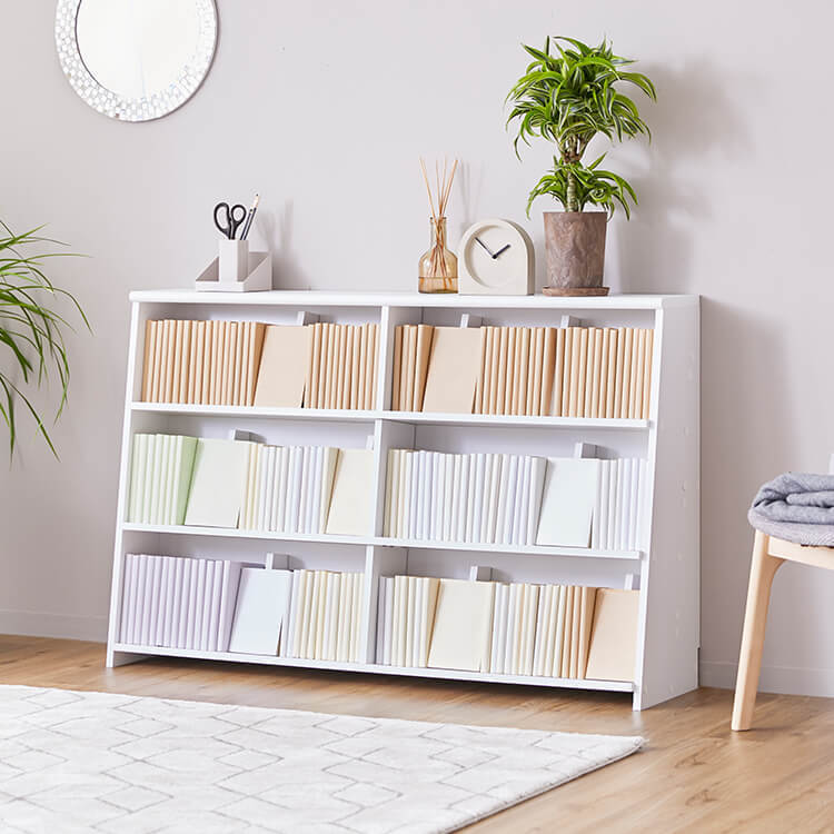 「文庫版」「新書版」「B6版」「完全版」全てOK。図書室のようにマンガを陳列できる、おしゃれなコミック収納のワイドタイプです。当社のマンガ好きが集まって企画したコミック収納の理想型です。2列収納をやめて、きれいで取り出しやすく、さらに省スペース設計に。下段は上からの目線でも取り出しやすく、角度を付けた構造。土台が広がることで安定感もアップします。マンガ収納時にこんなことはありませんか?企画時に声の多かったマンガ収納のお悩み。当商品はこれらの問題を解消し、気持ちよくマンガを収納できる仕掛けがたくさん。文庫版~完全版までがピッタリ入るよう奥行と高さを設計しました。ムダなスペースを使わず美しく陳列。簡単出し入れの使いやすさがポイントです。