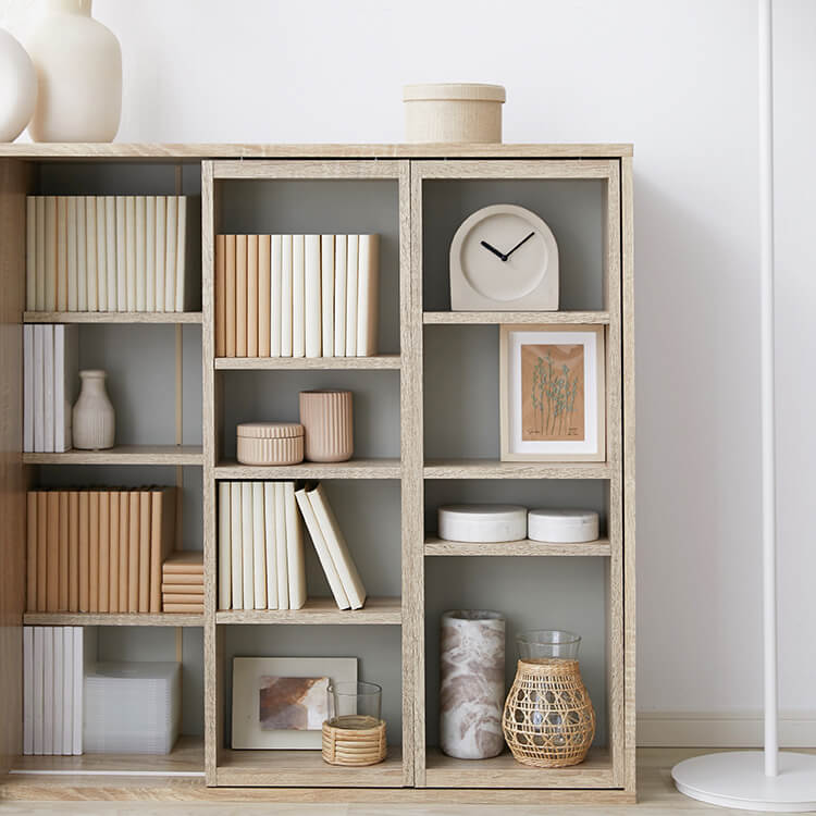 本棚 大容量 収納棚 スライド オープンラック 可動棚 ディスプレイ ブックシェルフ 木目調 リバーシブル
