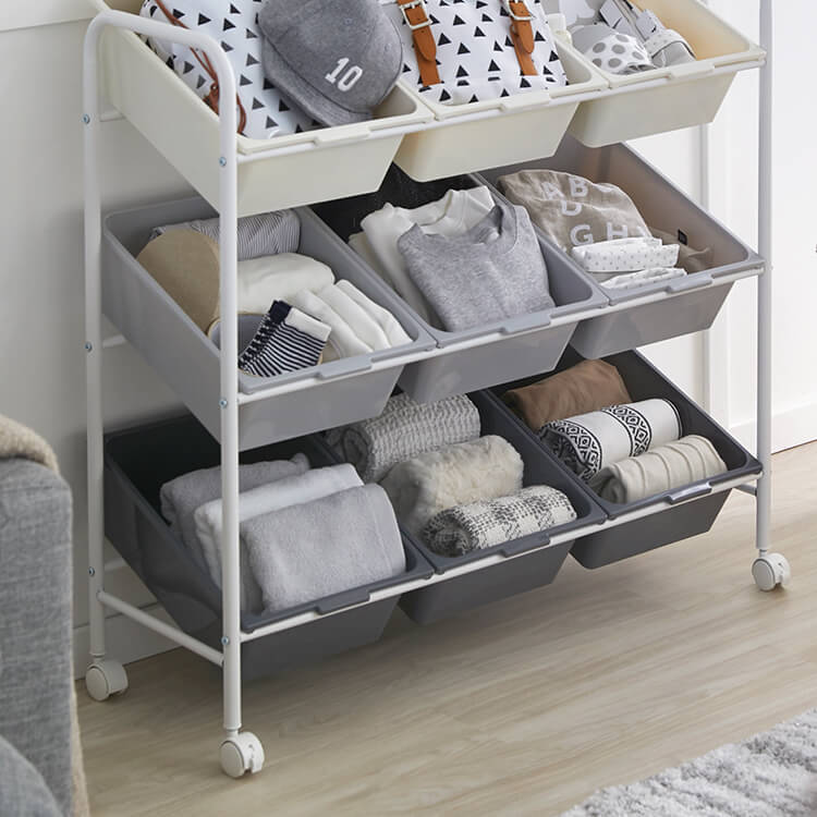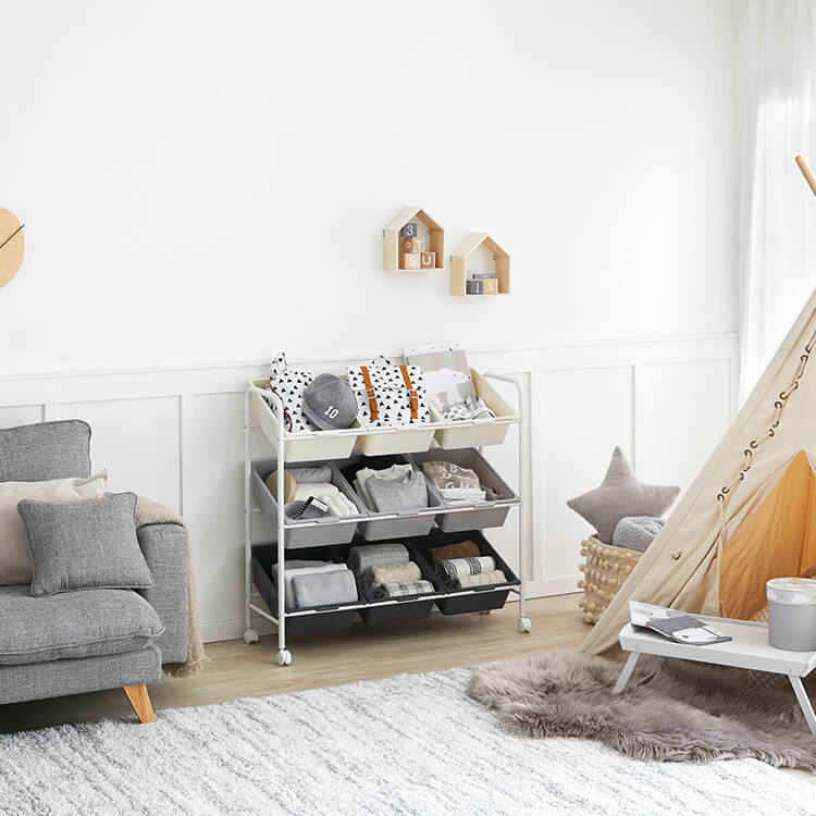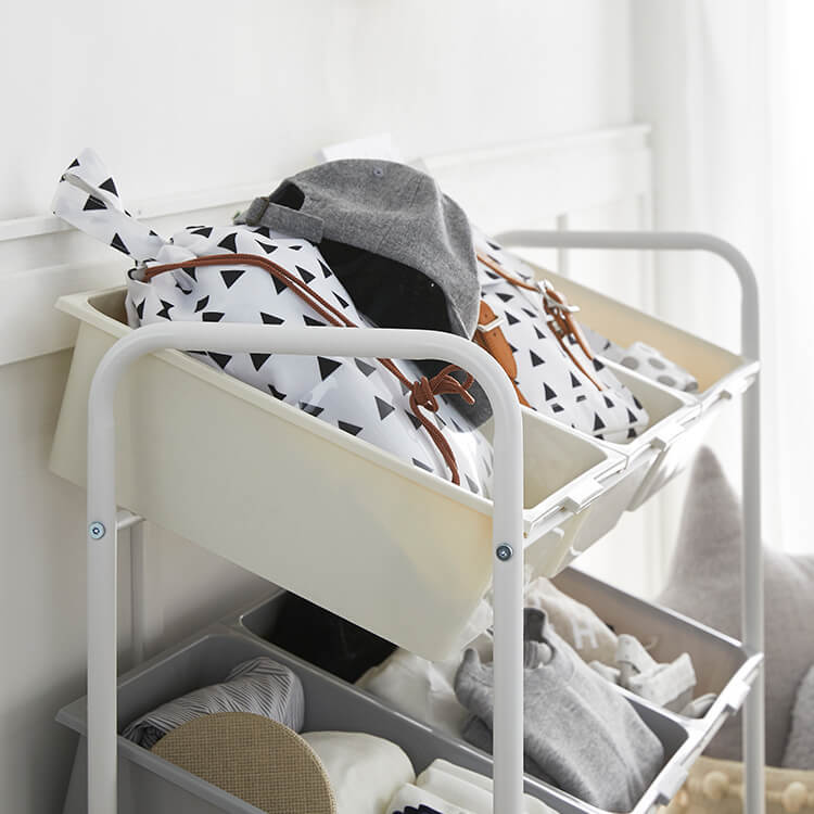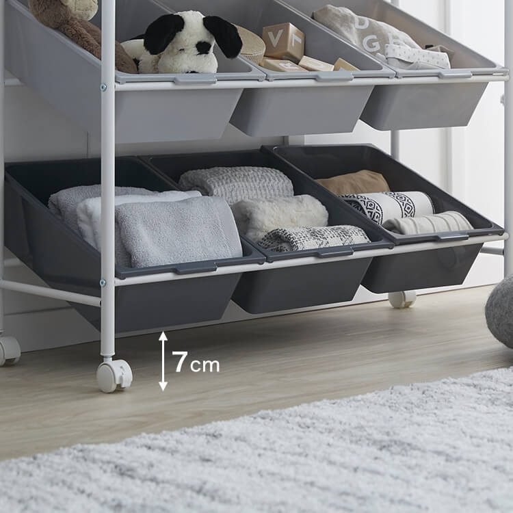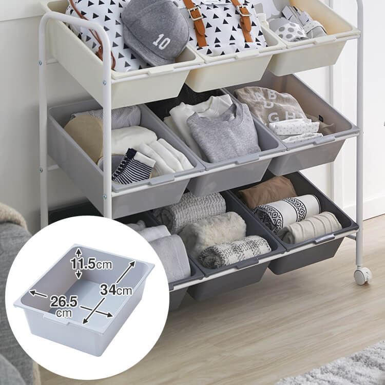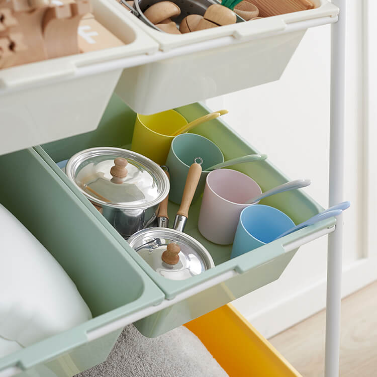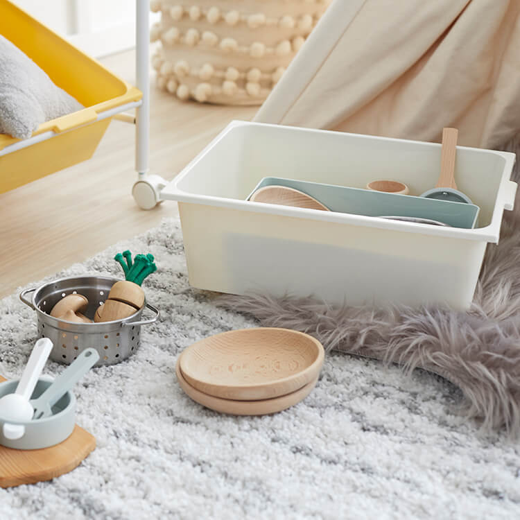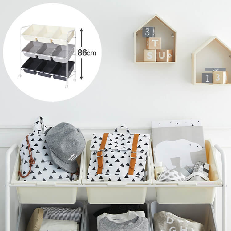 「自分でやりたい!」成長とともに少しずつ芽生えてくる自発心を応援するため、子どもの視線になって「どこに何があるか、わかりやすい」キッズ収納をつくりました。子どもは、中が見えない収納だと、何が入っているのかわからず全部ひっくり返してしまいがち…。だから「見せる収納」で見やすい環境をつくってあげる事で子どもの「わかる!」をサポートします。わかる様になると、できるコトがだんだん増えワクワクしてくる子どもたち。楽しくて自分から「お片付け」や「お着替え」をしたくなるそんな姿がみられるかもしれません。シンプルなシルエットと、お部屋になじみやすいカラーでデザインしました。だから、見せる収納でもスッキリとおしゃれに片付いたお部屋に見えます。