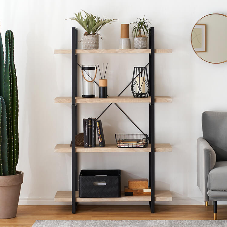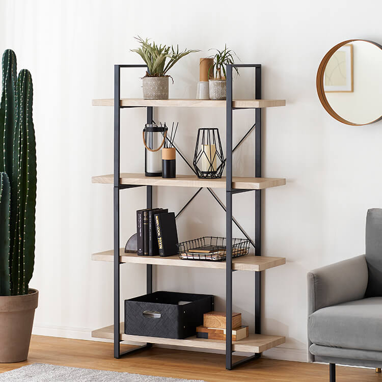 オープンシェルフ 4段 スチールラック ディスプレイシェルフ 見せる収納 シェルフ ラック 木製