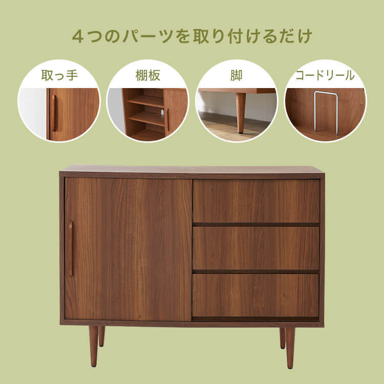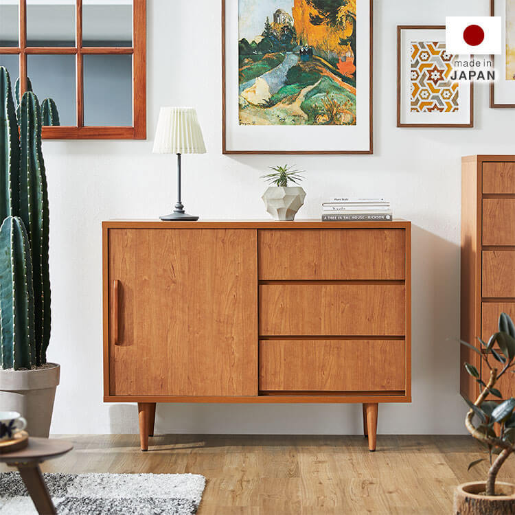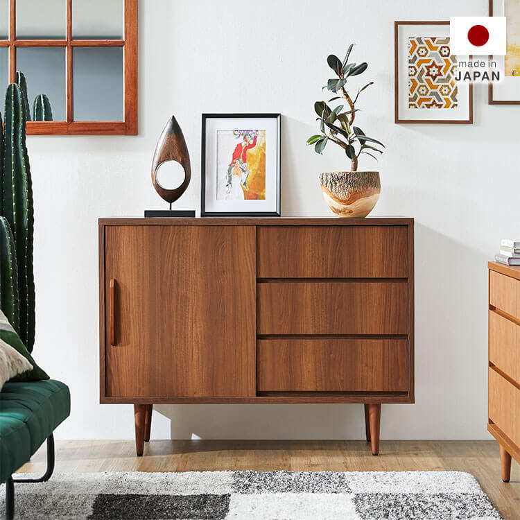 サイドボード 日本製 収納 キャビネット 北欧テイスト リビング 引き出し 可動棚 木目調 半完成品
