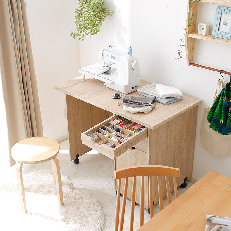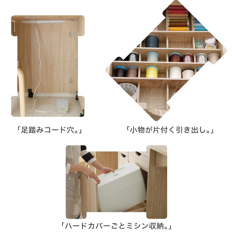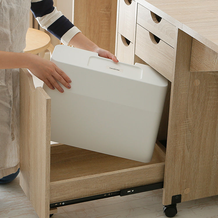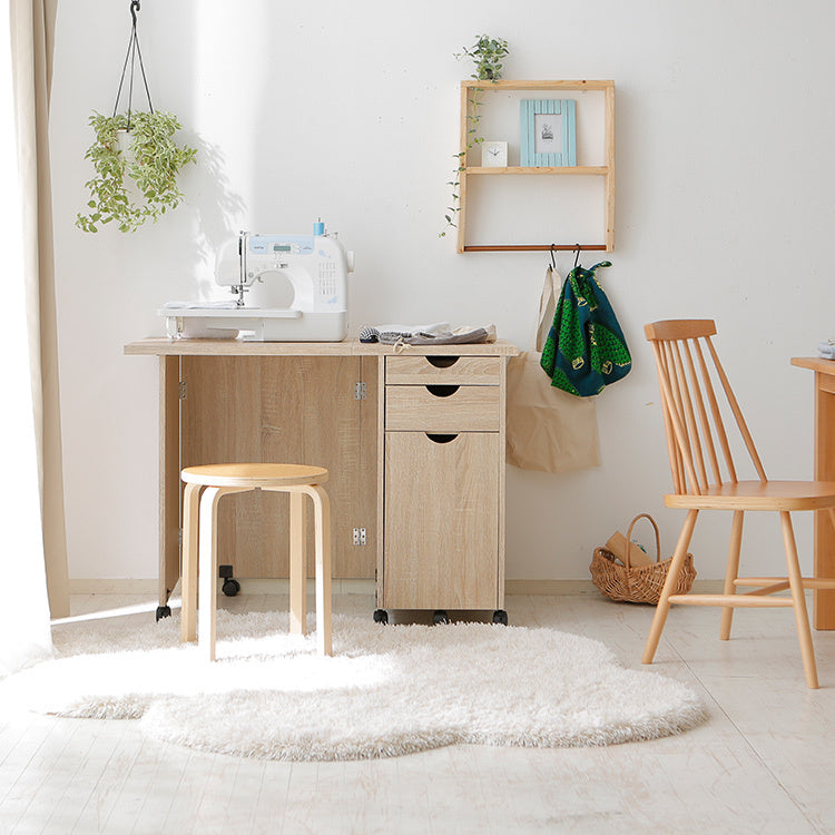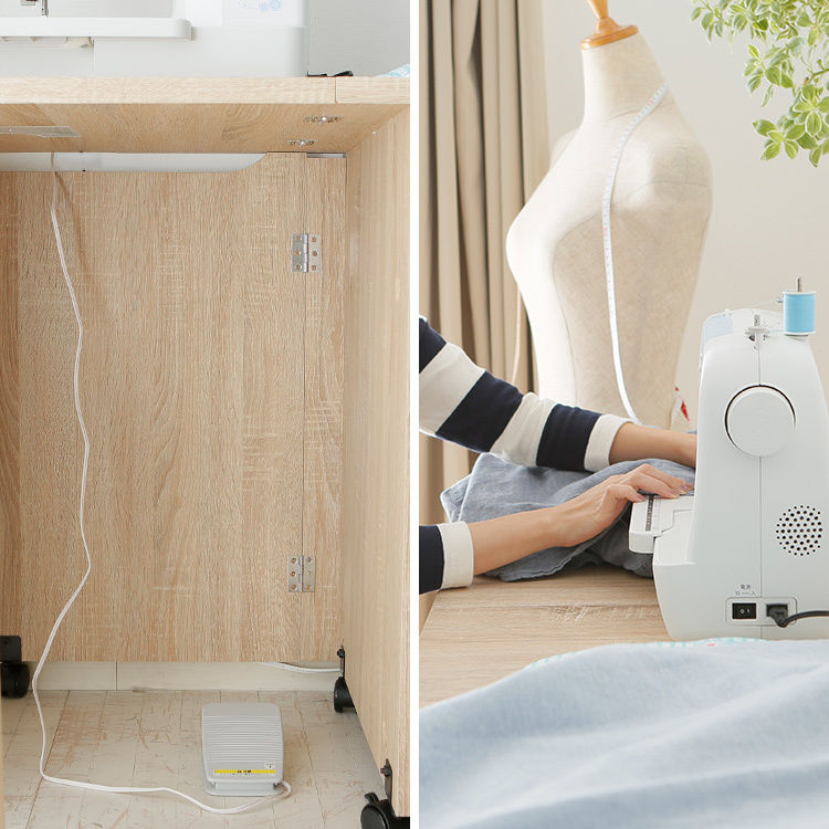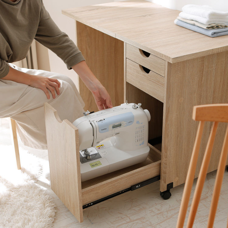 場所を取ってしまうミシンや、裁縫セット。作業する場所も欲しいけど作業台を置くスペースが無い…そんな悩みを解決するミシン収納ができました。畳んだら、幅はたったのティッシュ2箱分サイズ。 このサイズが、ミシンワークを ステキに変える近道でした。リビングや、お部屋のちょっとしたスペースが、特別なあなただけのアトリエ空間に。お部屋の隅にチョンと置かれたミシン台。折り畳むとスリムサイズなのに開けばたちまち、ここが私の特別な場所になる。