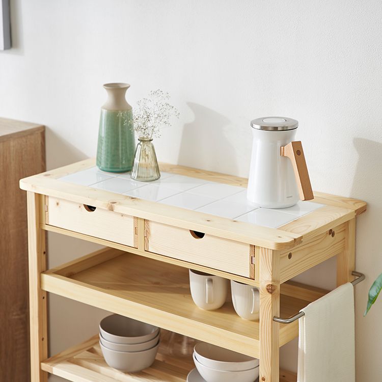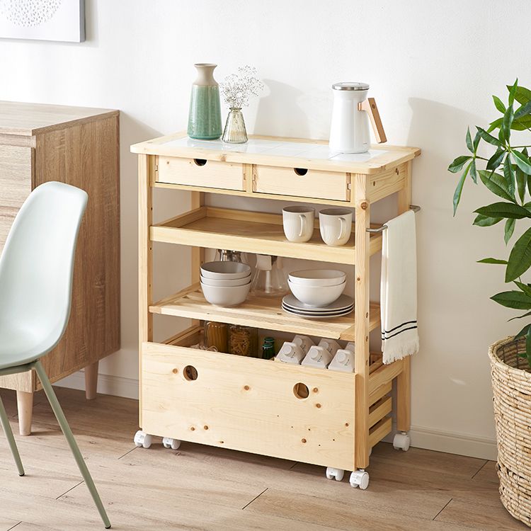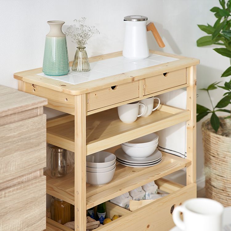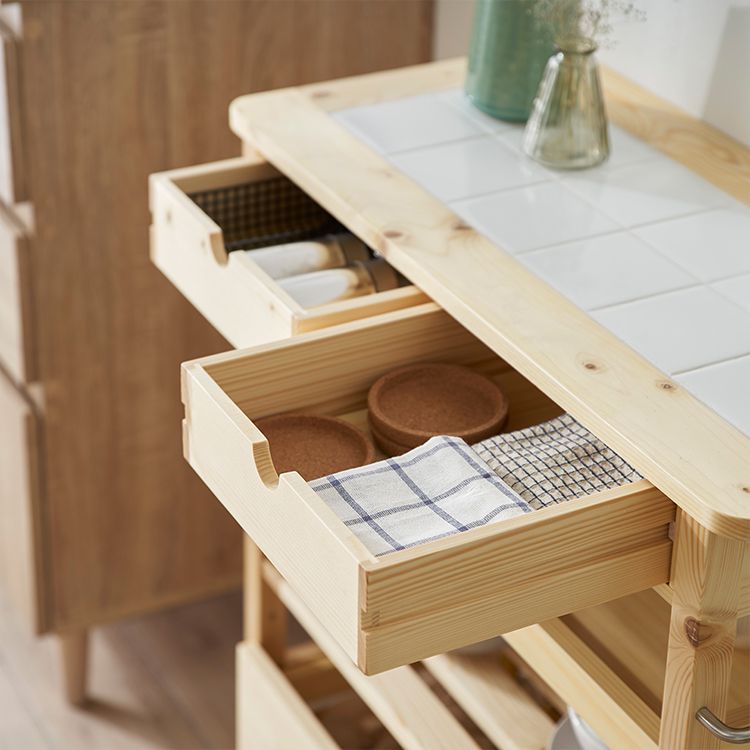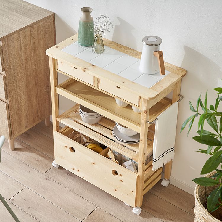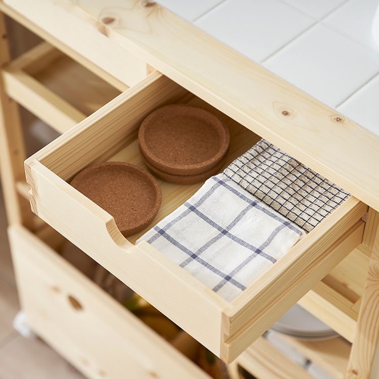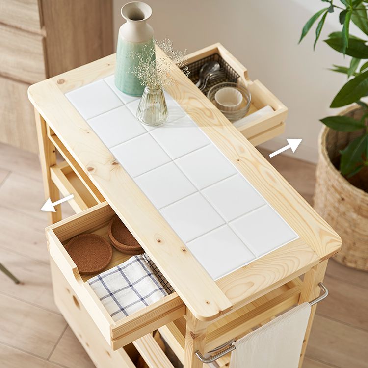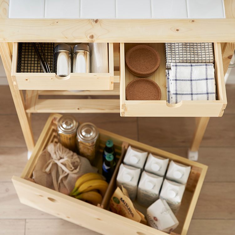 天然木とタイルの組み合わせがオシャレで、ほっと落ち着くカントリースタイルのキッチンワゴン。デザイン性に加え、コンパクトなサイズ感と自由に動かせる便利さも魅力です。熱々の鍋や調理器具を置ける天板。トレーにもなる棚板。高さを調整できる可動棚。スムーズに動く可動ワゴンなどなど……。このワゴン1つで、あなたの毎日をスマートにサポートします。
