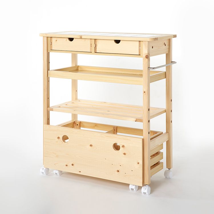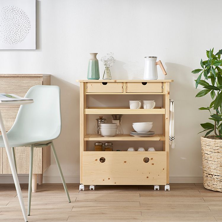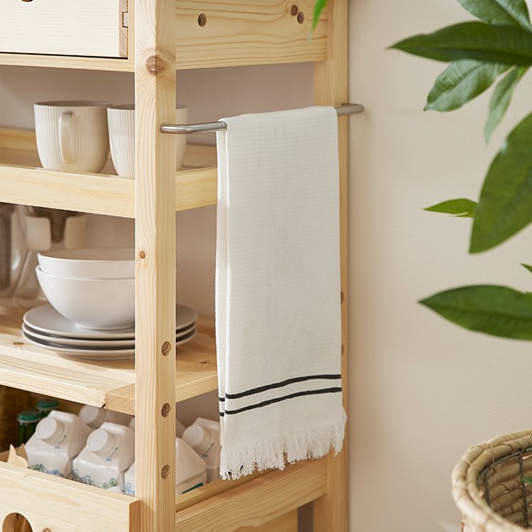 キッチンワゴン キッチン収納 タオルハンガー付き 棚板付き 天然木使用