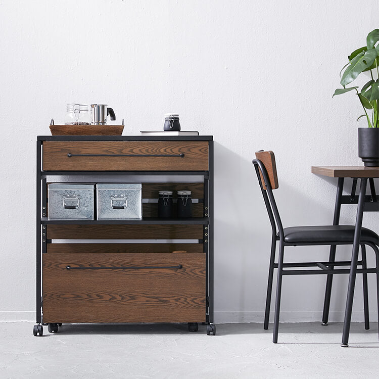 キッチン収納 キッチンワゴン キャスター付き 突板 キャビネット