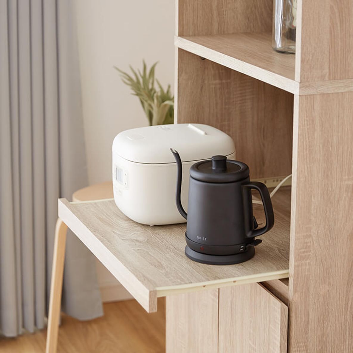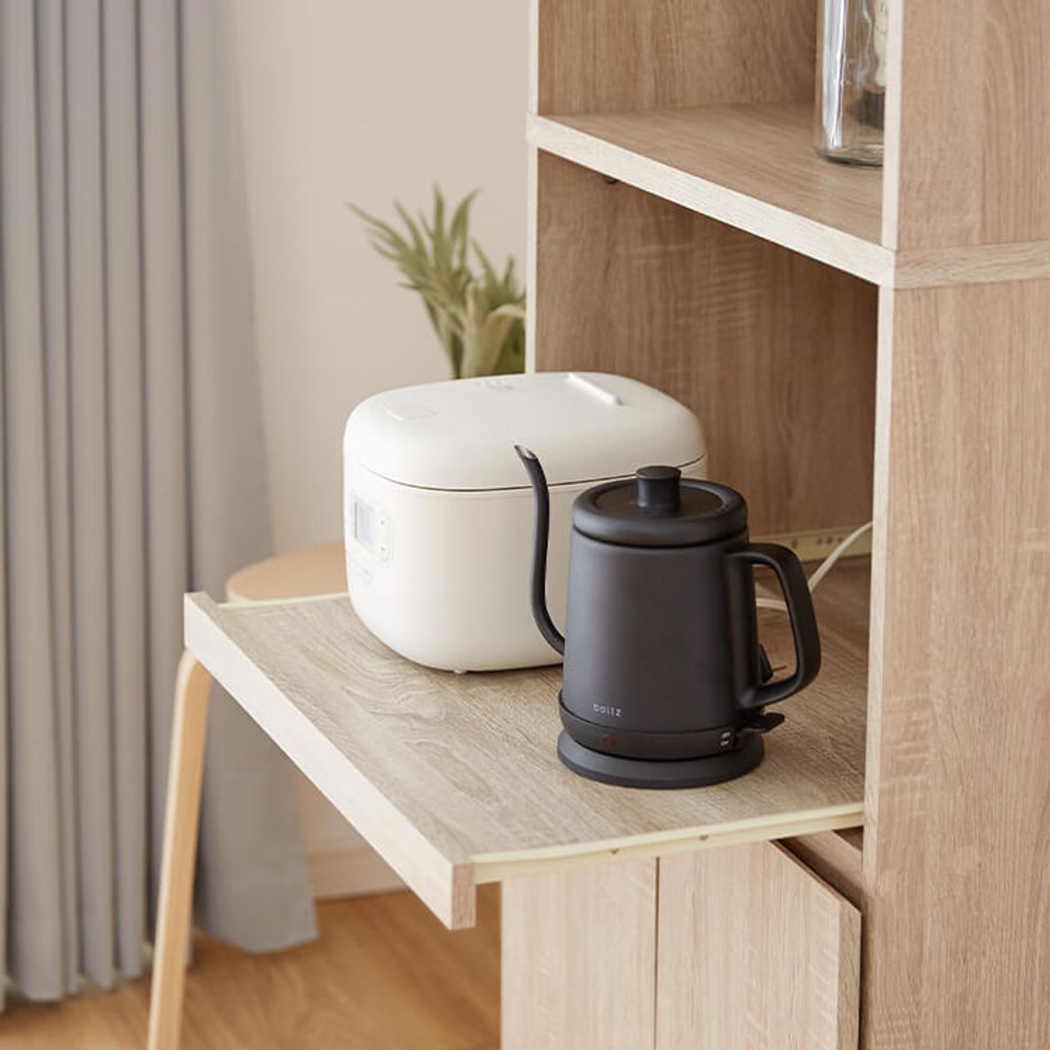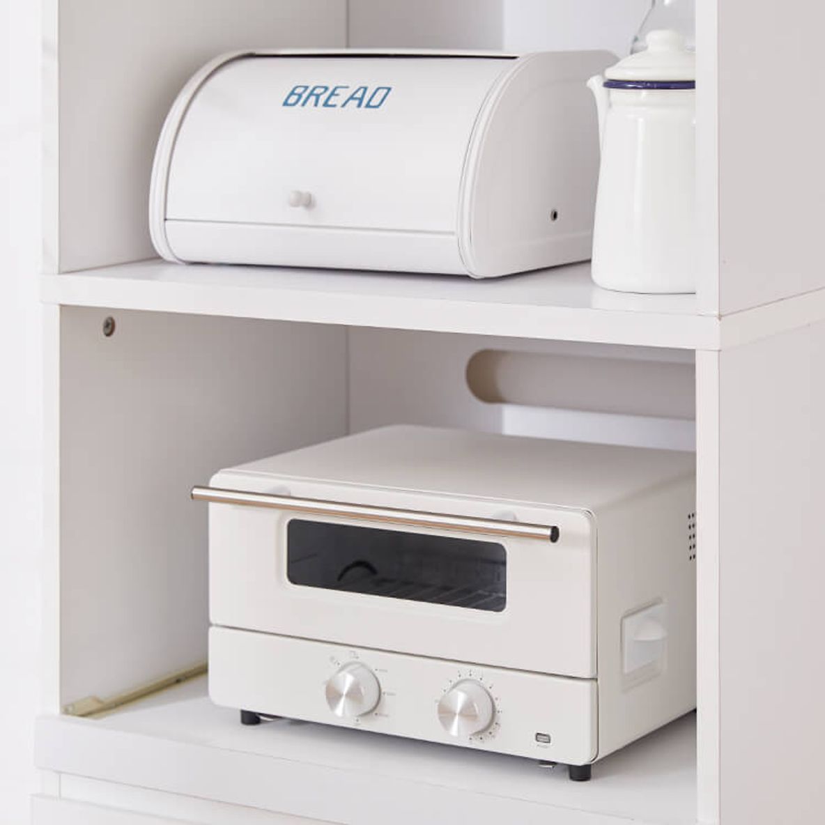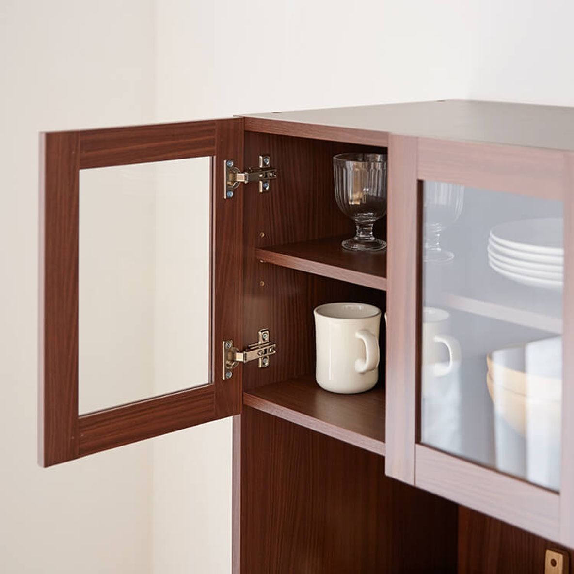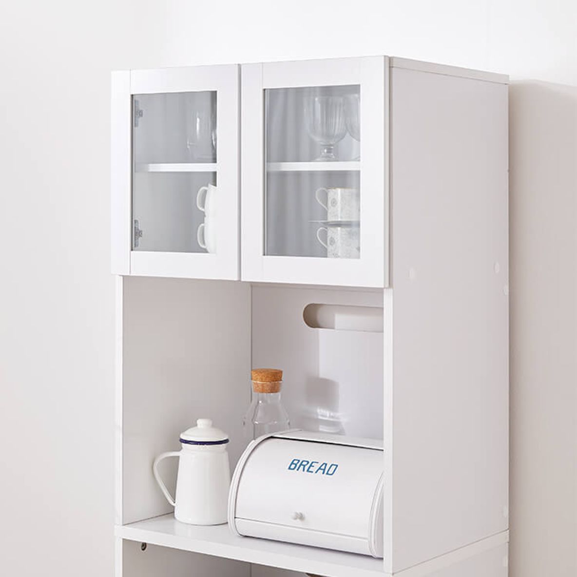 幅をとりすぎない丁度良い大きさとキッチンアイテムがすっきり片付く収納力。機能とムードにこだわったキッチンボードで、毎日のお料理がはかどる使いやすいキッチンへ。レンジ、ポット、炊飯ジャー、コーヒーメーカー…毎日使う家電製品がスッキリ片付きます。さらに豊富な収納スペースで、食器から鍋など大きなものまで収納可能です。幅はコンパクトな59cm、さらに上の空間を利用したハイタイプなので、あらゆる広さのお部屋で活躍してくれます。置く食器類を美しく見せてくれるガラス扉収納。扉のガラスにはキレイな透明感を誇る強化ガラスを使用しました。一般的なガラス(フロート板ガラス)に比べると3~5倍程度の強度があるガラスです。