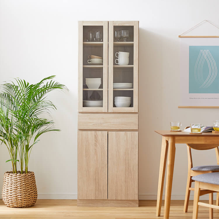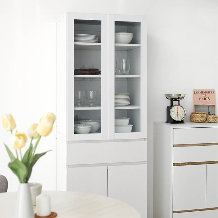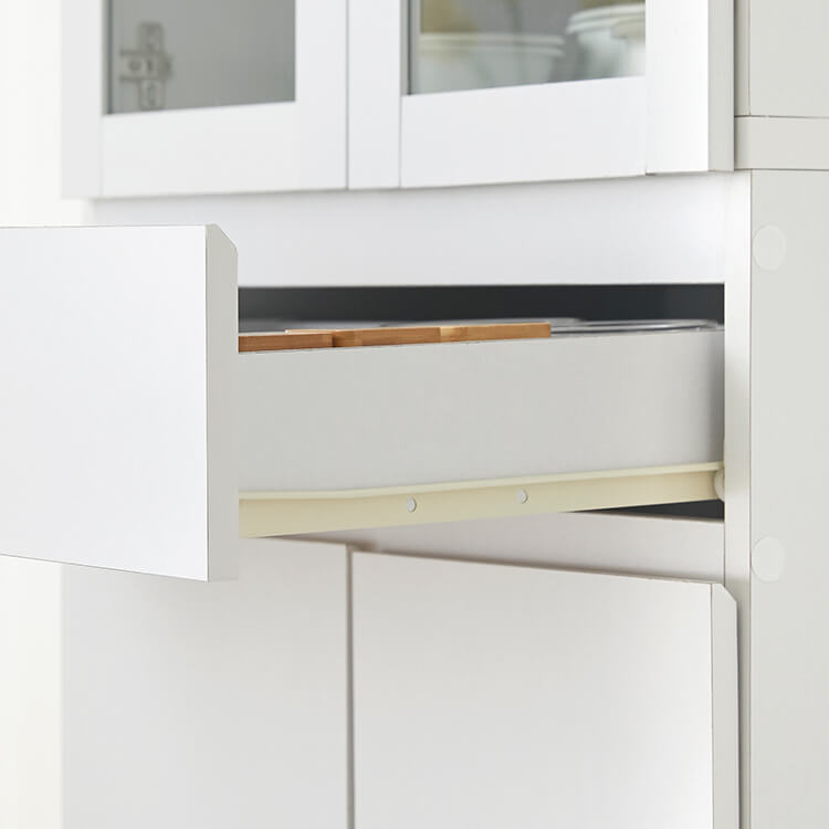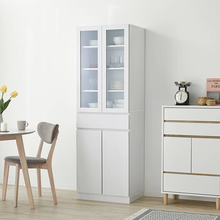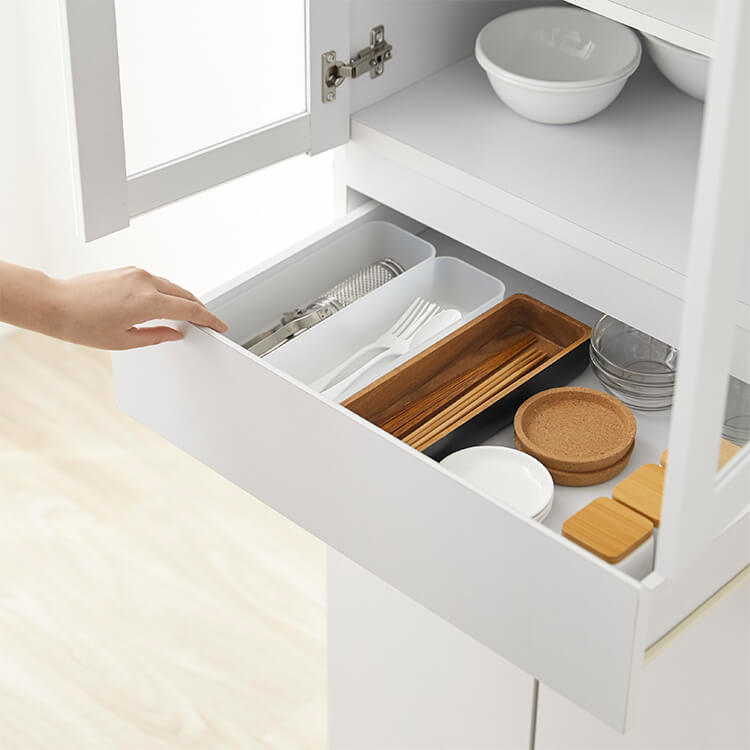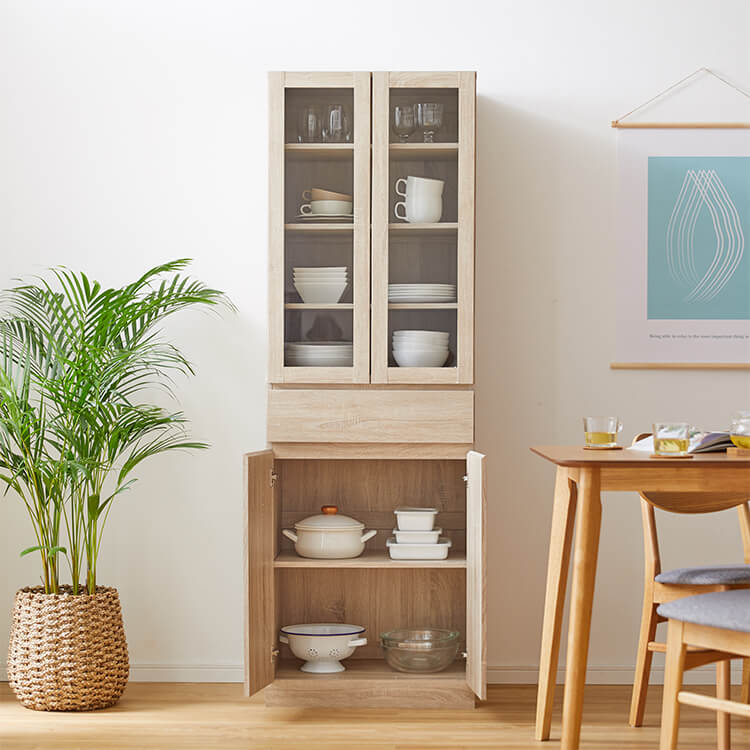 シンプルに美しく、でも収納はたっぷり。 使いやすさとムードにこだわった収納で、キッチンをおしゃれに引き立てます。シンプルで美しいフォルムが、キッチンを清潔感ある落ち着いた雰囲気に。 幅はコンパクトな59cm、上の空間を利用したハイタイプなので、 1LDKから大きな部屋まで使いやすい設計です。