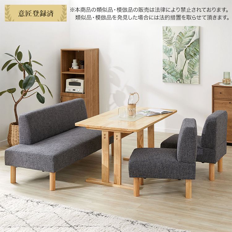 ソファダイニングセット 4人掛け(4点) 角丸加工 ロースタイル レイアウト自由