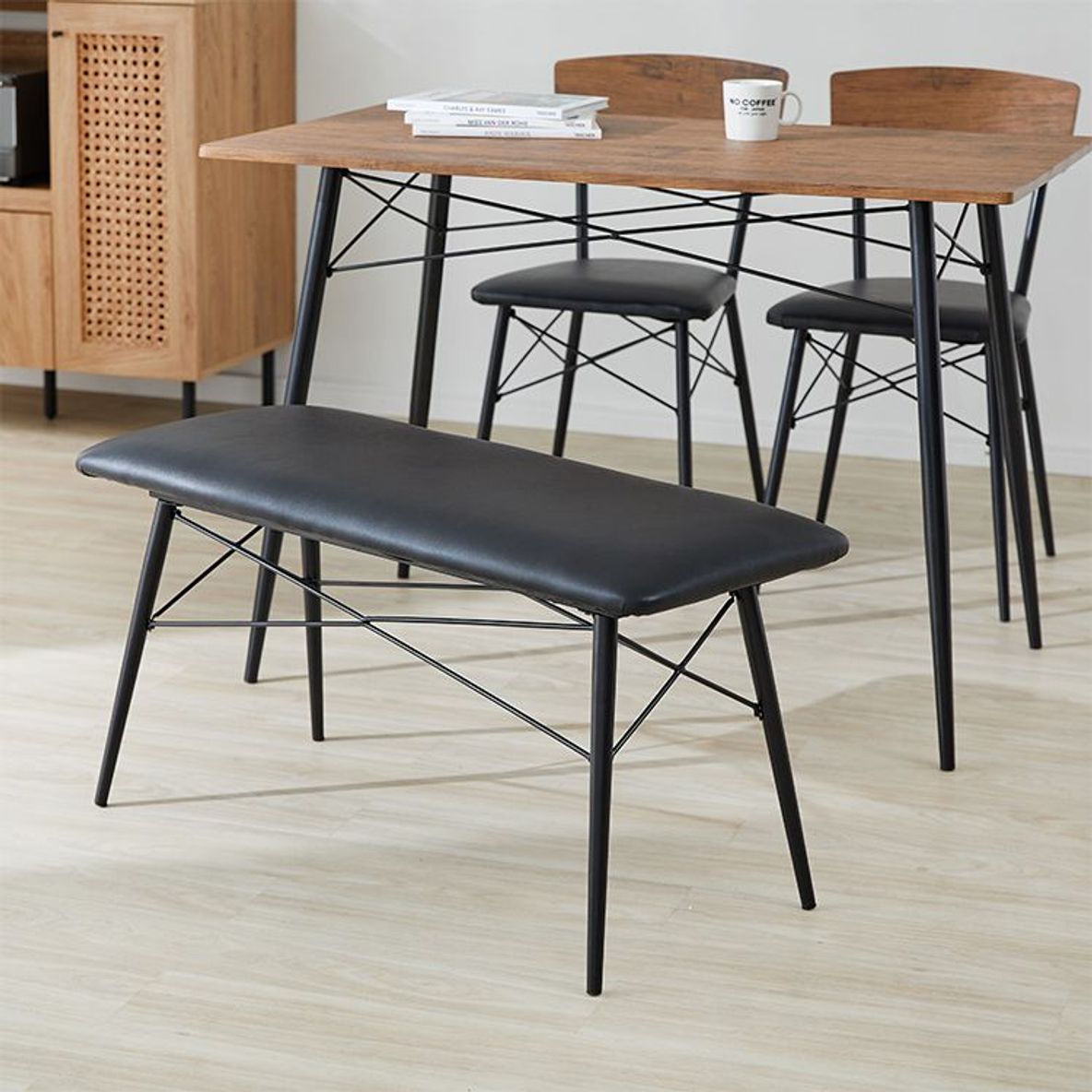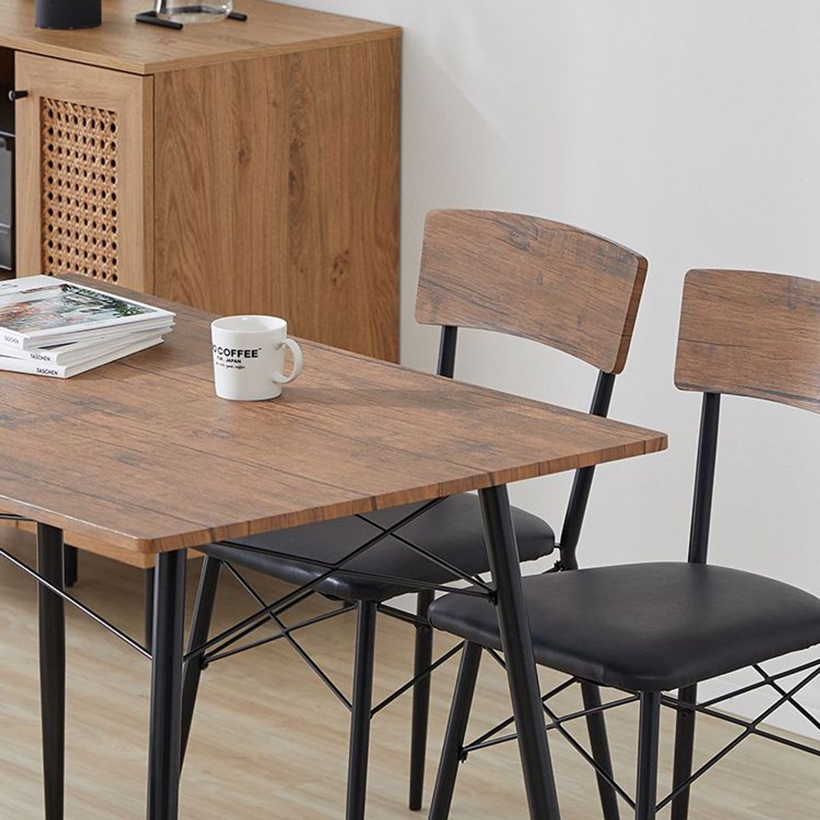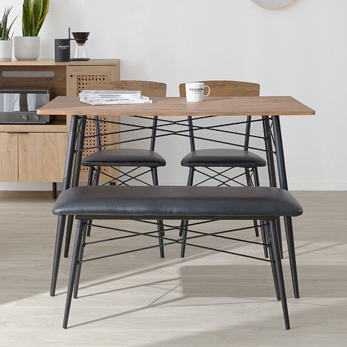 飾り気のないダイニングなのに、そこに座ると何だか心地良い。ここにいるだけで流れる時間が有意義で、価値のあるものに感じられる。普段なら何気ない時間も、このダイニングで味わい深い時間に。「ベンチタイプ」と「チェアタイプ」の2つからお選びいただけます。リアルな木目調と、マットなブラックスチールの異素材コンビ。シンプルさと武骨さを両立したデザインが、こなれた雰囲気を演出します。また、テーブルとチェア、ベンチの斜め脚がデザインのポイントです。