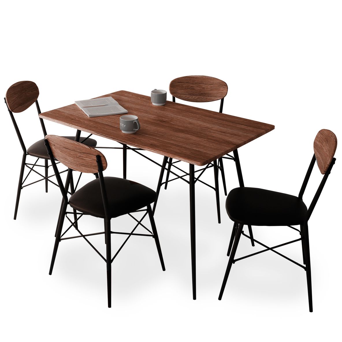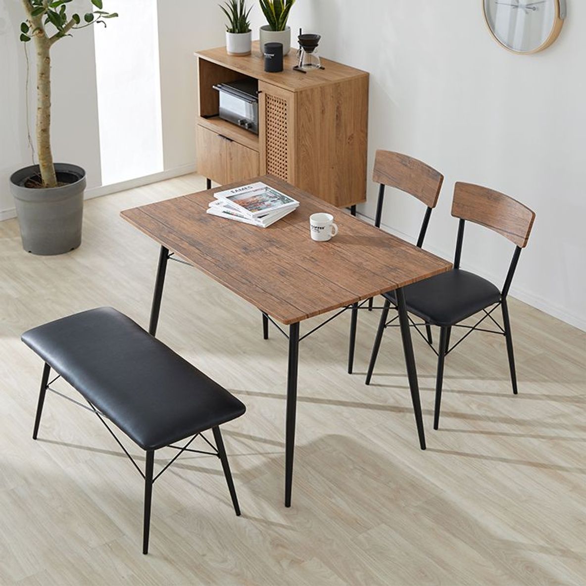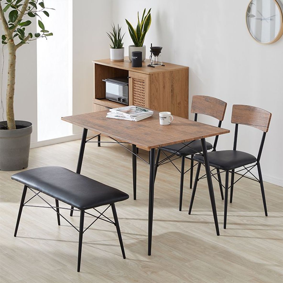 ダイニングテーブルセット 4点/5点セット 選べる2タイプ 椅子 ベンチ コンパクト スチール脚 ヴィンテージ調 インダストリアル