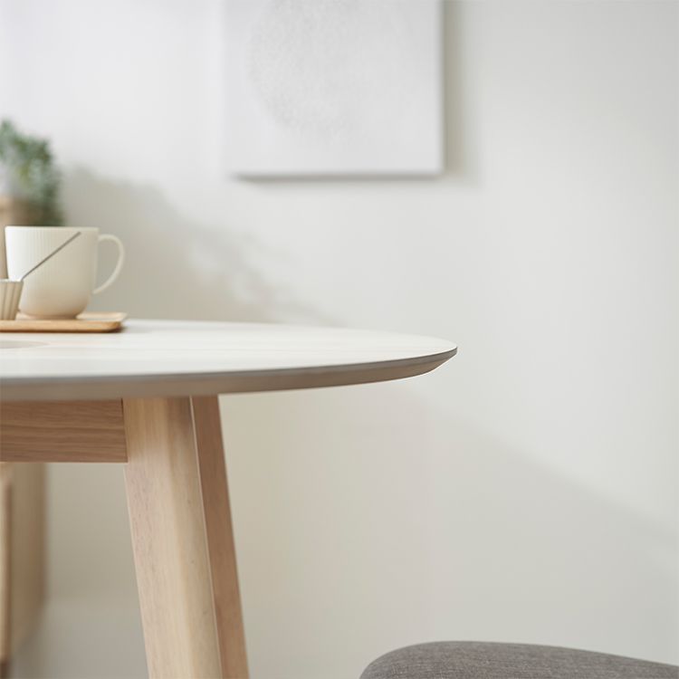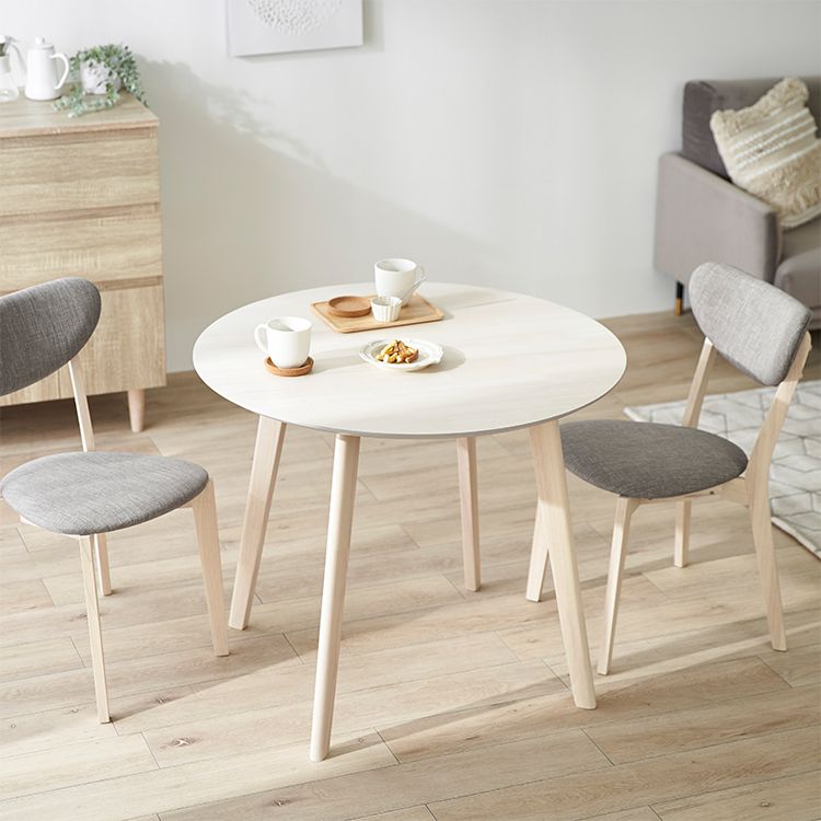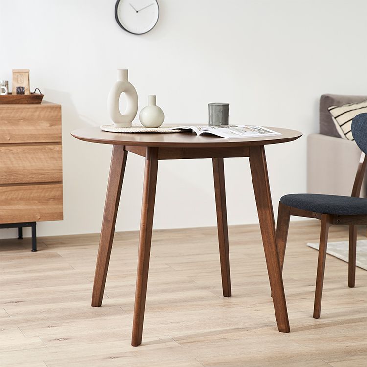 丸いフォルムとあたたみを感じる木目が魅力のコンパクトなラウンドテーブル。お好みのチェアを合わせて使える、テーブル単品です。お部屋に圧迫感を与えにくい、コンパクトサイズ◎限られたスペースでも憧れのダイニングテーブルという選択肢を!天板はコンパクトながら3人でも囲める直径約90cm。角がない丸いシルエットは、お部屋に優しくやわらかいアクセントをプラスします◎使用しているラバーウッドの一番の特徴は「滑らかな手触り」。木材本来のあたたかみも感じられ、選ぶカラーによって印象も大きく変わります◎