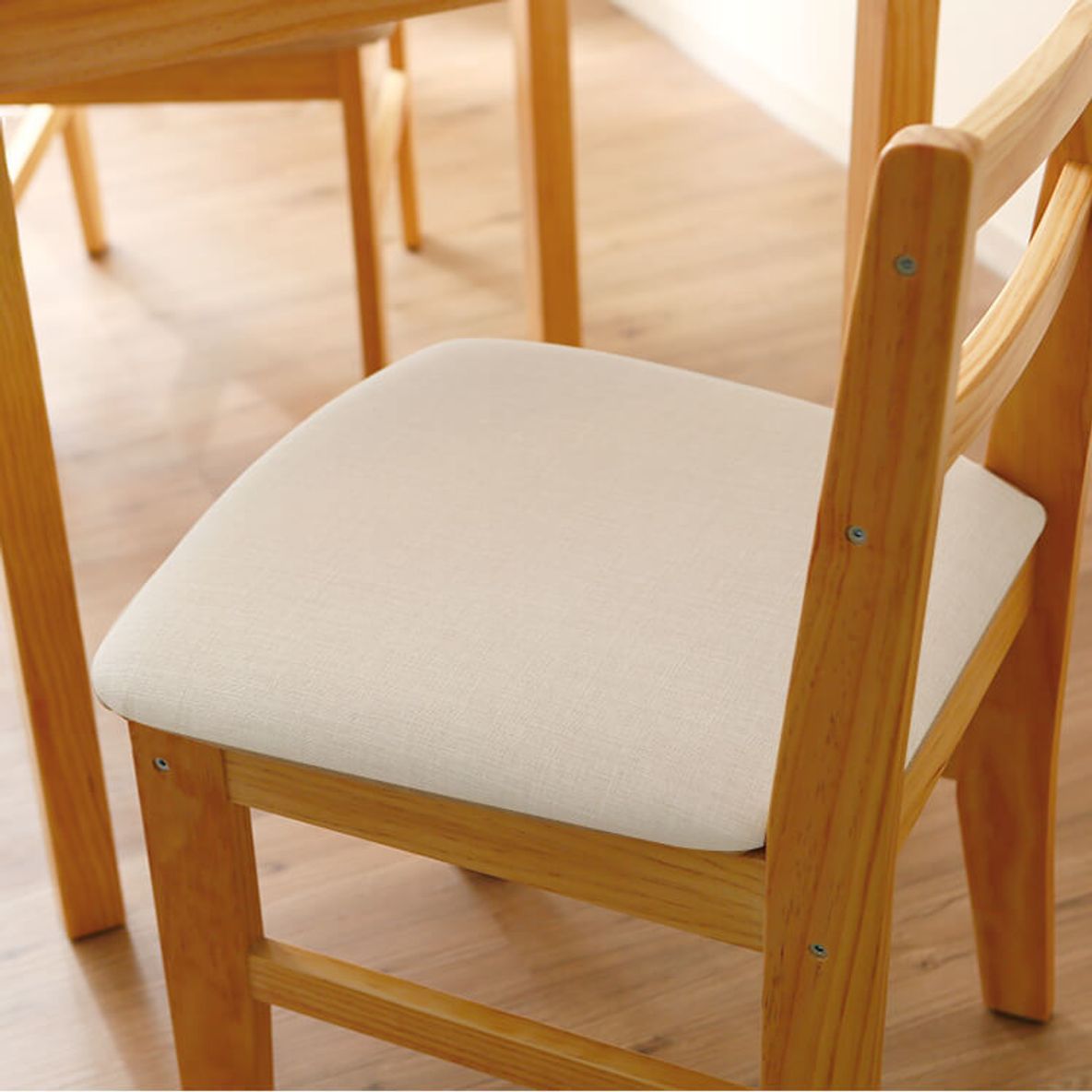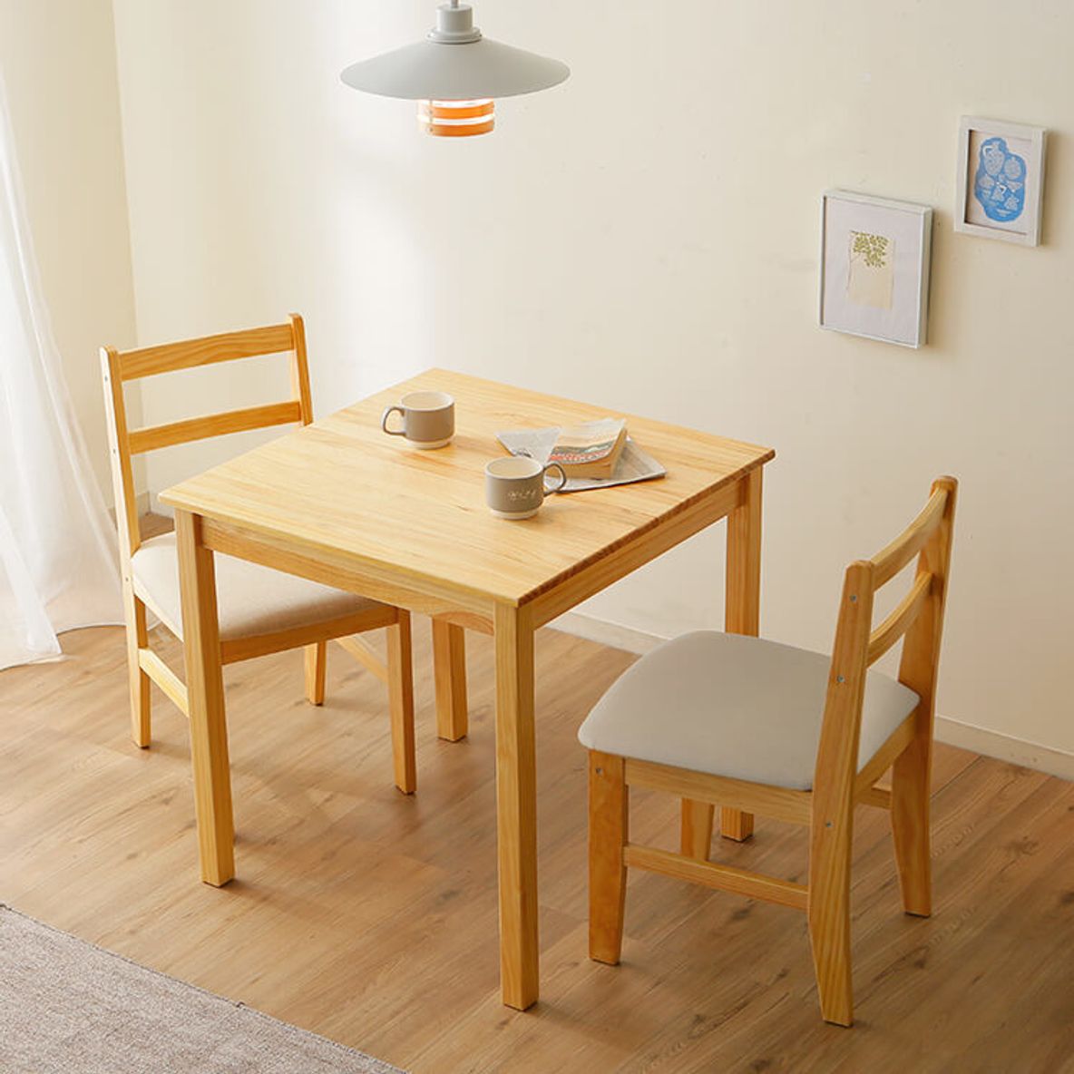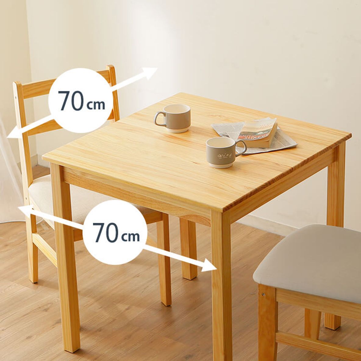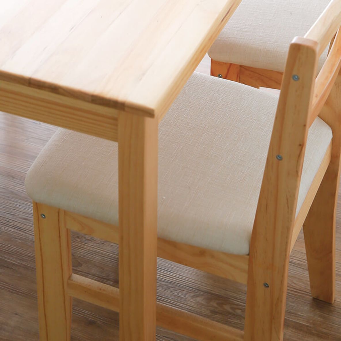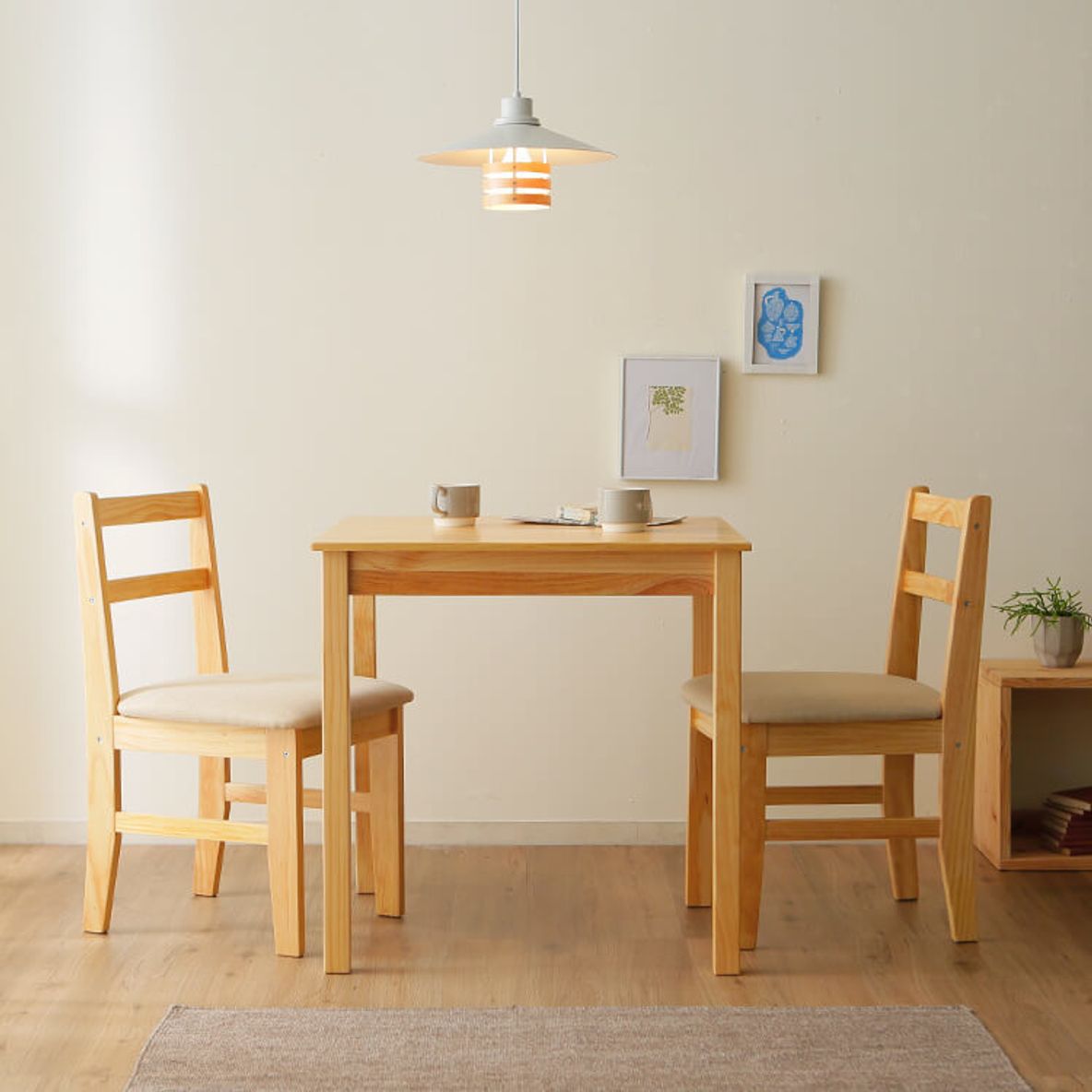ナチュラルなパイン無垢材が、明るいリビングをつくる3点セットダイニングです。家族が集まる場所はぬくもりのある空間でありたい。 ALLパイン無垢材の明るくぬくもりあるムードは お部屋に置くだけでリビングをナチュラルで清潔感のある場所にしてくれます。座面にはやわらかな麻が混じっている ファブリックを使用しました。 見た目も触り心地も爽やかで、ナチュラルで 優しい雰囲気のパイン無垢材と相性バッチリです。省スペースで使いたい方や2人暮らし、お子様が小さいご家庭でこの大きさはジャストサイズでスペースを無駄なく使えます。