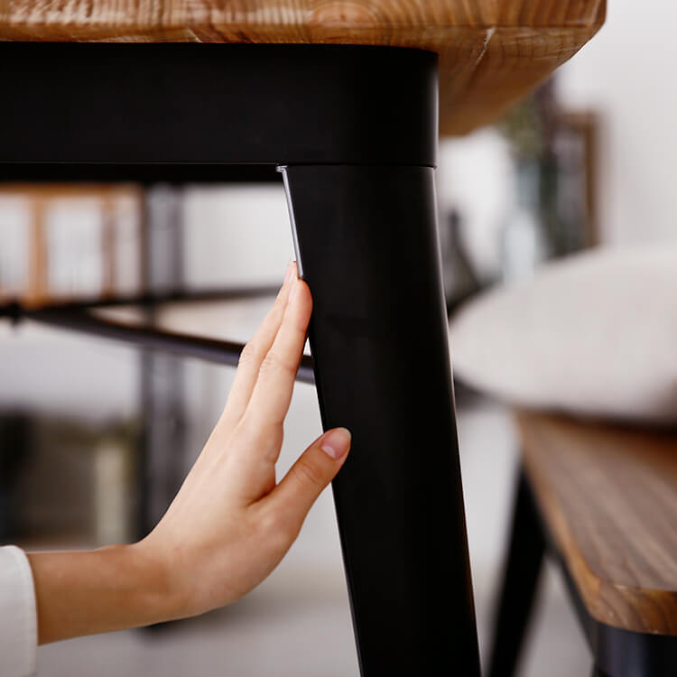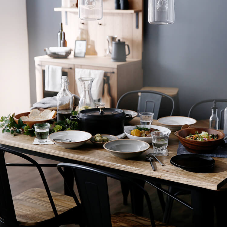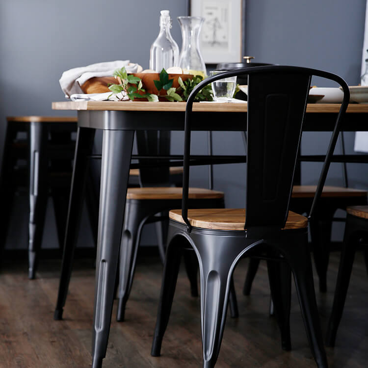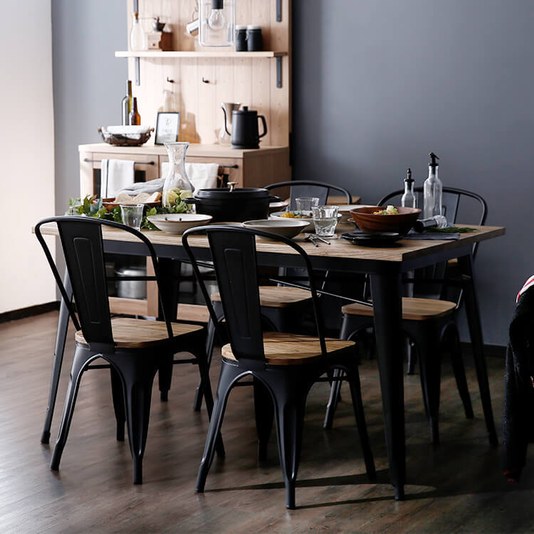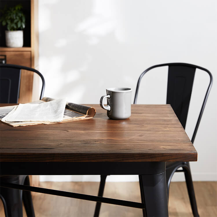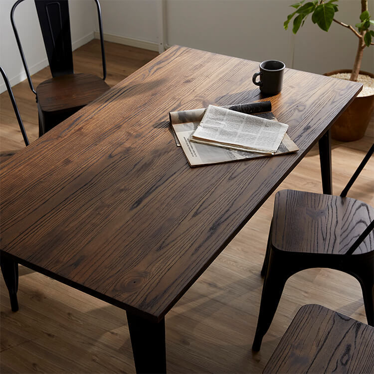 コーヒーの香りがしてきそうな心地よい空間を作り、心地よい時間が流れます。誰もが使いやすいバランスのヴィンテージダイニングテーブル。人気の異素材ミックスが生み出す、おしゃれなムードが魅力。たっぷり使えるワイドな天板だから、お料理がたくさん乗ります。大人が4人座っても狭さを感じさせないゆとりある広さで、ホームパーティーにもおすすめのサイズ感です。無骨なスチールの素材感と無垢材を合わせることで洗練されたイメージに落とし込みました。