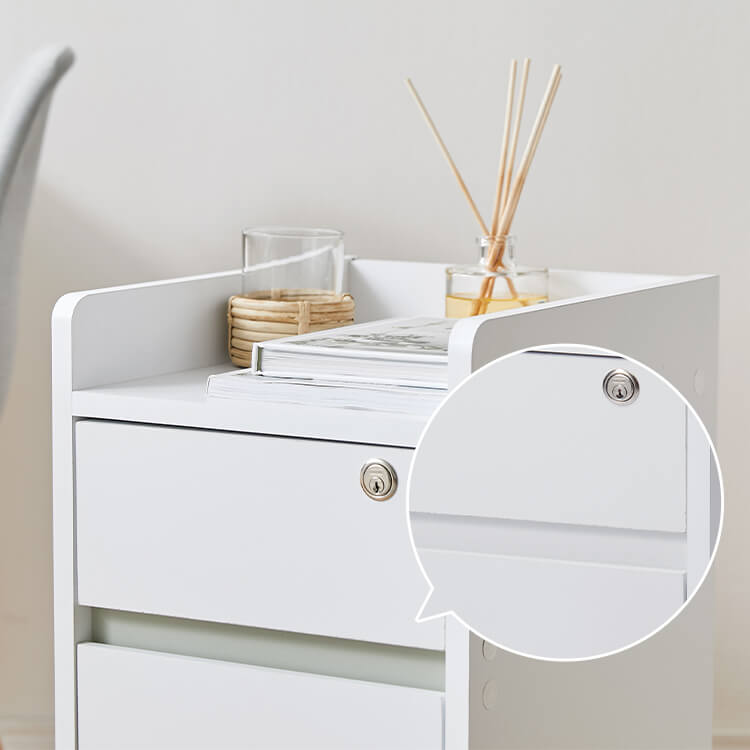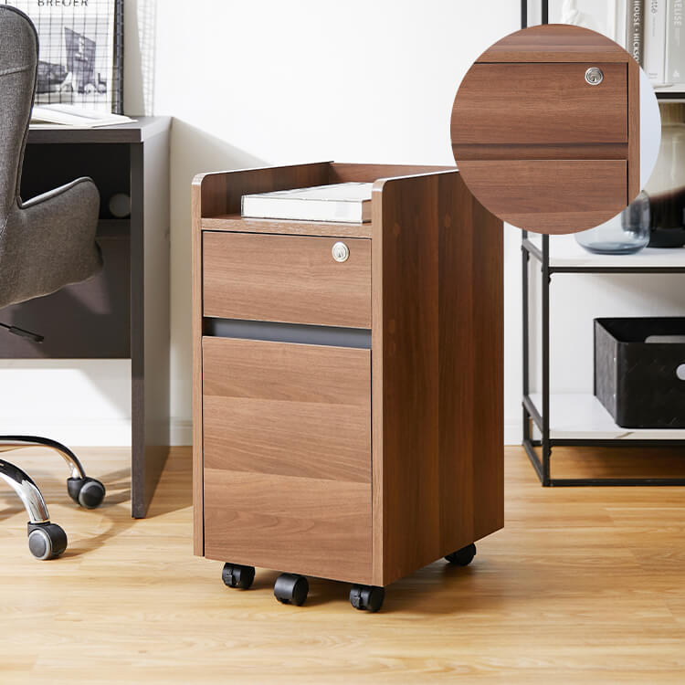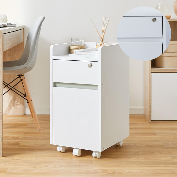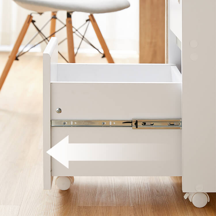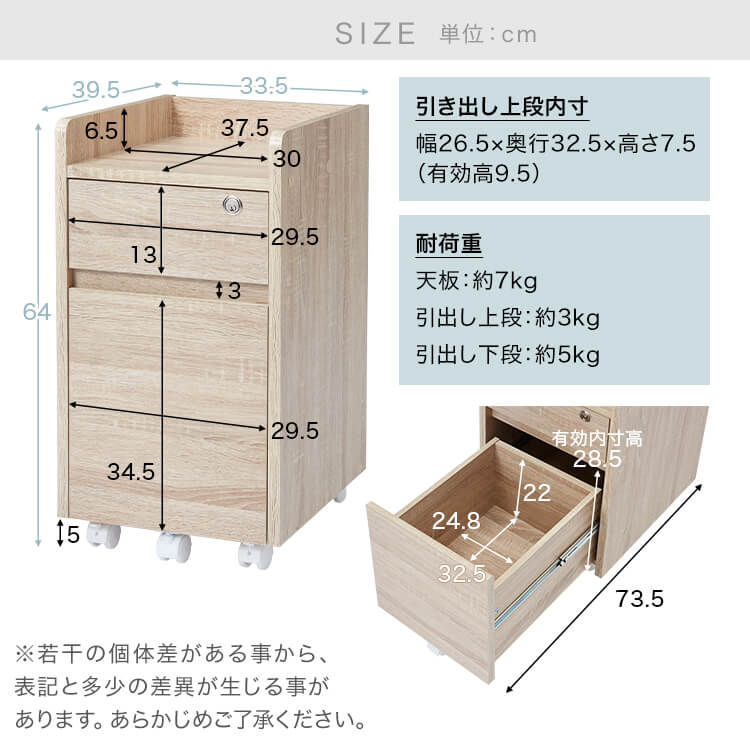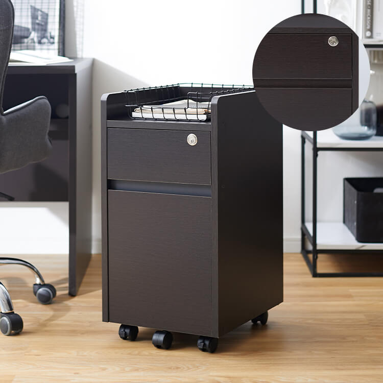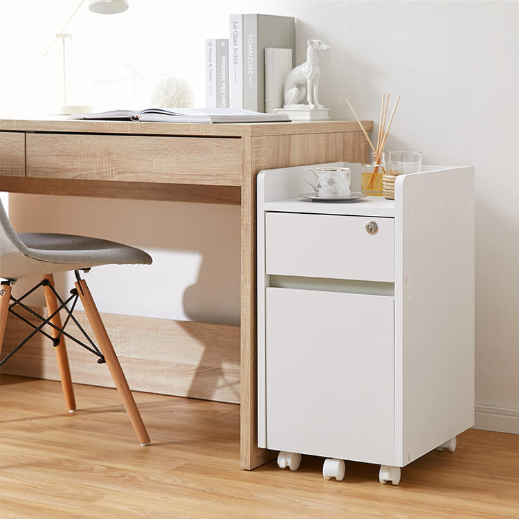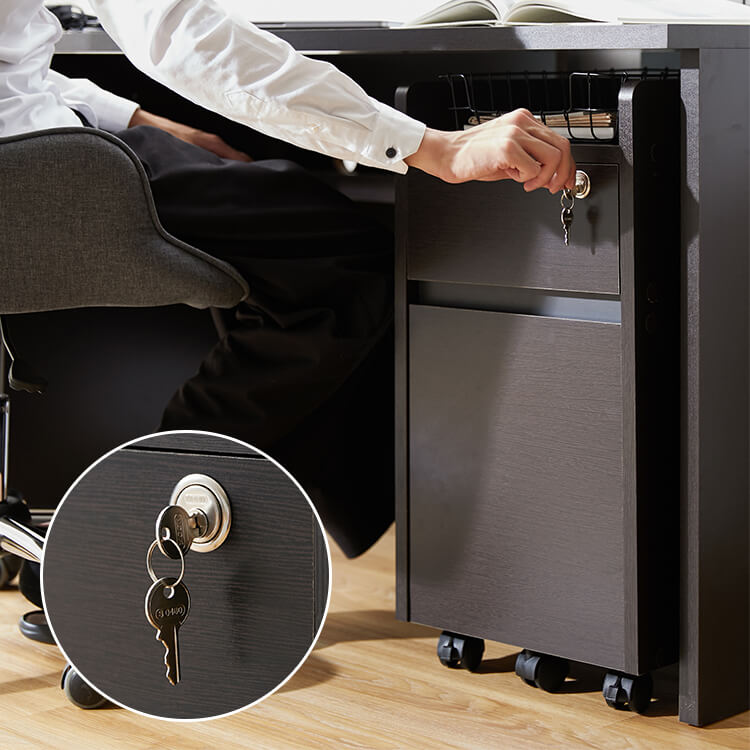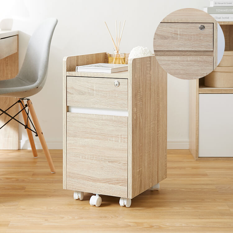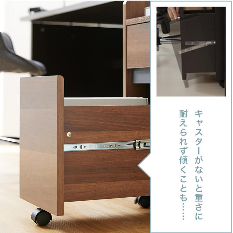 美しい木目調に選べる2トーンカラーがオシャレなサイドチェスト。スリムな見た目なのにしっかり収納できる、デスク回りの頼もしい存在です。このチェストの魅力は、デスク下の脚元においても邪魔にならないスリムな幅。しっかりとA4ファイルが収まる収納力もポイントです。木目の中に目を惹く2トーンカラーは、なんと「リバーシブル」仕様。組み立ての際に選んでお楽しみいただけます。思わず触れたくなるような木目調は、木のぬくもりを表現したリアルな造り。ナチュラルで柔らかい雰囲気がお部屋に馴染みます。