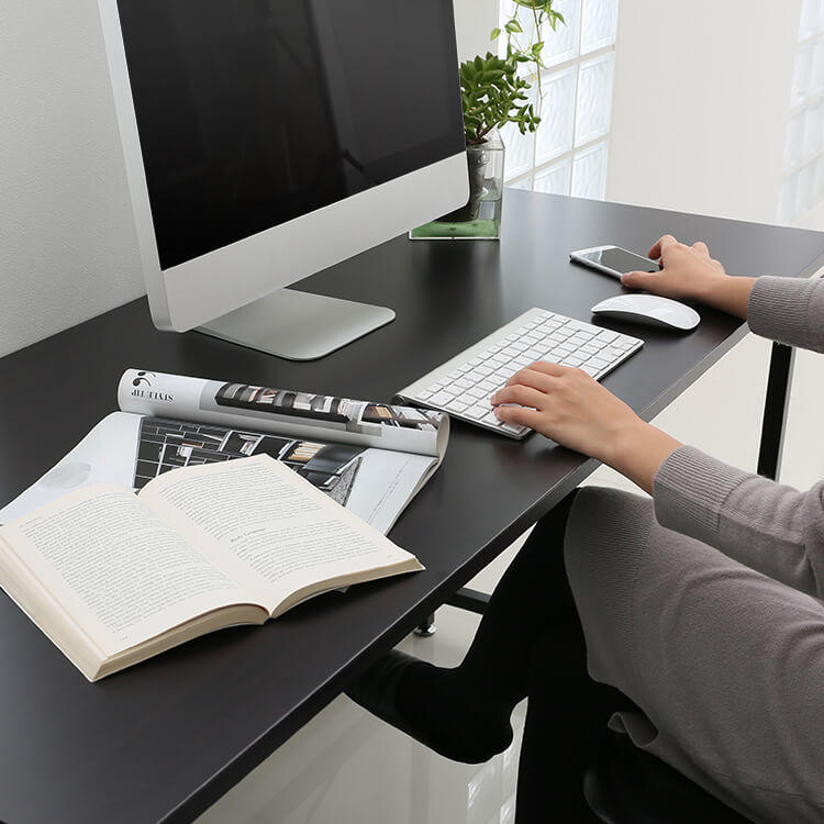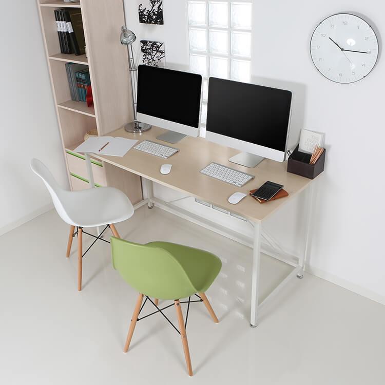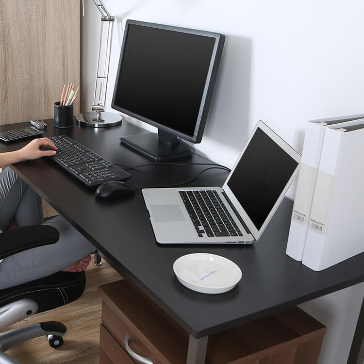余分な装飾を一切なくしたシンプルなデザインで、飽きずに長く愛用できる多目的デスクに幅140cmワイドタイプが登場。ゆったり快適に使える奥行きと頑丈設計で、ご自宅やオフィスでも大活躍してくれます。お部屋や用途に合わせて、自由にカスタマイズできるシンプルデスク。無駄のないデザインと落ち着いた木目調の天板が、どんなお部屋にもスッと馴染みます。奥行きに余裕がある幅140×奥行60cmの広々天板だから、パソコンや書類・ノートを広げたりとゆったり快適に作業していただけます。パソコンを2台並べたり、プリンターやスキャナーなどの周辺機器を置いたりと、複数の作業を並行して行えるので作業効率が格段と上がるでしょう。