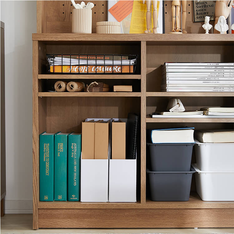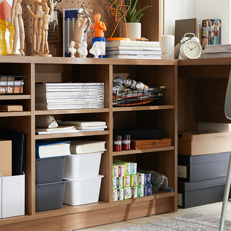 システムデスク 壁面収納 書斎 木目調 大型 パソコンデスク 本棚 ラック付