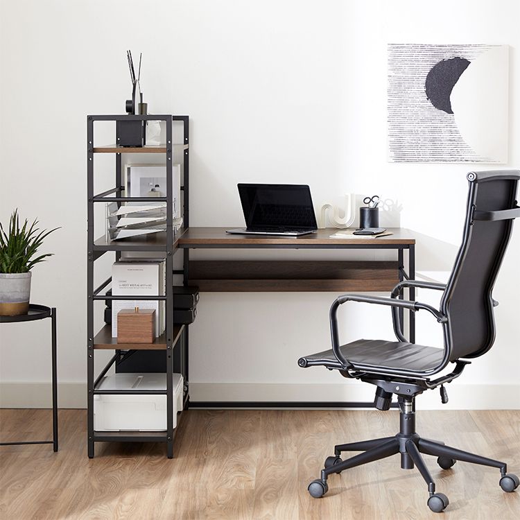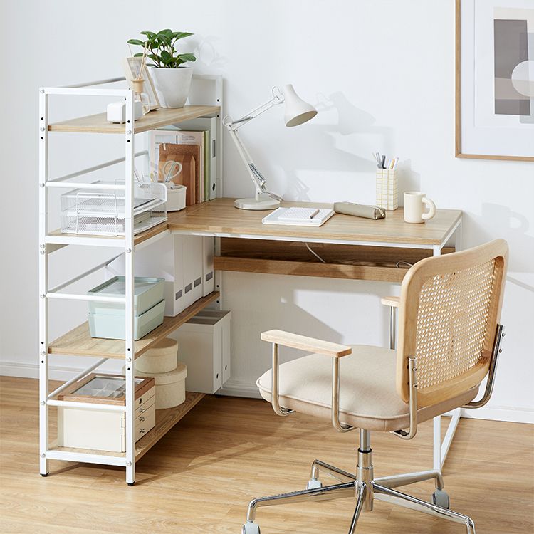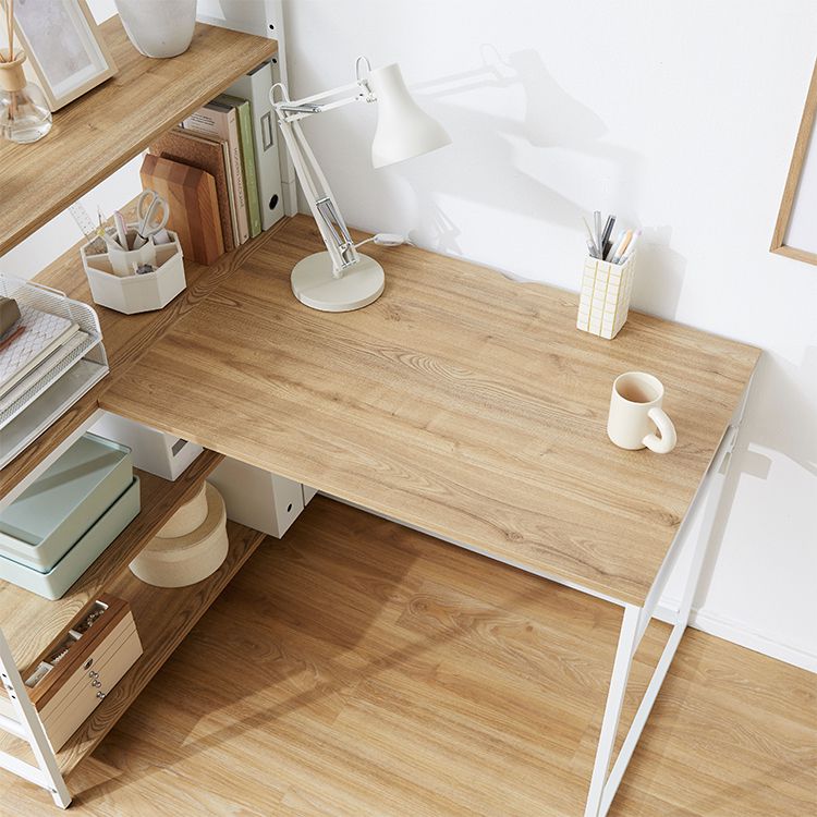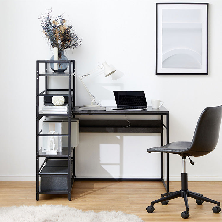 デスクとラックが一体になった便利なカタチ。必要なものを、手の届く範囲にまとめて置けるスマートさが魅力です。たっぷりの収納と広い天板デスクで、作業効率アップ!長くお使いいただけるよう機能性はもちろん、素材や質感にもこだわりをもって完成させたオリジナル商品!幅広いテイストに合わせやすく、スッキリとしたデスク周りを演出します。棚の位置は、組み立ての際にお部屋の間取りや利き手に合わせて、左右どちらでもお好みの位置に設置できます。デスク天板とラックの棚板は、木目調とコンクリート調からお選びいただけます。どちらもリアルな質感に仕上げました。熱・摩擦に強いメラミン素材を使用しているので、お手入れもサッと拭くだけとカンタン。※防水ではありませんので、濡れたときは放置せずに拭き取ってください。※熱いものを置く際、直接置かないようにご注意ください。