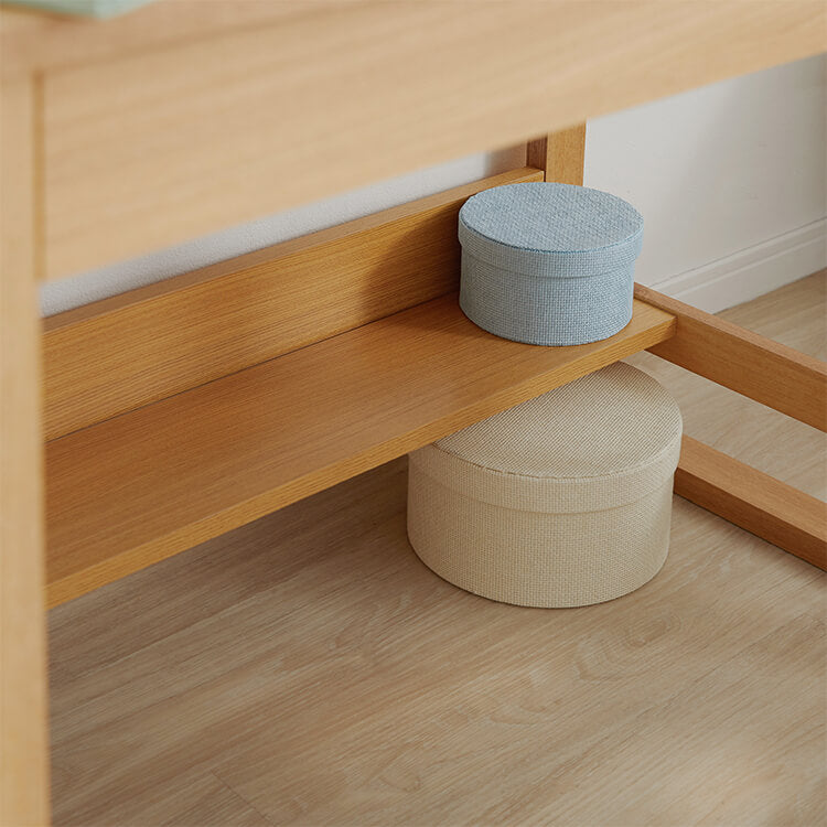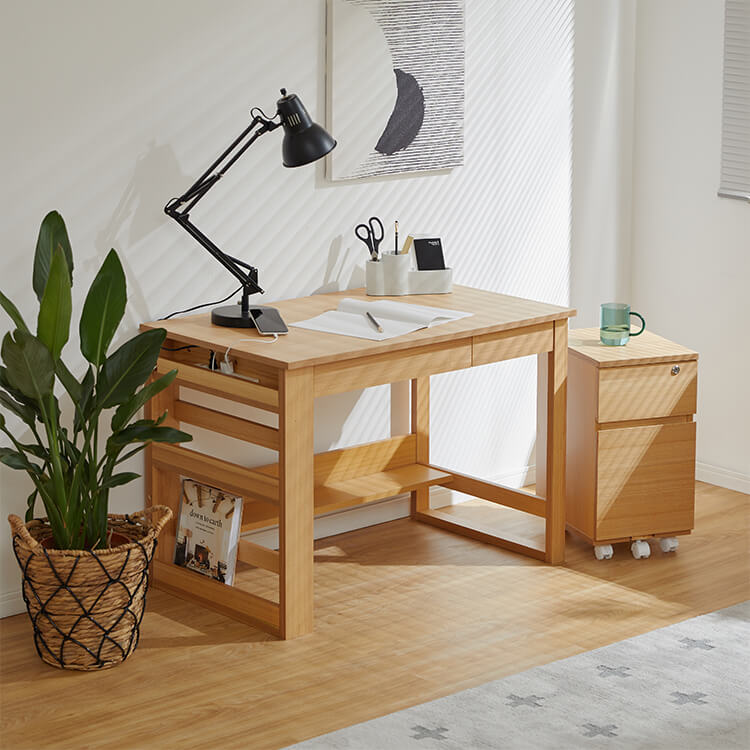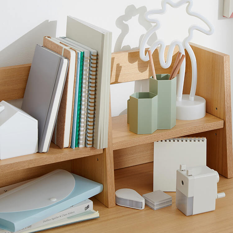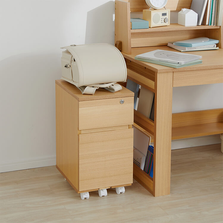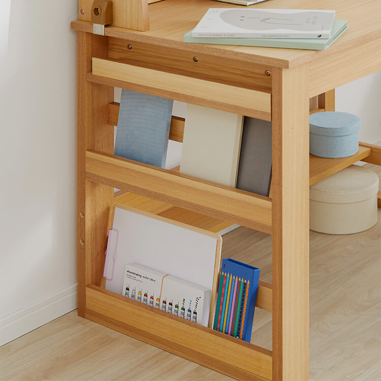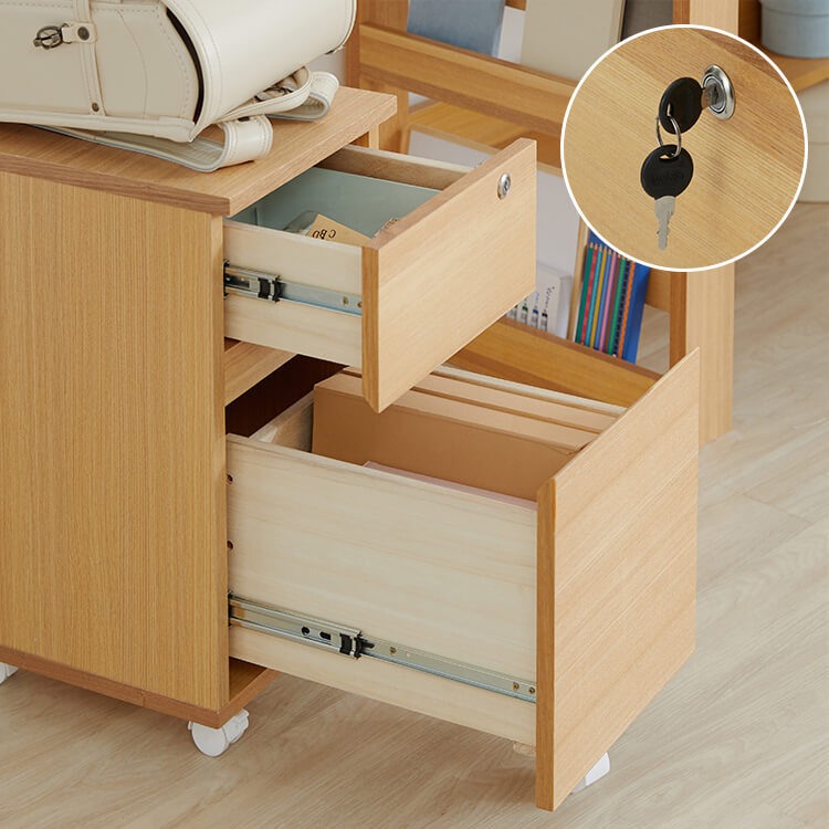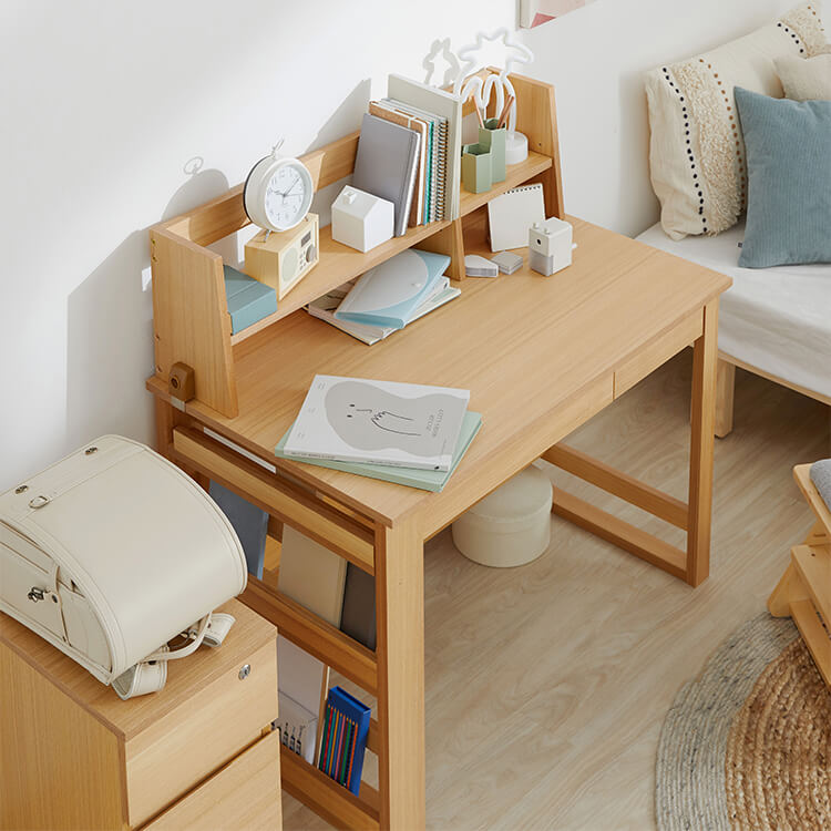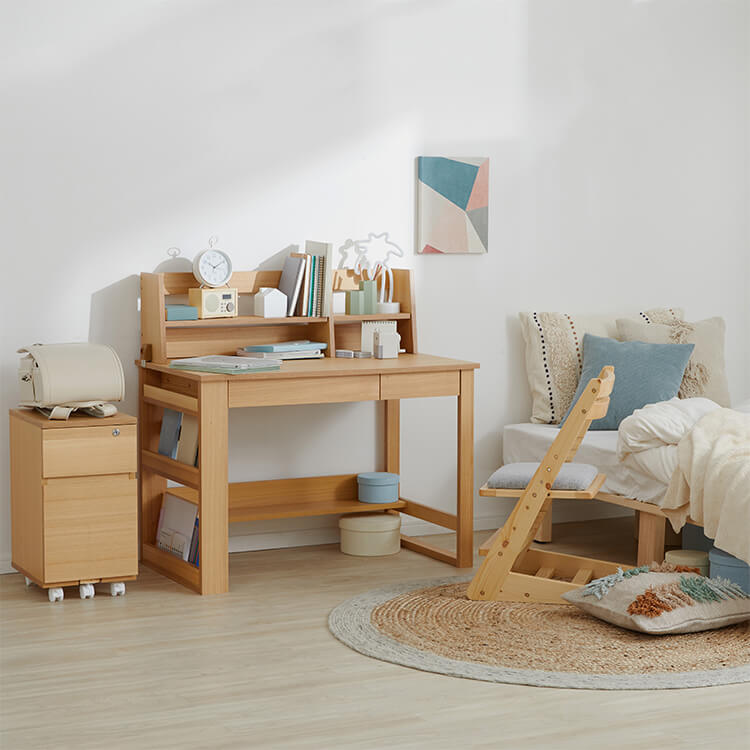 お子さまが毎日使い、その成長する姿を見守ってくれるデスク。だからこそ機能面にも優れ、ずっと大切に使っていけるオシャレな物に決めたいですよね。当社デザイナーが独自のこだわりを持って完成させたオリジナル商品です。カスタム自由でたっぷり収納もできるデスクで、楽しく充実した日々を!天然木を使用したオシャレデザインと、カスタム自由でたっぷりの収納力が自慢。長く使える、デザイン性の高さもポイントです!ラックや引き出しなど、子ども達もお片付けがしやすい豊富な収納スペース!溢れかえる本や小物もしっかり片付けます。