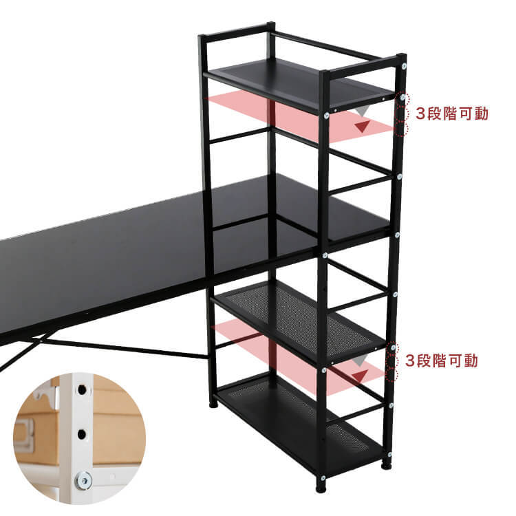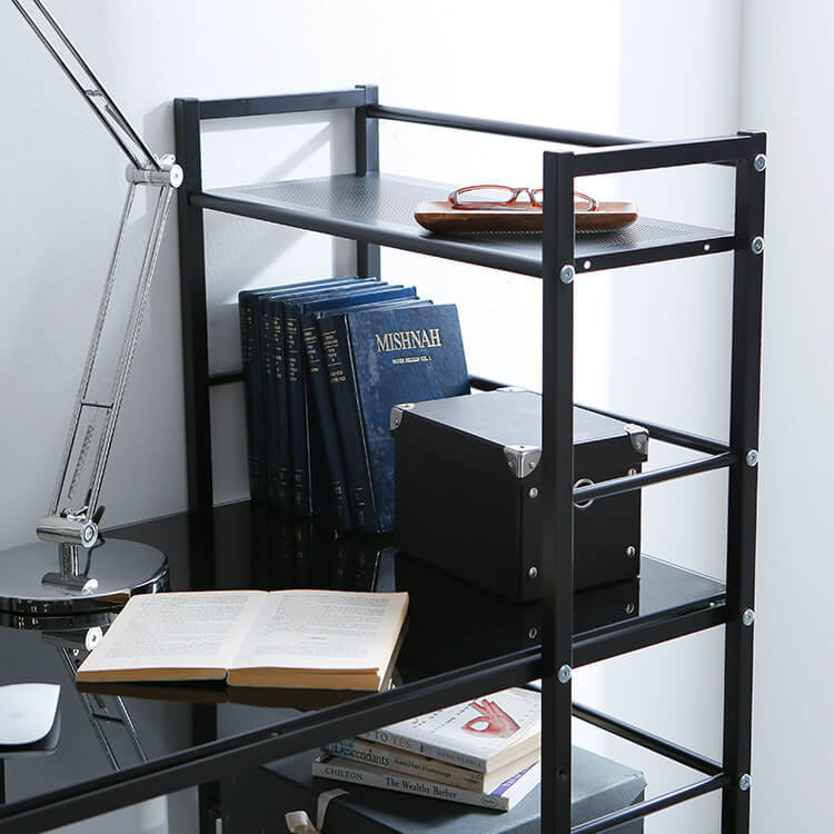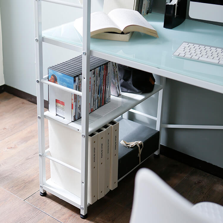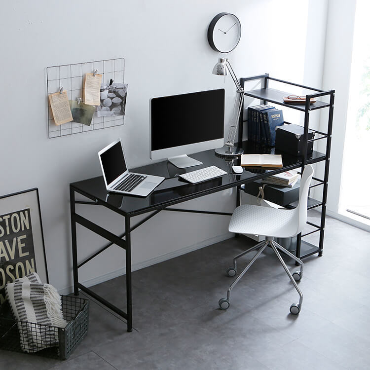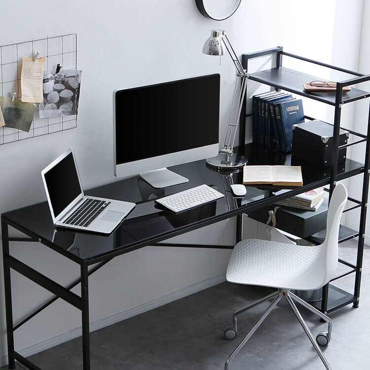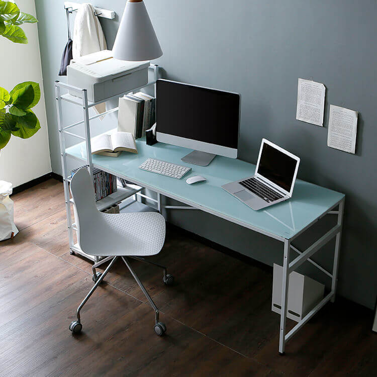 パソコンデスク 棚付き 収納ラック一体型 強化ガラス オフィス
