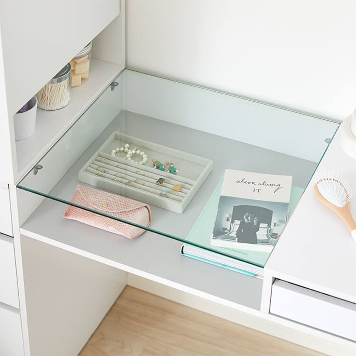 ネイルデスク 棚付きタイプ スリム ガラス天板
