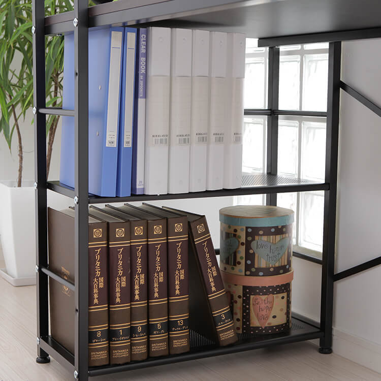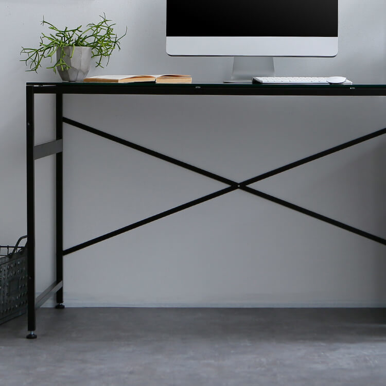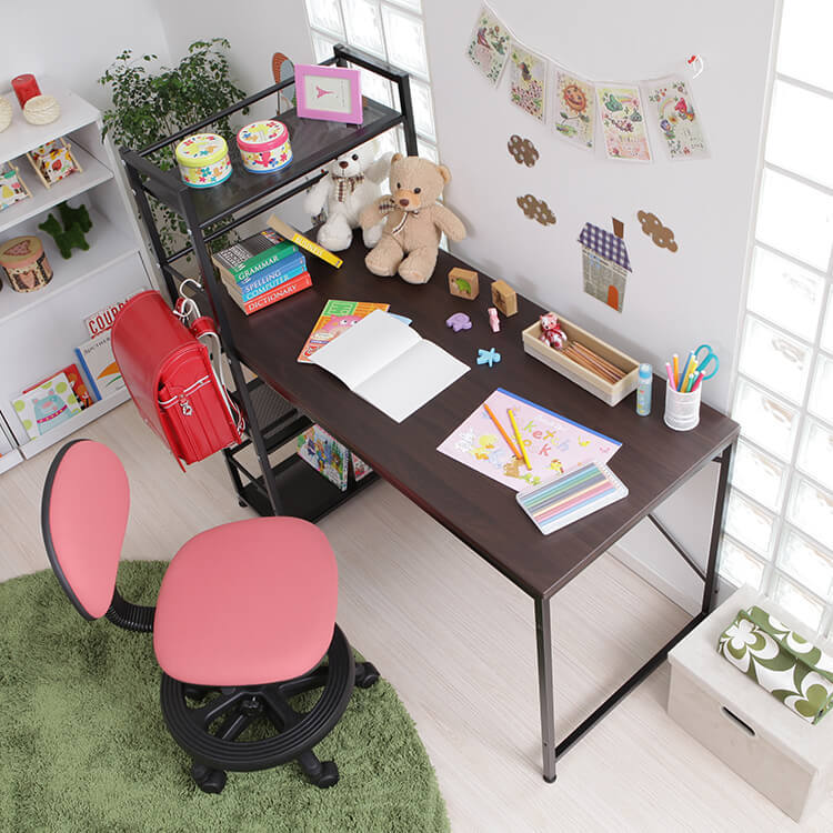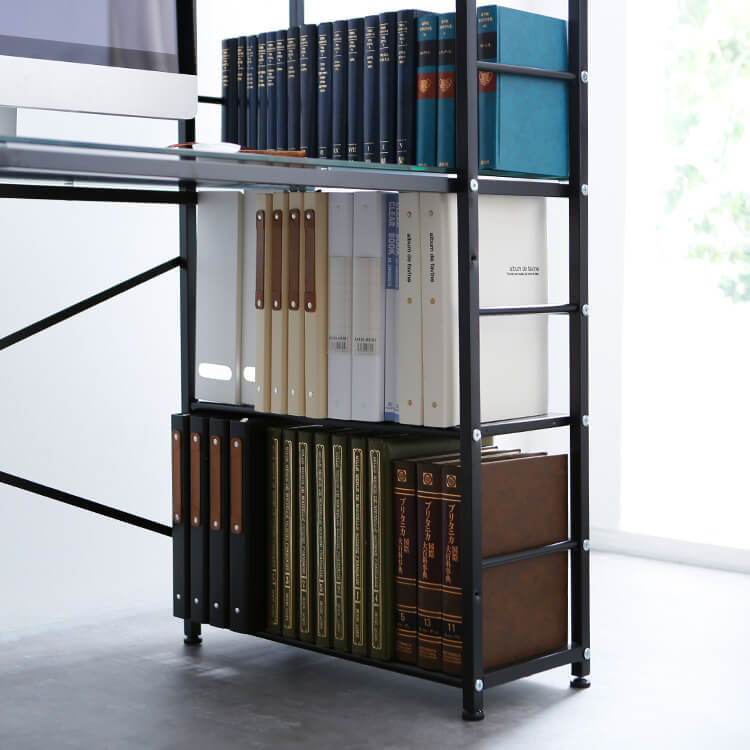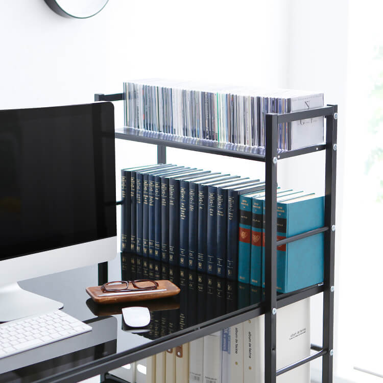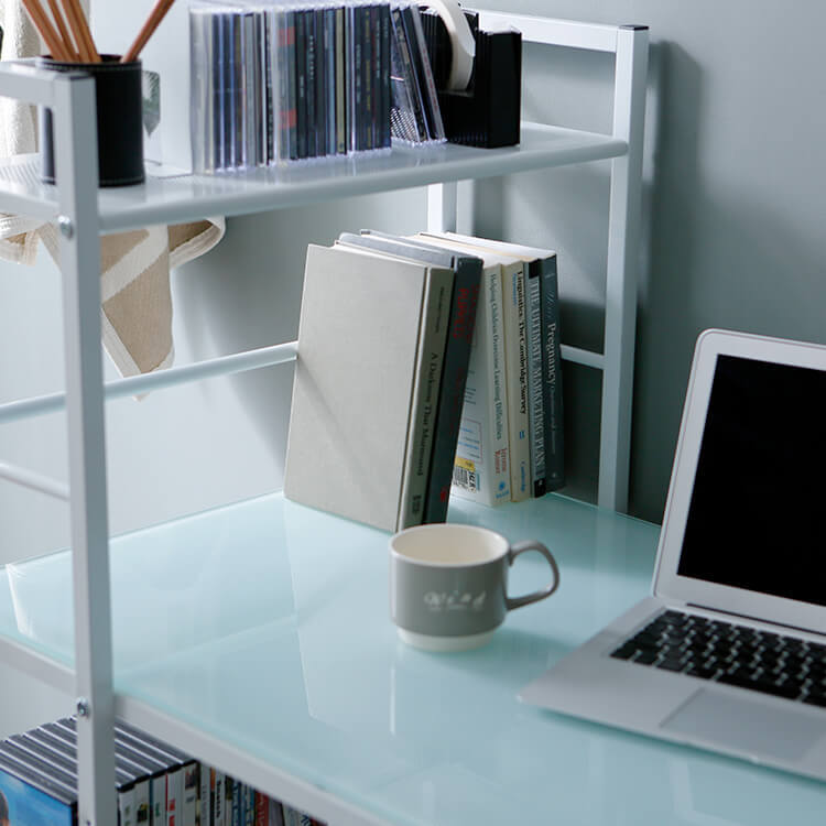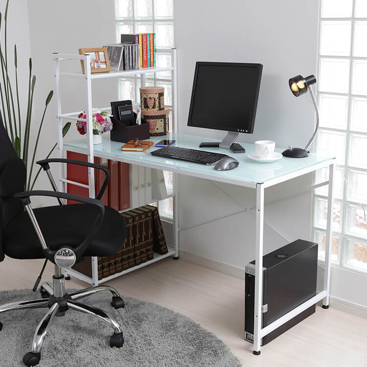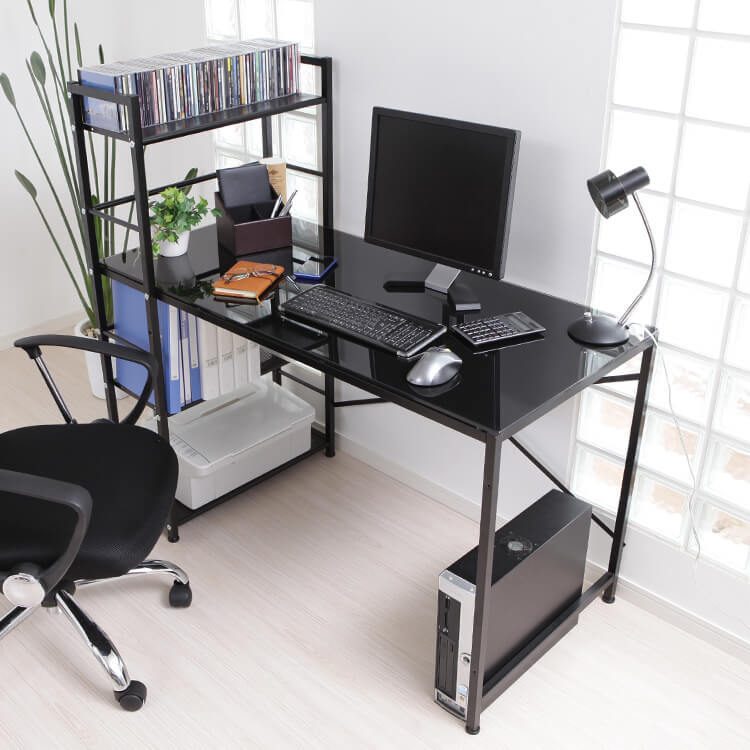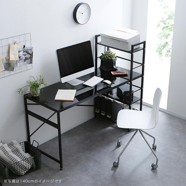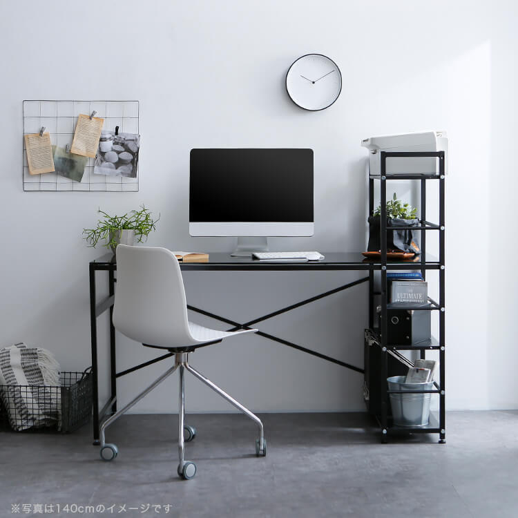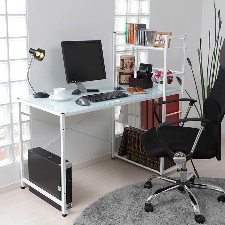 パソコンデスク 選べるガラス天板/木製天板 収納ラック一体型 スチール