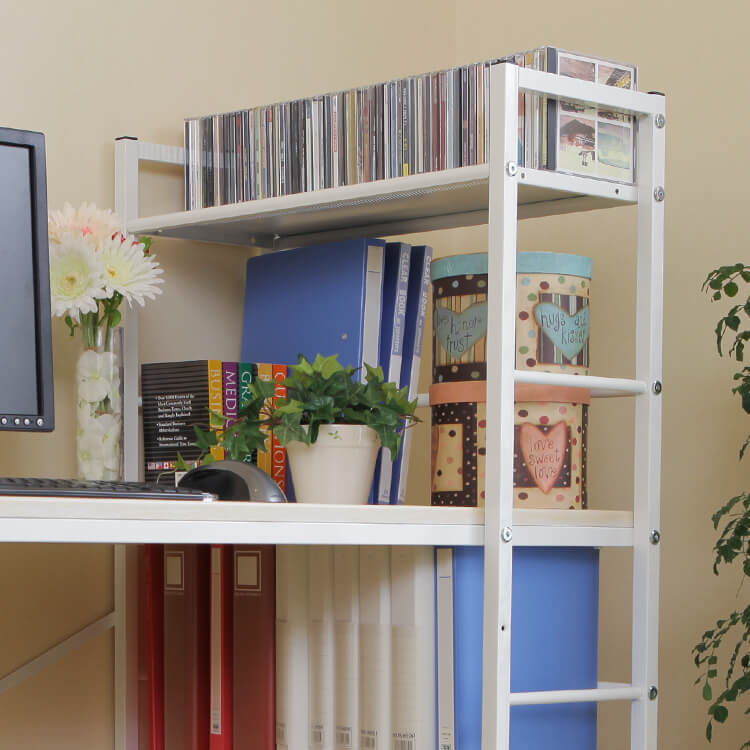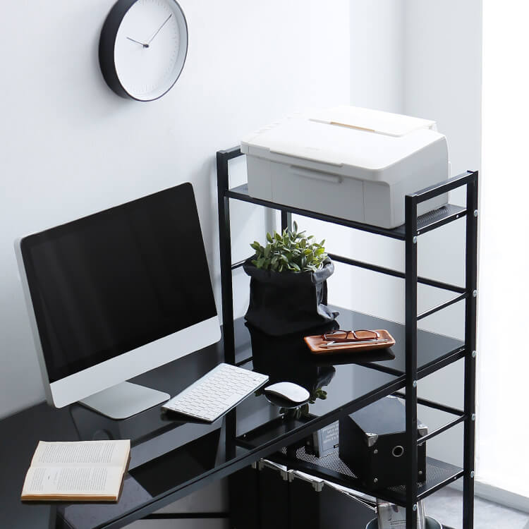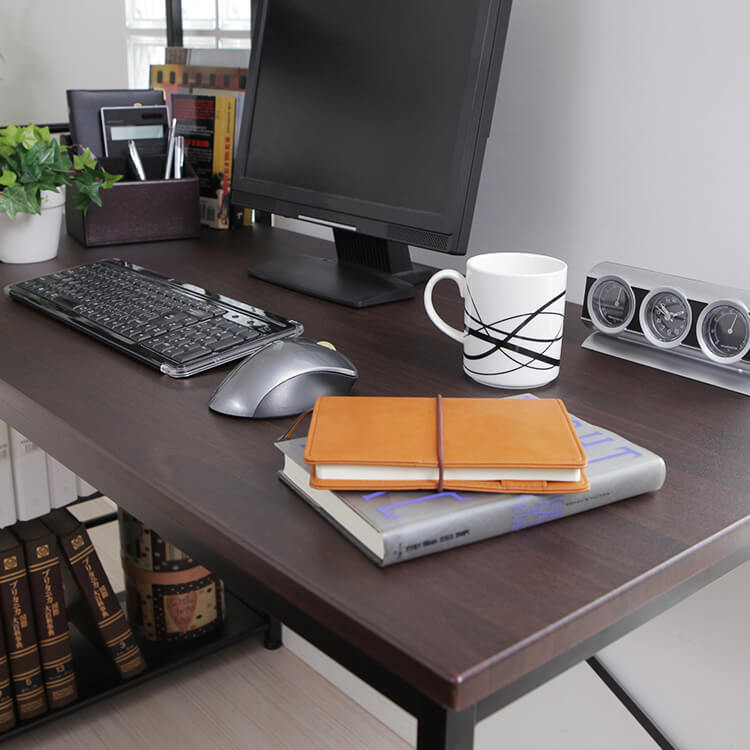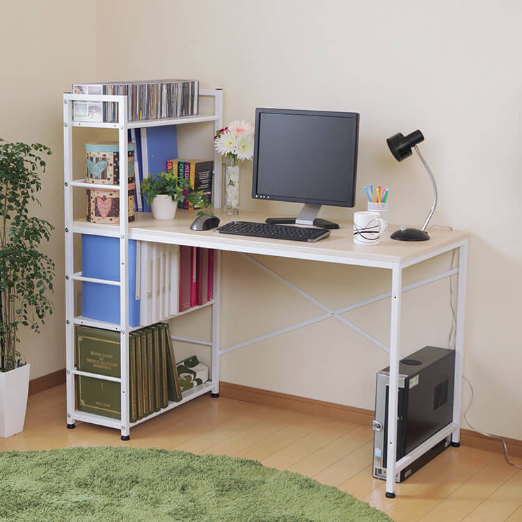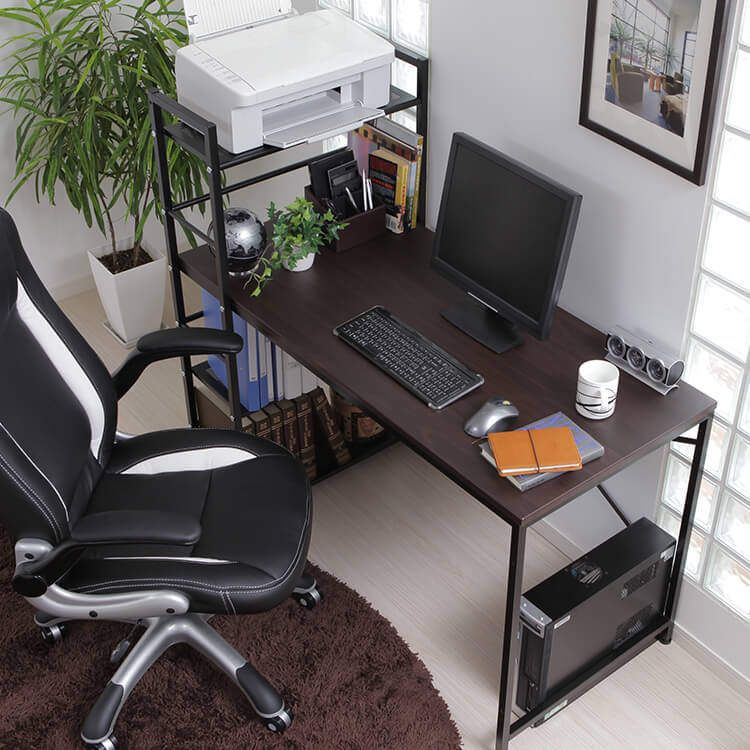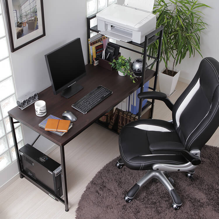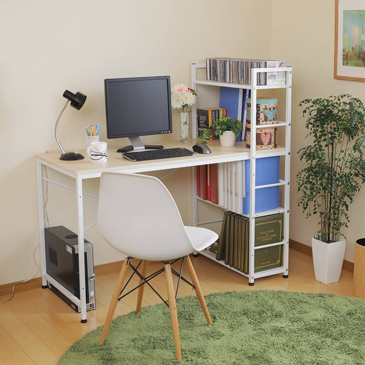 実用性とデザイン性を備えた大人気パソコンデスク。カスタマイズしやすいシンプルなデザインに、充実の収納力でデスクワークを一気に効率化します。必要な物にすぐ手が届く、使い勝手の良いラック一体型。奥行に余裕があるので、デスクトップPCを置くことも可能です。