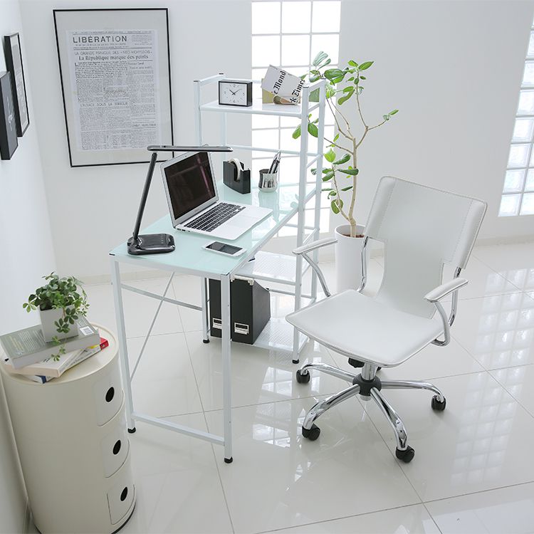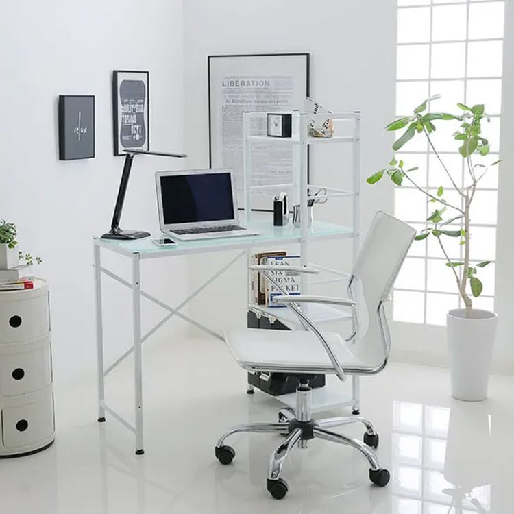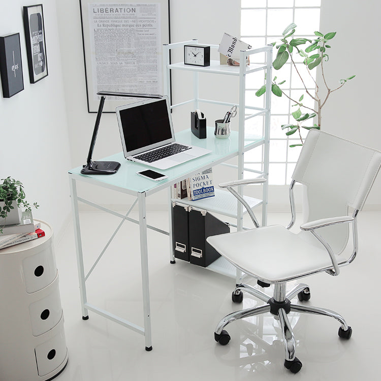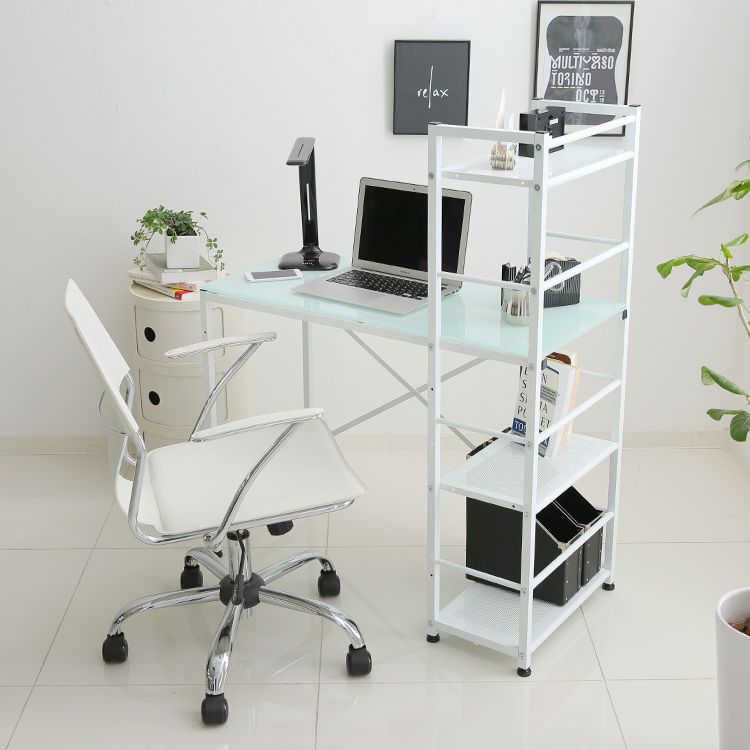 パソコンデスク 選べるガラス天板/木製天板 収納ラック一体型 スチール オフィ