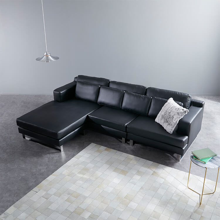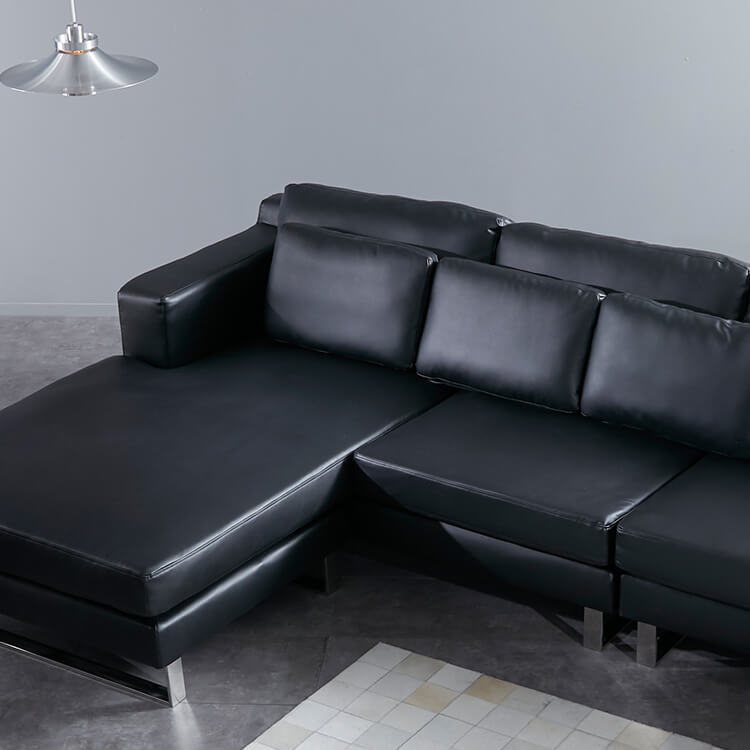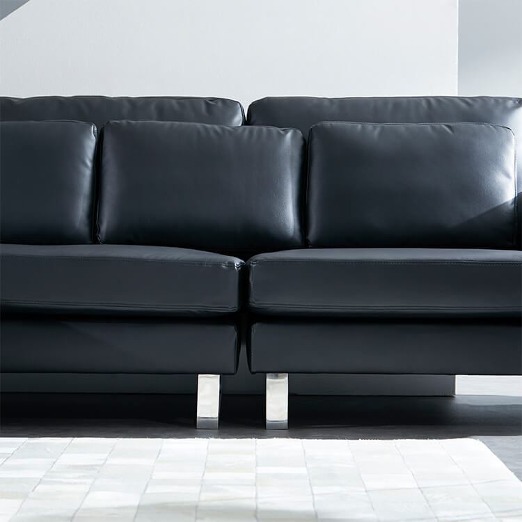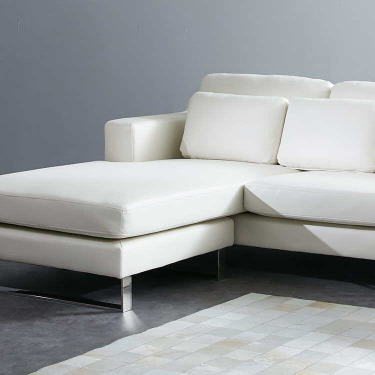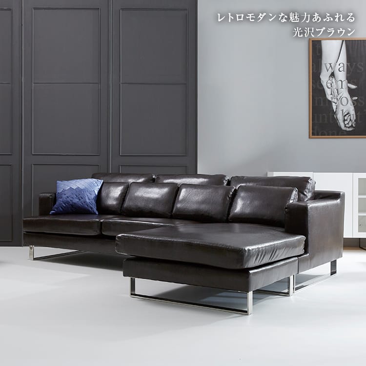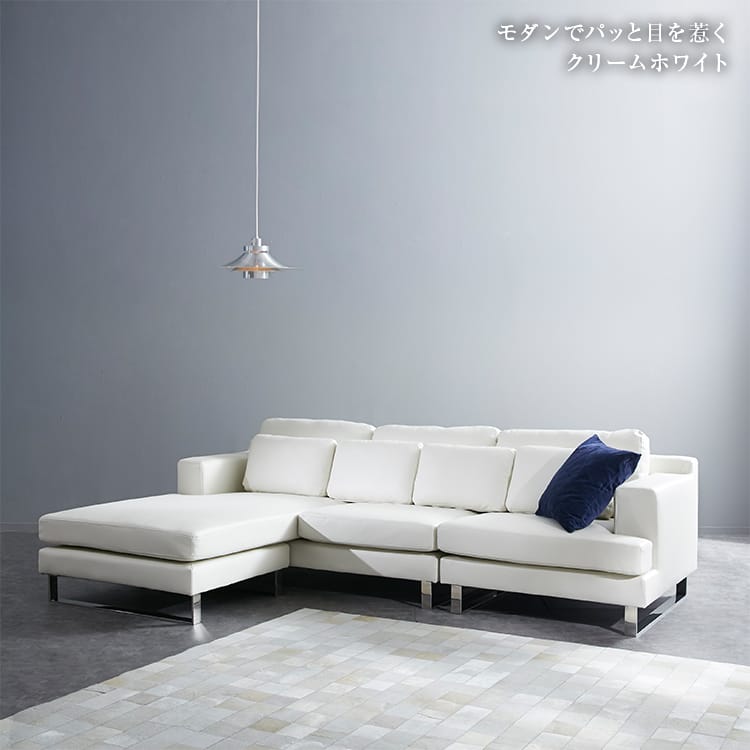 ソファ 広々使える4人掛けカウチソファ スチール脚 ポケットコイル