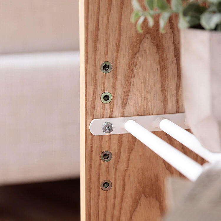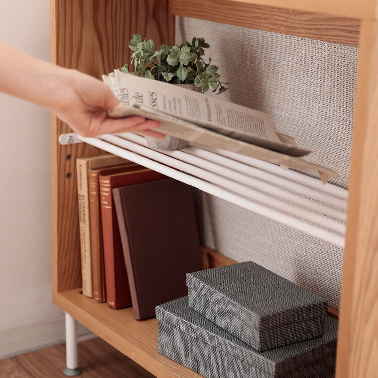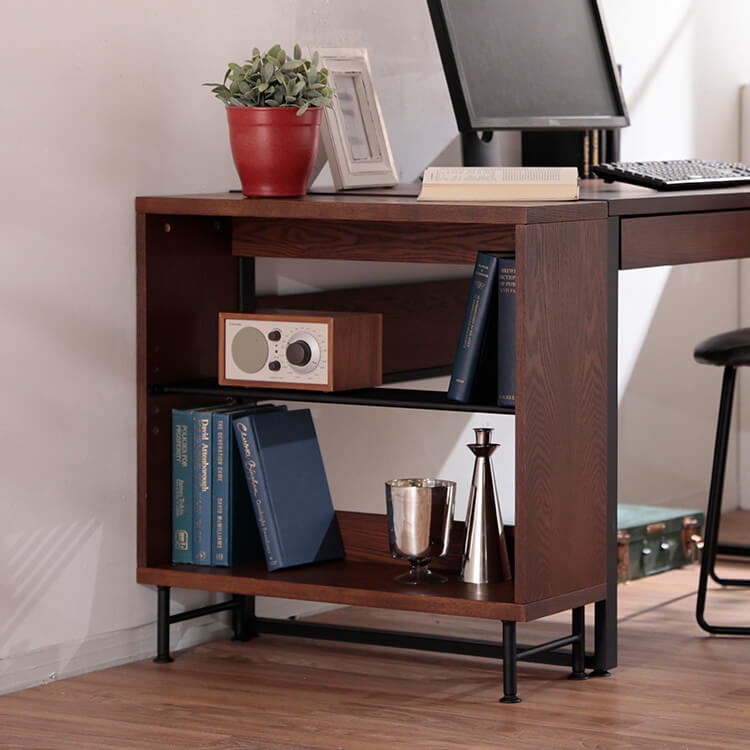 デスクがもう少し広かったら・・・。もう少し収納が欲しい・・・。そんな願いをおしゃれに叶えてくれるラックです。あなたのお部屋をもっと仕事や勉強がはかどる空間にチェンジ。毎日触れるインテリアにこだわりを。自然の木目と絶妙な異素材が生み出すこなれたムードは、他のインテリアでは、なかなか真似できない。安価な化粧紙を貼っただけのプリント化粧板とは違い、天然木の突き板を贅沢に使っているので、高級感が違います。デザイン性の高いデスクだと一般的に使用されるのはアイアン製の金属パーツですが、耐久性があまり高くないのがデメリット。そこで、アイアンよりも強度の高いスチールをチョイス。毎日使う物だから強度にもこだわりました。