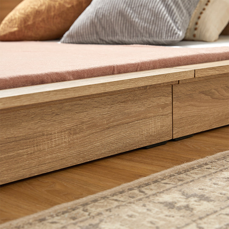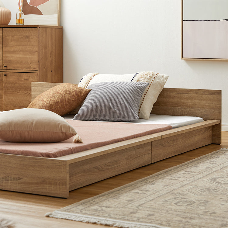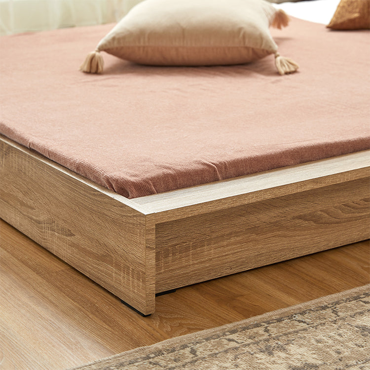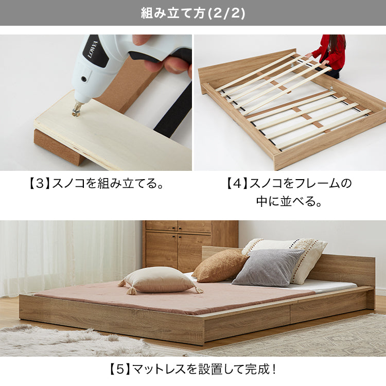 窮屈になりがちな寝室は、ベッドの高さを低くすることでゆとりある空間に◎くつろぎ空間に欠かせないベッドを、使いやすい「低さ」で設計しました。ロースタイルに変えるだけで、お部屋の圧迫感を軽減し、リラックスタイムにぴったりの雰囲気に。天井が高く見えるので、ゆとりある空間を演出してくれます。ロースタイルを実現するため、フレームにマットレスを落とし込む「ドロップマット」構造を採用。マットレスやシーツのズレも防止し、安定感のある寝心地をつくってくれます。