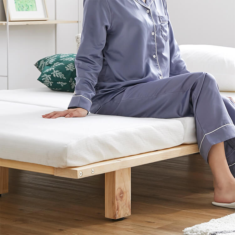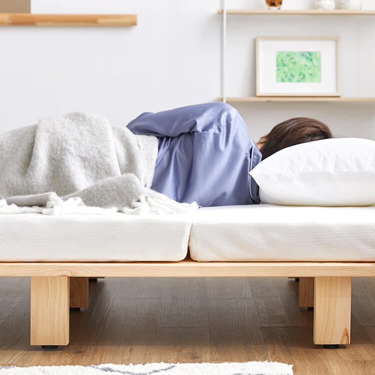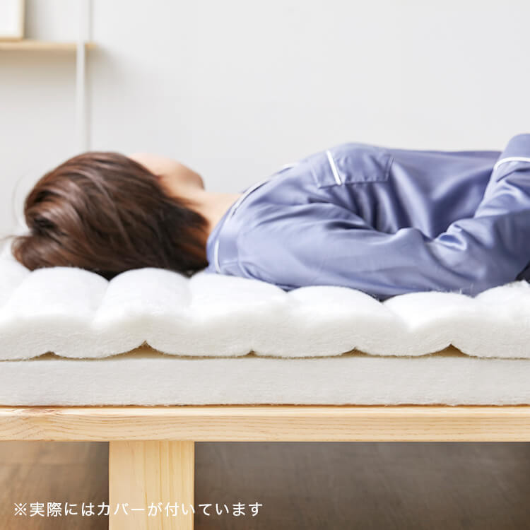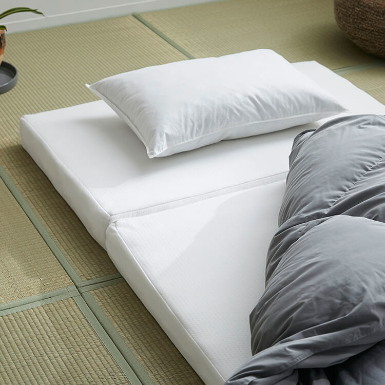 寝返りの重要性を考え作られた日本製の3つ折りのマットレス。ウェーブとフラット両面使える、こだわりのマットレスで眠る心地よさをご体感ください。中材に採用した、波打つウェーブ固綿が特徴の「ナミノネ」マットレス。特徴的な形状は、体圧分散に優れ寝返りについて考えられ作られました。しっかりとした弾力で身体を支え底つき感なくご使用いただけます。目覚めたとき、身体のあちこちが痛むことがありませんか?それは、寝返りをうまく打てていないのが原因かもしれません。毎日快適な眠りを体感していただきたいという思いから生まれたマットレスです。高い復元力のあるウェーブ形状の「ナミノネ」固綿が寝返る方向に身体を押し出します。睡眠中のスムースな寝返りについても考えられた設計です。