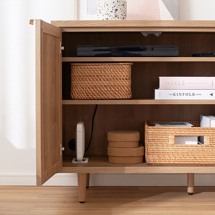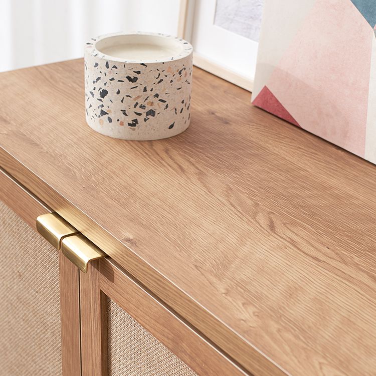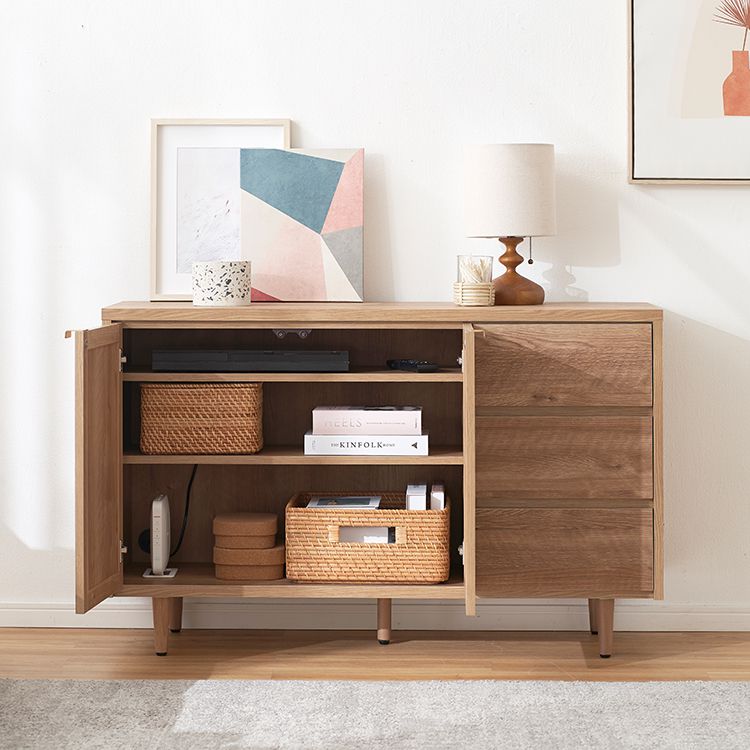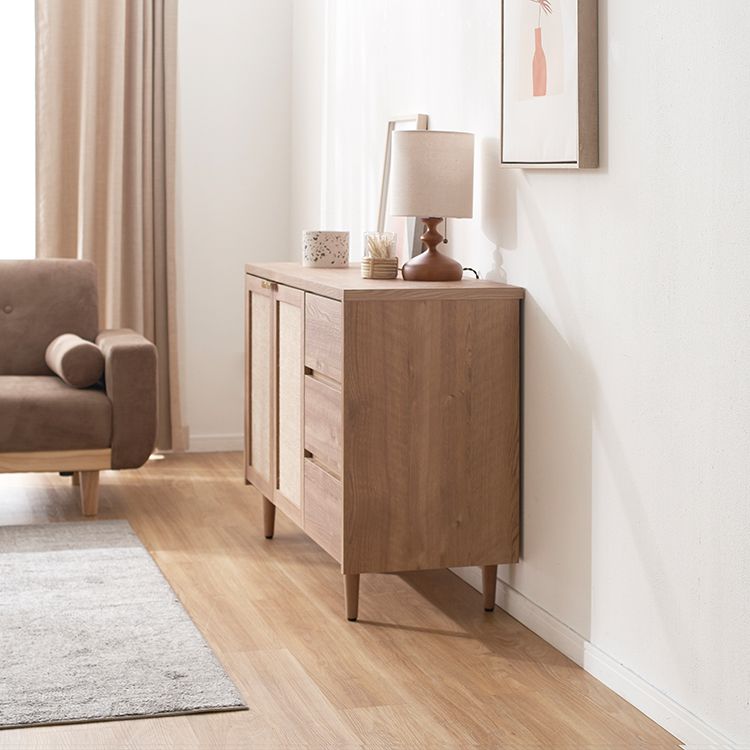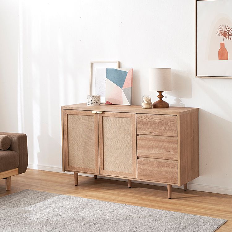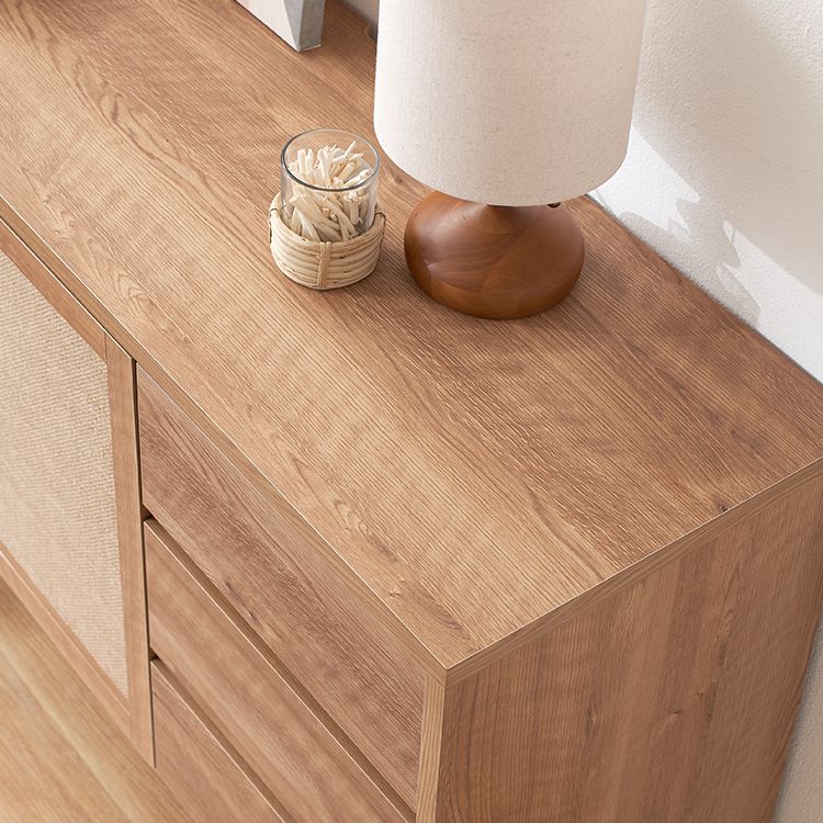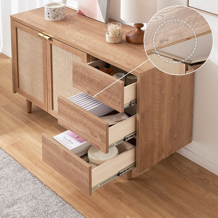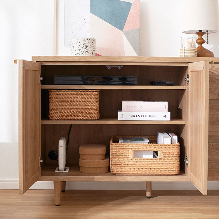 あたたかみのある木目調に天然素材の麻を組み合わせた、日本製サイドボード。異素材が織りなすナチュラルな風合いが、海外リゾートのような快適で居心地のいい空間を演出します。あたたかみのある木目調×サラッと爽やかな質感の麻×ゴールドの組み合わせ。ナチュラルな風合いと高級感を程よく組み合わせたデザインです。開き扉の前板には、麻(リネン)100%生地を施しました。明るく軽やかな見た目がデザイン全体のアクセントに。
