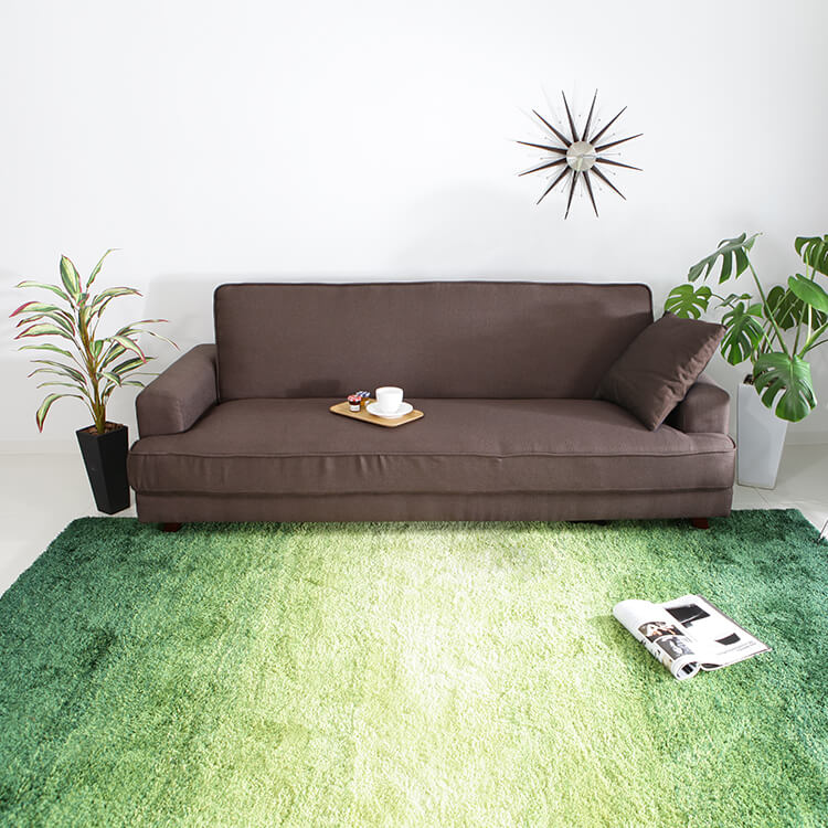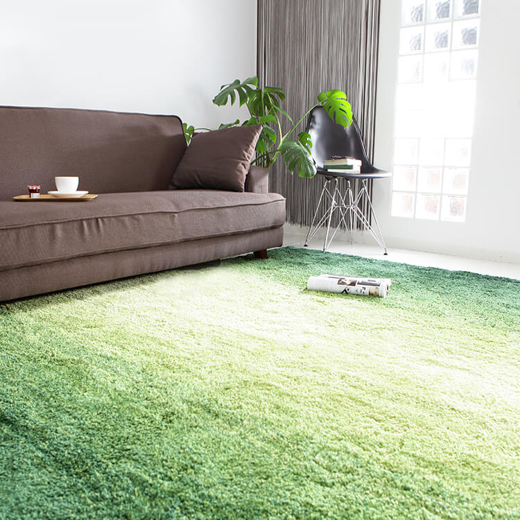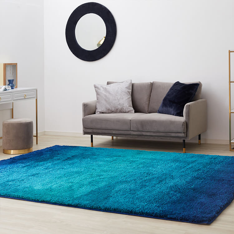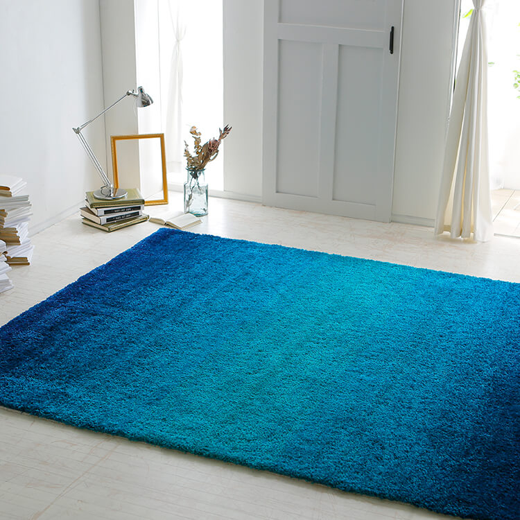 ずっと見ていたくなるような美しいグラデーションカラーのラグ。彩り豊かな色合いが、まるで自然の中にいるようなゆったりとした気分にしてくれます。統一感ある色彩でお部屋を選ばすに一味違う空間へ導きます。美しさだけでなく、さわり心地の良さにもこだわりました。ふかふかサラサラでボリューム感たっぷりの毛足がグッと体を包み込んで、リラックスしたひと時へと誘います。お部屋の雰囲気を変えたい時にラグを1枚投入するだけで、お部屋に彩りが加わり、パッと華やかな空間に早変わり。心地良さの秘密は、極細のマイクロファイバーを集めて、らせん状に丁寧に編み込まれたパイル(毛足)。マイクロファイバーは速乾性・吸水性に優れ通気性が良いため、1年中べたつかずにご使用いただけます。