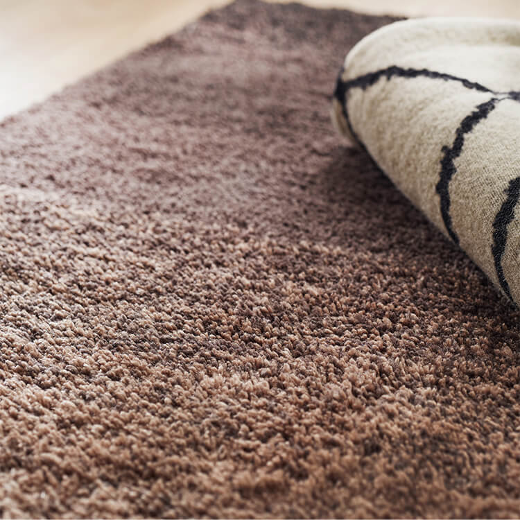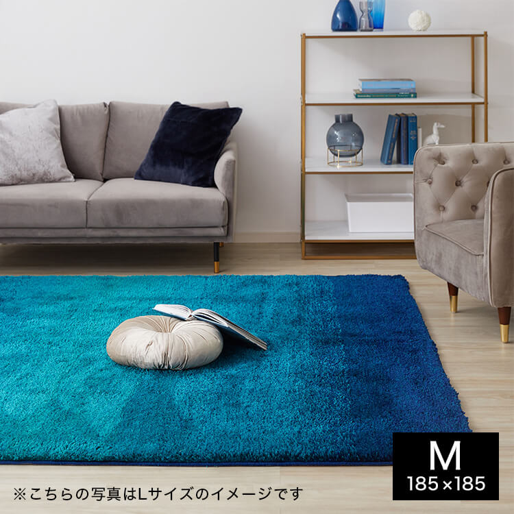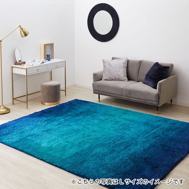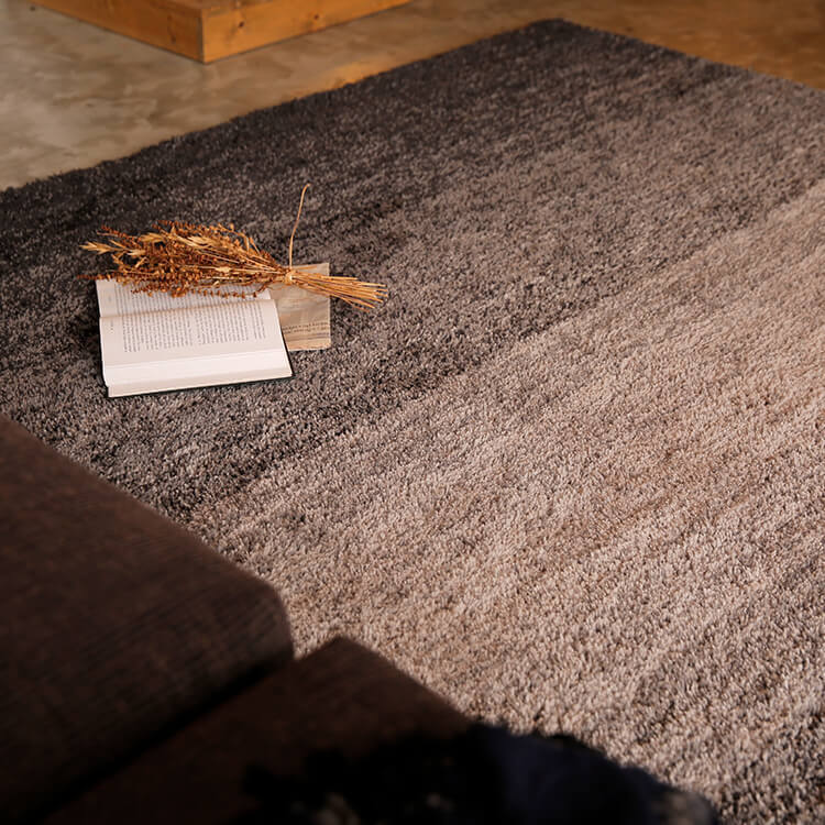 ずっと見ていたくなるような美しいグラデーションカラーのラグ。彩り豊かな色合いが、まるで自然の中にいるようなゆったりとした気分にしてくれます。統一感ある色彩でお部屋を選ばすに一味違う空間へ導きます。美しさだけでなく、さわり心地の良さにもこだわりました。ふかふかサラサラでボリューム感たっぷりの毛足がグッと体を包み込んで、リラックスしたひと時へと誘います。お部屋の雰囲気を変えたい時にラグを1枚投入するだけで、お部屋に彩りが加わり、パッと華やかな空間に早変わり。心地良さの秘密は、極細のマイクロファイバーを集めて、らせん状に丁寧に編み込まれたパイル(毛足)。マイクロファイバーは速乾性・吸水性に優れ通気性が良いため、1年中べたつかずにご使用いただけます。