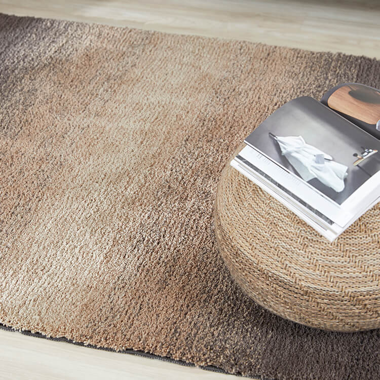 ずっと見ていたくなるような美しいグラデーションカラーのラグ。彩り豊かな色合いが、まるで自然の中にいるようなゆったりとした気分にしてくれます。統一感ある色彩でお部屋を選ばすに一味違う空間へ導きます。美しさだけでなく、さわり心地の良さにもこだわりました。ふかふかサラサラでボリューム感たっぷりの毛足がグッと体を包み込んで、リラックスしたひと時へと誘います。お部屋の雰囲気を変えたい時にラグを1枚投入するだけで、お部屋に彩りが加わり、パッと華やかな空間に早変わり。心地良さの秘密は、極細のマイクロファイバーを集めて、らせん状に丁寧に編み込まれたパイル(毛足)。マイクロファイバーは速乾性・吸水性に優れ通気性が良いため、1年中べたつかずにご使用いただけます。
