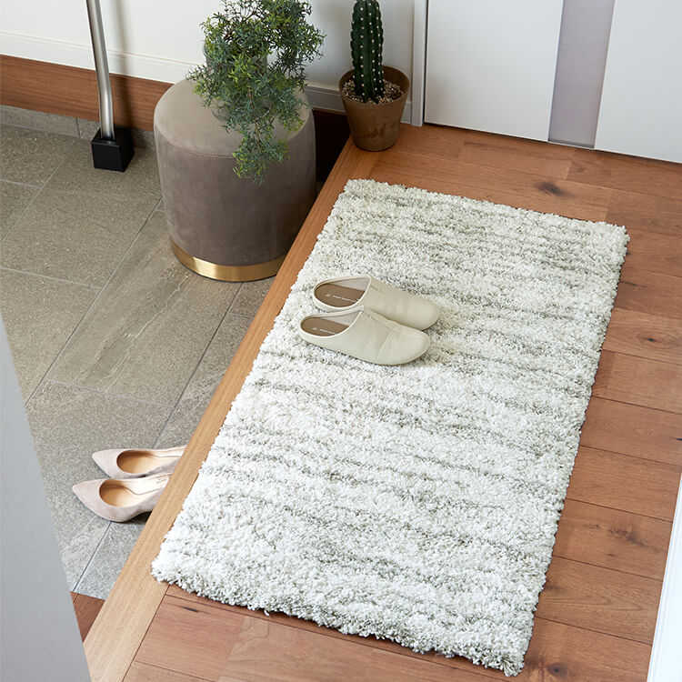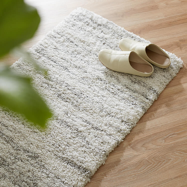 リッチな厚みとシックなデザインが、落ち着きのあるモダンなエントランス空間を作ります。昔から織物貿易の歴史をもつ、ラグの産出国としても有名なベルギー。そのベルギーから、厳しくも美しい「雪山」をデザインした、一品が届きました。洗練されたトーンが、インテリア性の高いモダンを演出します。ホワイト地に表情豊かなやわらかい立体感をつくりだす黒のライン。インテリアに取り入れることで、お部屋が一味違うオシャレな空間に生まれ変わります。触れるとフワっと心地いい、しっかりとしたこのボリューム。一平方メートルに、たっぷり2900g/uも編みこまれている毛が、心地よい感触を生み出します。