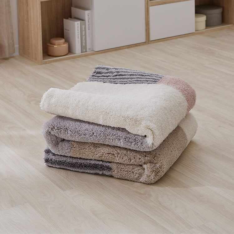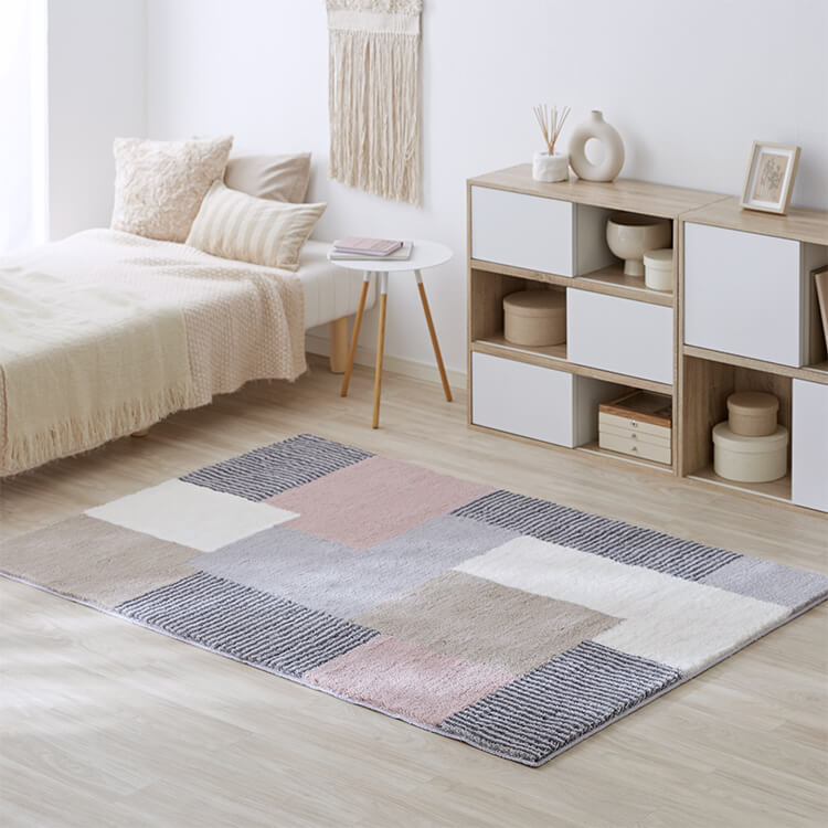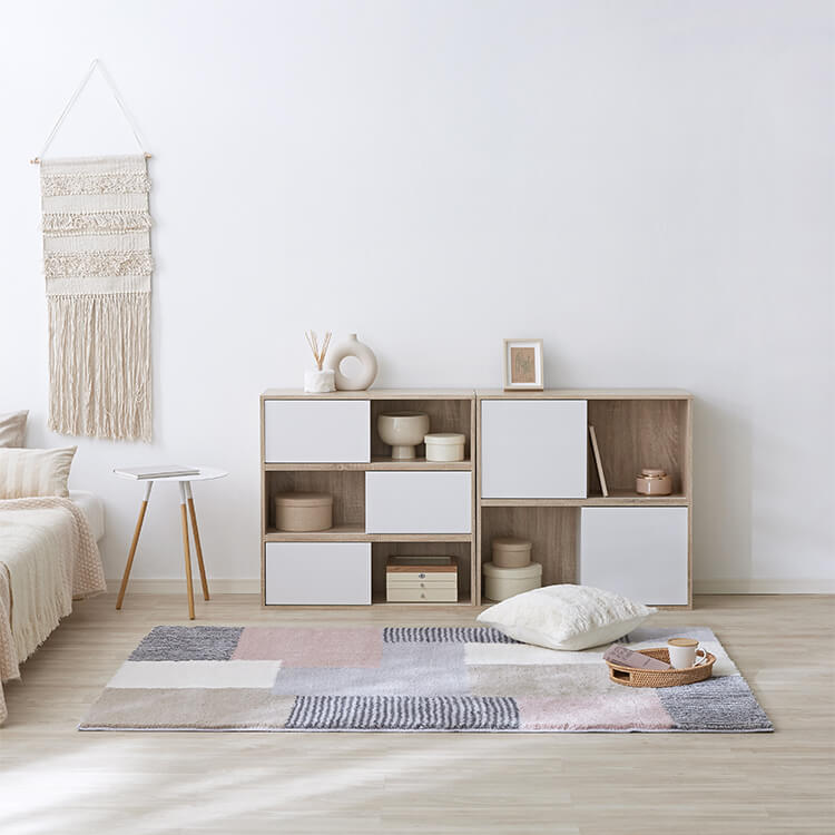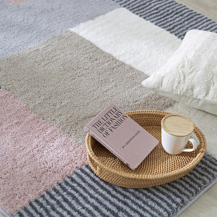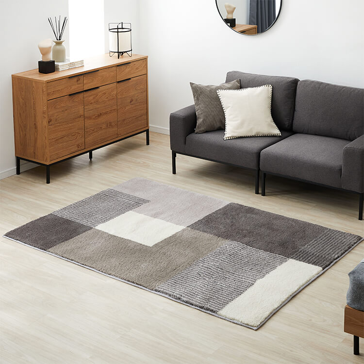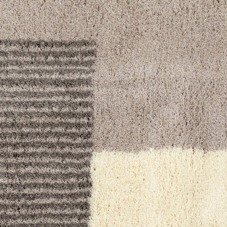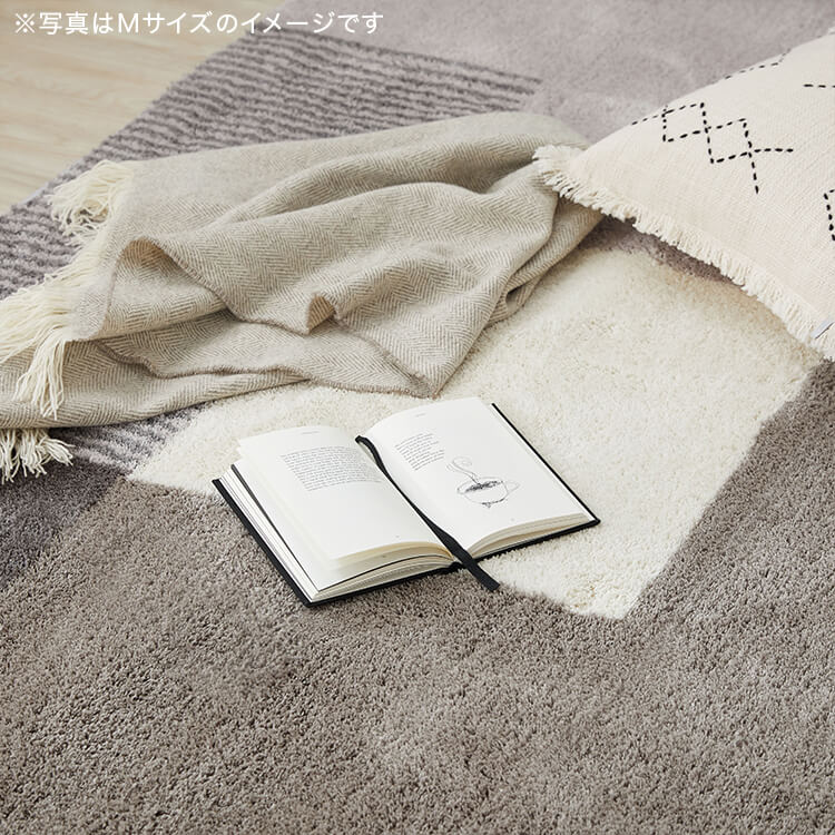 やわらかなニュアンスカラーで構成された、ふかふかのラグ。長めの毛足とくすみカラーで、お部屋をやさしい雰囲気にデザインしてくれます。お部屋のサイズに合わせた3サイズ展開です。(※サイズ毎に販売ページが異なります。お買い求めの際は必ずサイズをご確認ください。)優しい雰囲気を作る、約1.5cmの長めの毛足。さらりとした肌触りと、ふかふかとした弾力感で、底付き感のないソフトなボリュームに仕上げました。毛足の長いラグは、表面に付着したホコリを一時的にラグの奥に取り込むダストポケット効果があります。取り込まれたホコリは空気中に舞いにくく、掃除機などでカンタンに取り除くことが出来る嬉しい効果です。