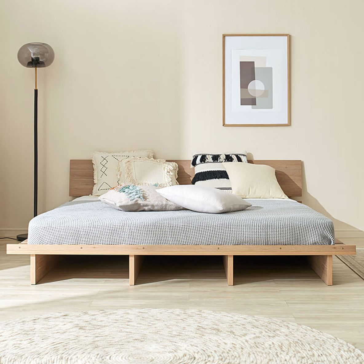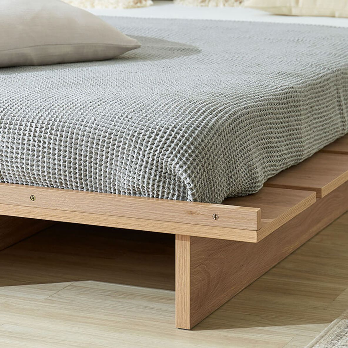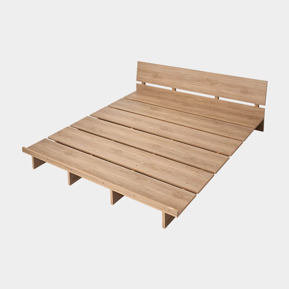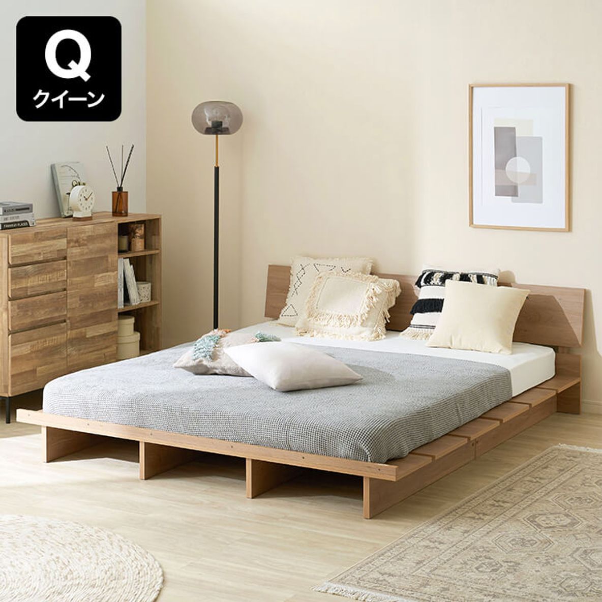 「もっと気軽に北欧テイストを」そんな思いから生まれた、あたたかみあふれるベッドフレーム[クイーンサイズ]です。 優しい木目調が、お部屋を心安らぐナチュラルムードに染め上げます。大切な眠りは居心地の良い北欧のような空間で過ごしたい。その一心で開発したオリジナルデザインです。こだわったのは、北欧風の飽きの来ないカタチと、日本独自の気候を考えた湿度を逃がす機能性です。お客様からのご要望により誕生した、ゆったり眠れるQサイズ!家族やカップルにもオススメのサイズ感です。シンプルで飽きの来ないデザインは、北欧のモノづくりの心から学び、生まれたもの。 冬の長い間をおうちで過ごす北欧では、毎日使う家具に飽きが来ないよう、無駄のないシンプルな家具を生み出しました。
