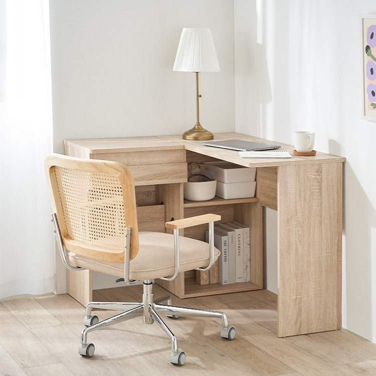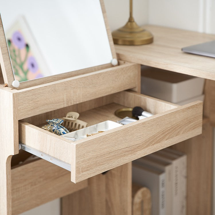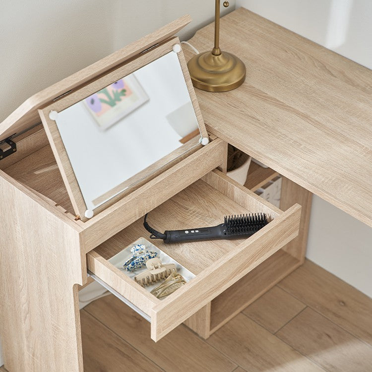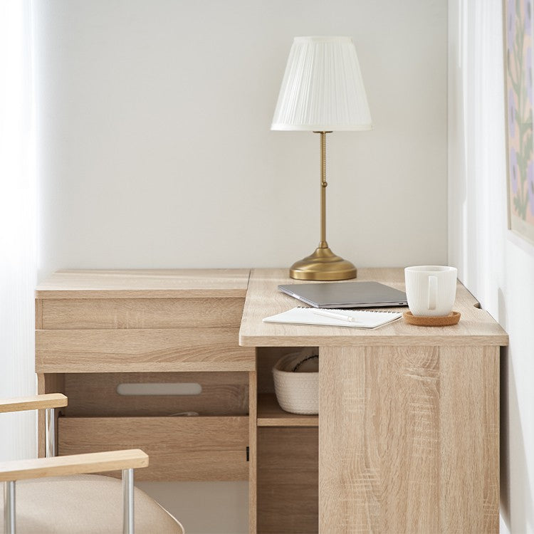 ドレッサーデスク L字デスク 化粧台 メイク台 木製 木目調