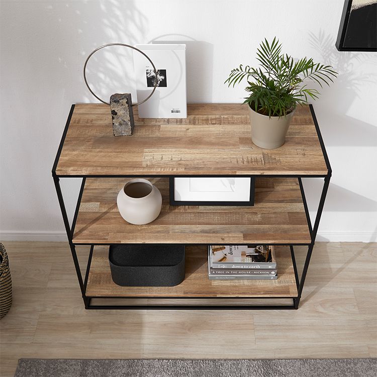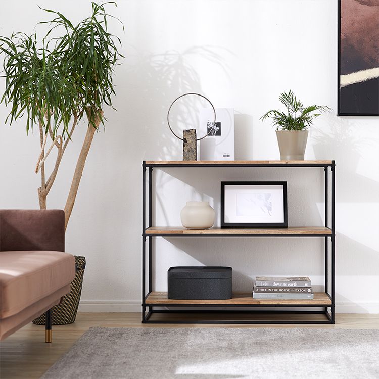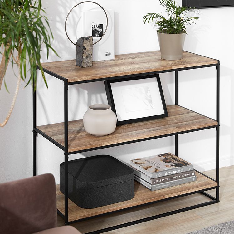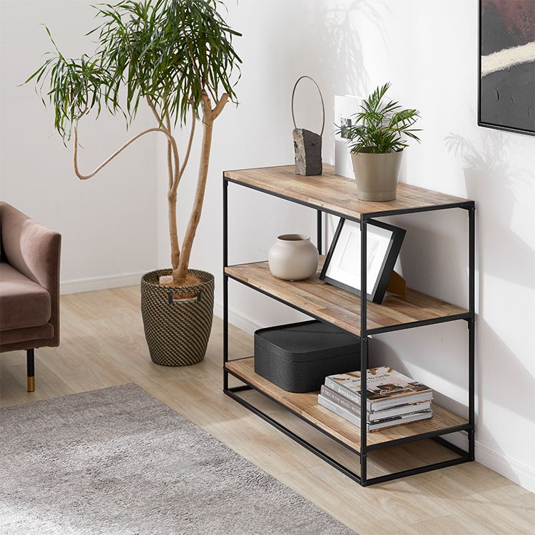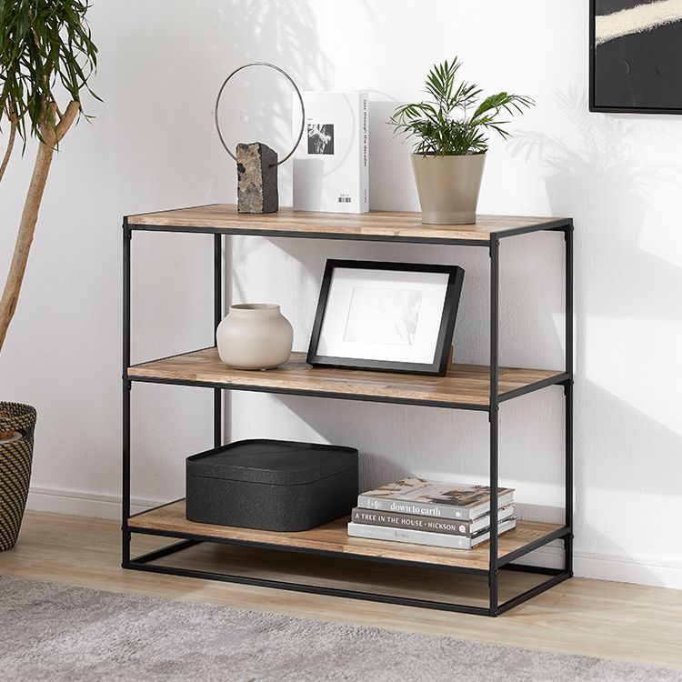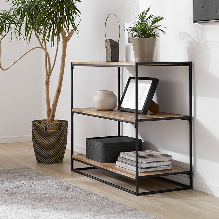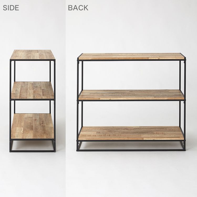木目調オープンラック ディスプレイラック 無垢材風 シェルフ 3段