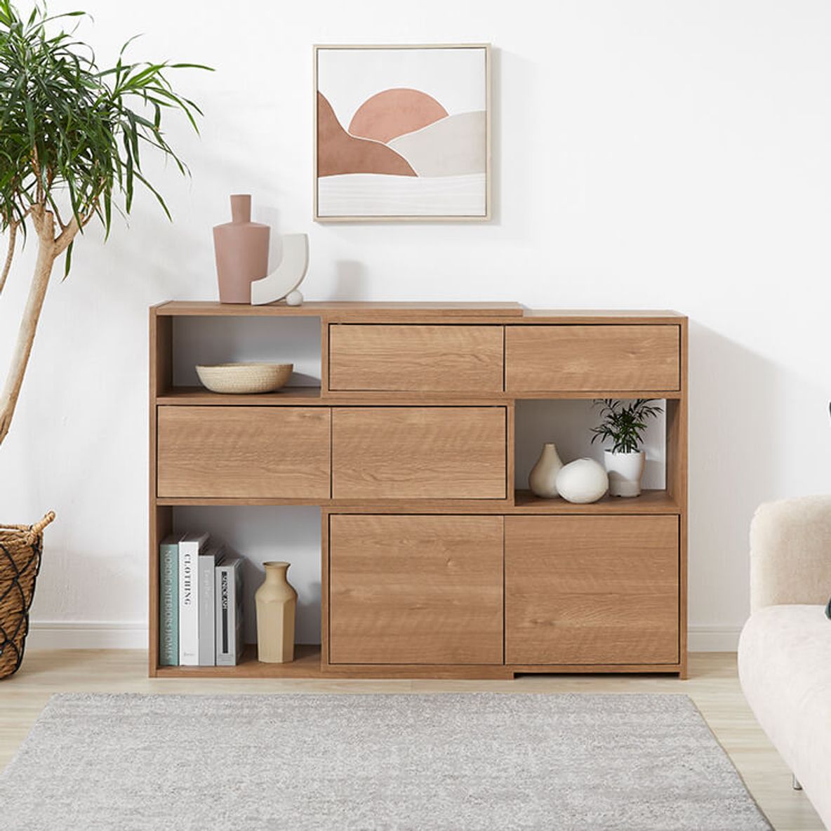 スライドするだけで「魅せる」と「隠す」を両立。置きたいスペースに合わせて調節ができる伸縮機能がついた収納棚。奥行スリム設計なので置く場所を選ばずにインテリアを思いのままにお楽しみいただけます。収納スペースの調節ができる伸縮式。スライドすることによって、オープン収納とクローズ収納が叶う優れもの。シーンやスペースに合わせてお使いいただけます。これ1台で、自由度の高い伸縮・角度調節ができる優れモノ。伸ばしたり、縮めたり、角度を変えたりとお部屋の模様替えやお引越しでも大活躍間違いなし。用途に合わせて使い分けできる大容量の収納スペースが魅力。ごちゃつきがちなリビングをすっきりと魅せるポイントです。