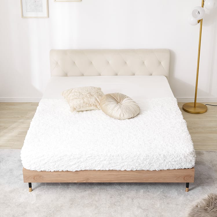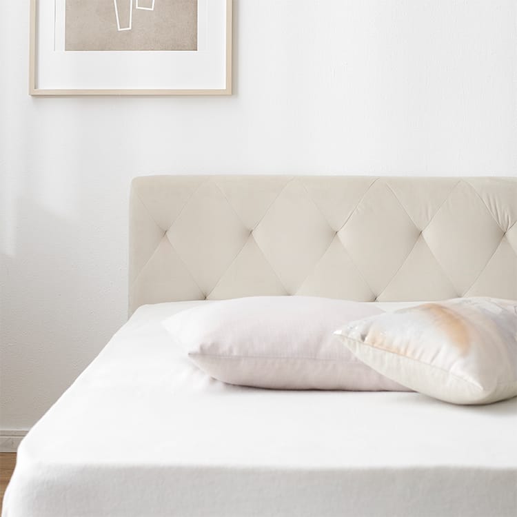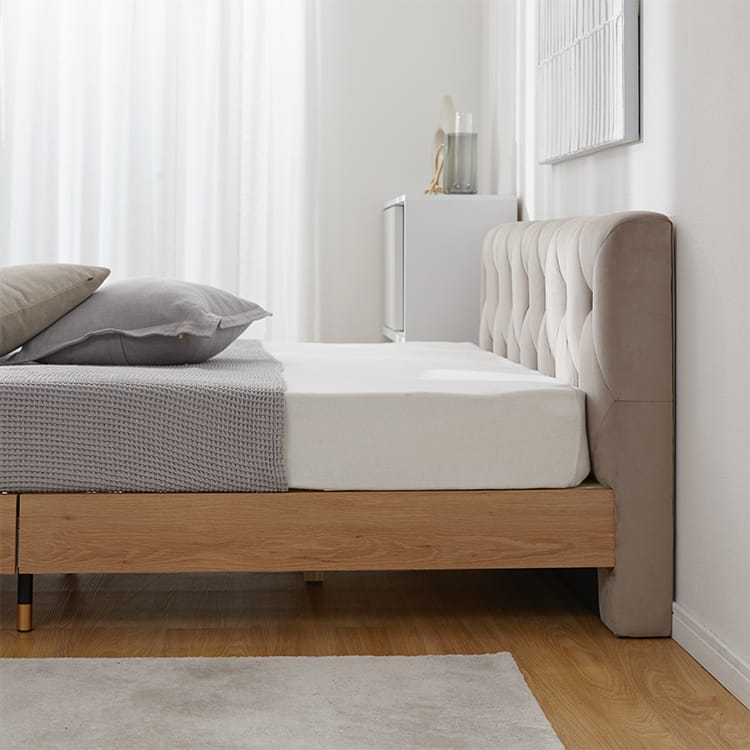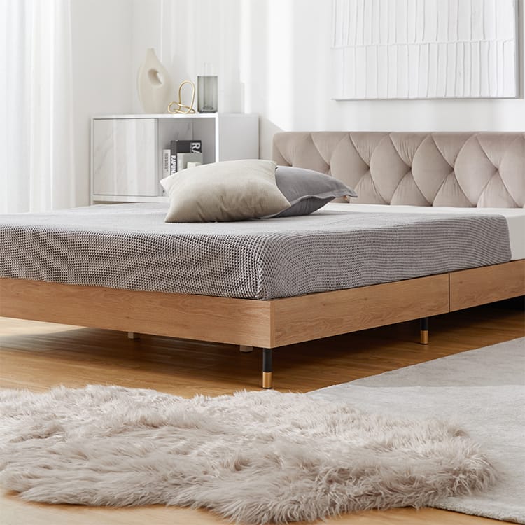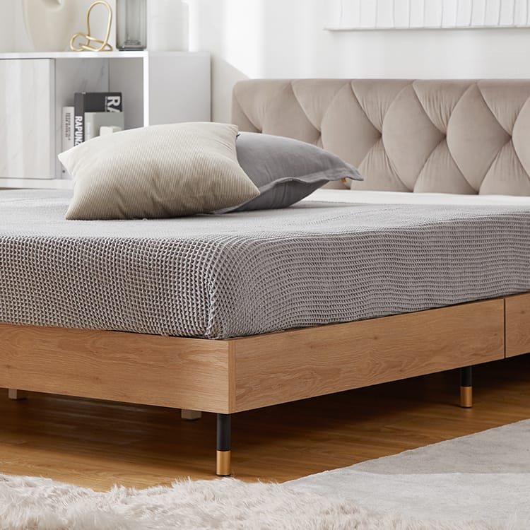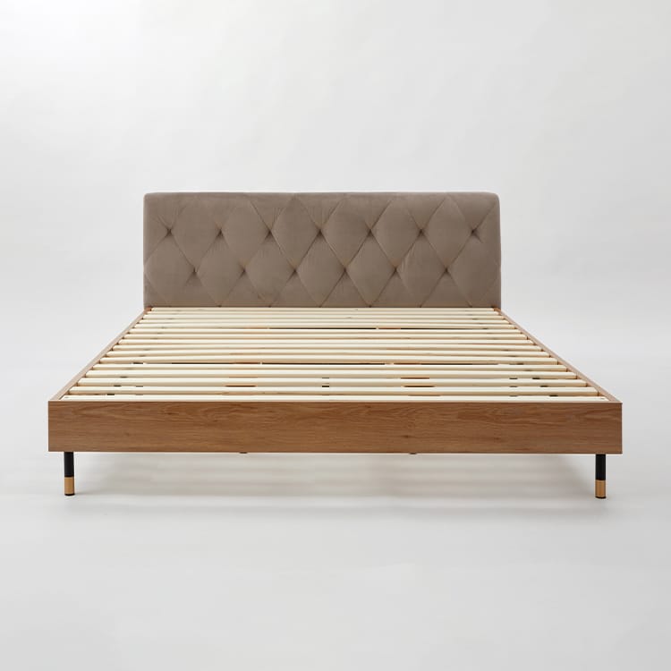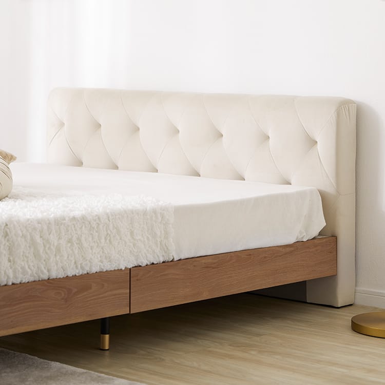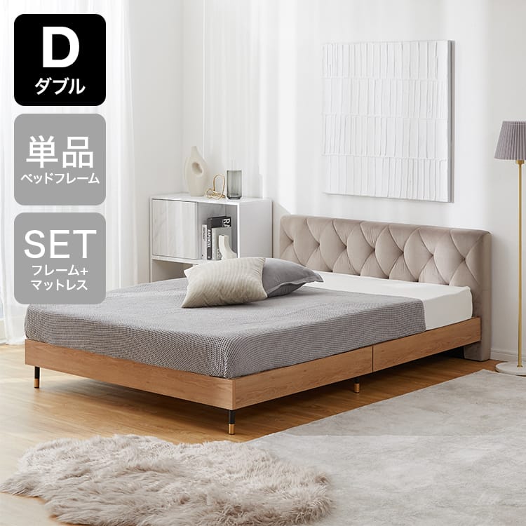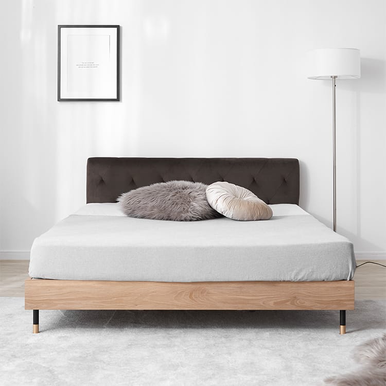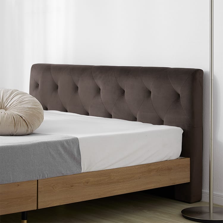 ベルベット調ヘッドボード 木製ベッドフレーム [D]