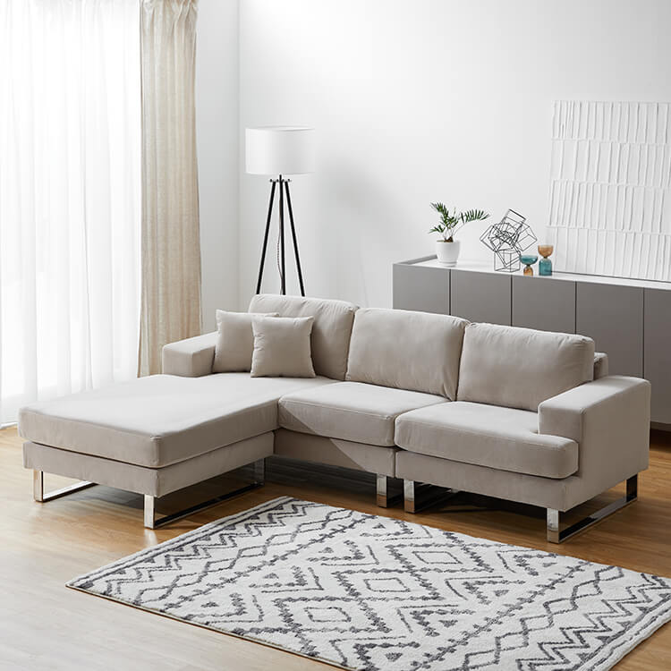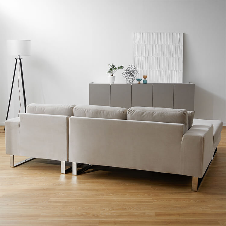 「贅沢で優雅な空間を叶える」ベルベット調生地の3人掛けソファ。生活スタイルに合わせて左右の組み替えや、使いやすいレイアウトが叶います!心地よさと、圧迫感を与えにくいサイズ感の両立を目指しました。こちらは当社デザイナーが独自のこだわりを持って完成させたオリジナル商品です。人気のカウチソファを、「大人可愛く」デザイン。使いやすさはそのままに、ルックスをさらにオシャレにしました!なめらかな手触りと、光沢のある表情豊かなベルベット調生地を採用。生地が生み出す雰囲気がデザイン性と合わさり、海外風インテリアの雰囲気を感じさせてくれます。左右対応のフリースタイルで、組み替えもカンタン。お部屋の間取りやシーンに合わせて、あなただけのくつろぎのカタチを見つけてください。