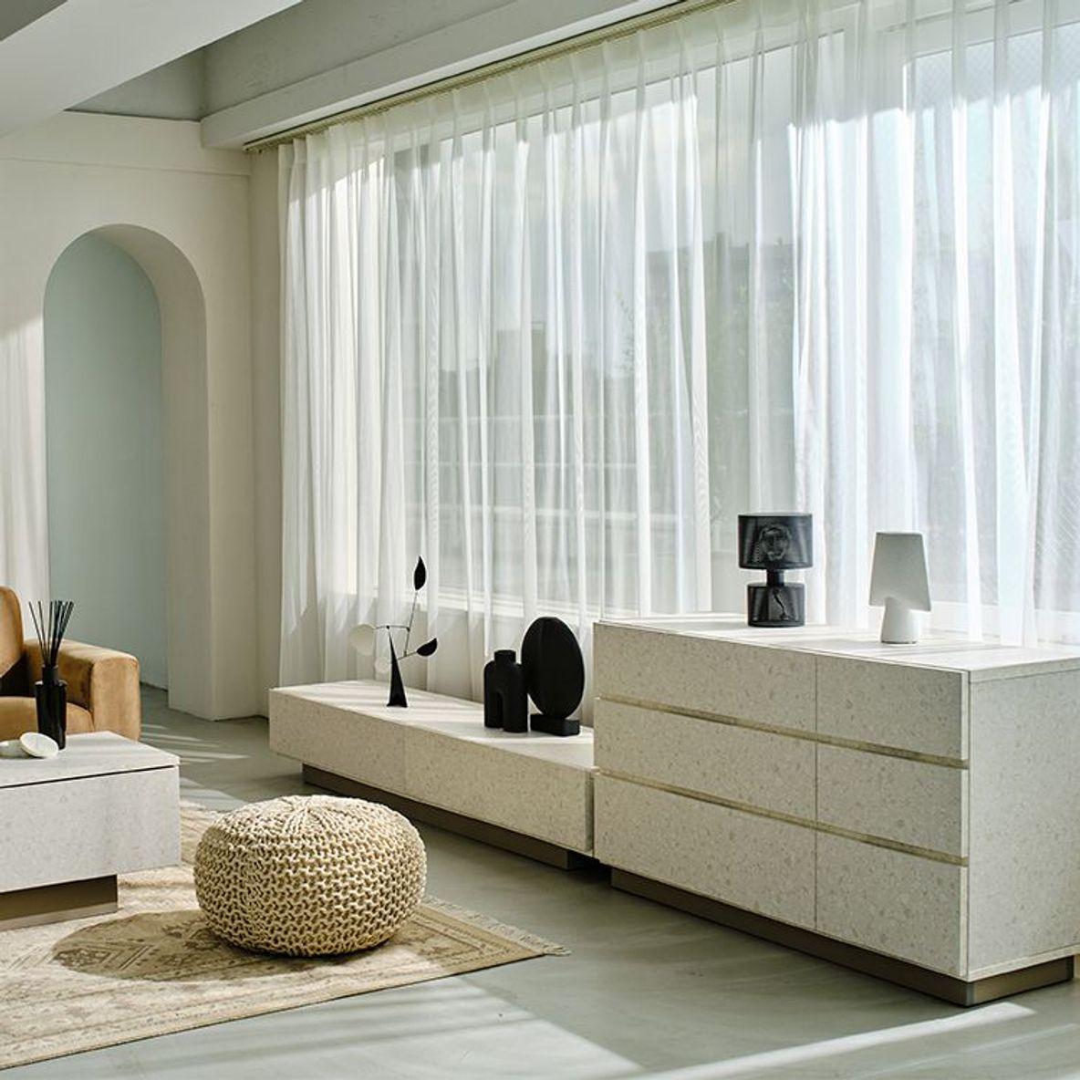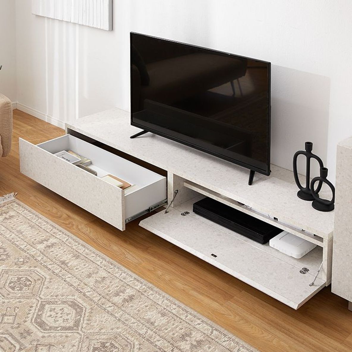 「海外インテリアに憧れるけど、お部屋に合うかわからない……」という方にオススメの、洗練された美しいテラゾー柄テレビボード。お部屋に置くだけで雰囲気がガラッと変わり、シンプルで落ち着きのある海外風インテリアが叶います。大理石柄ほど主張しすぎず、色と柄で様々な表情を見せるテラゾー柄シリーズ。海外インテリアのトレンド感を漂わせつつ、お部屋をセンスアップしてくれます。LOWYAオリジナル!細かな石をランダムに散りばめたような風合いで、やわらかな雰囲気を感じさせるワントーンのテラゾー柄。上品でこなれた印象をプラスしてくれます。テラゾーとは、イタリアの発祥と言われており、アールデコやモダニズムの潮流に乗って使われてきた素材です。最近では建売住宅などに使用されており、目に触れる機会が増えてきています。
